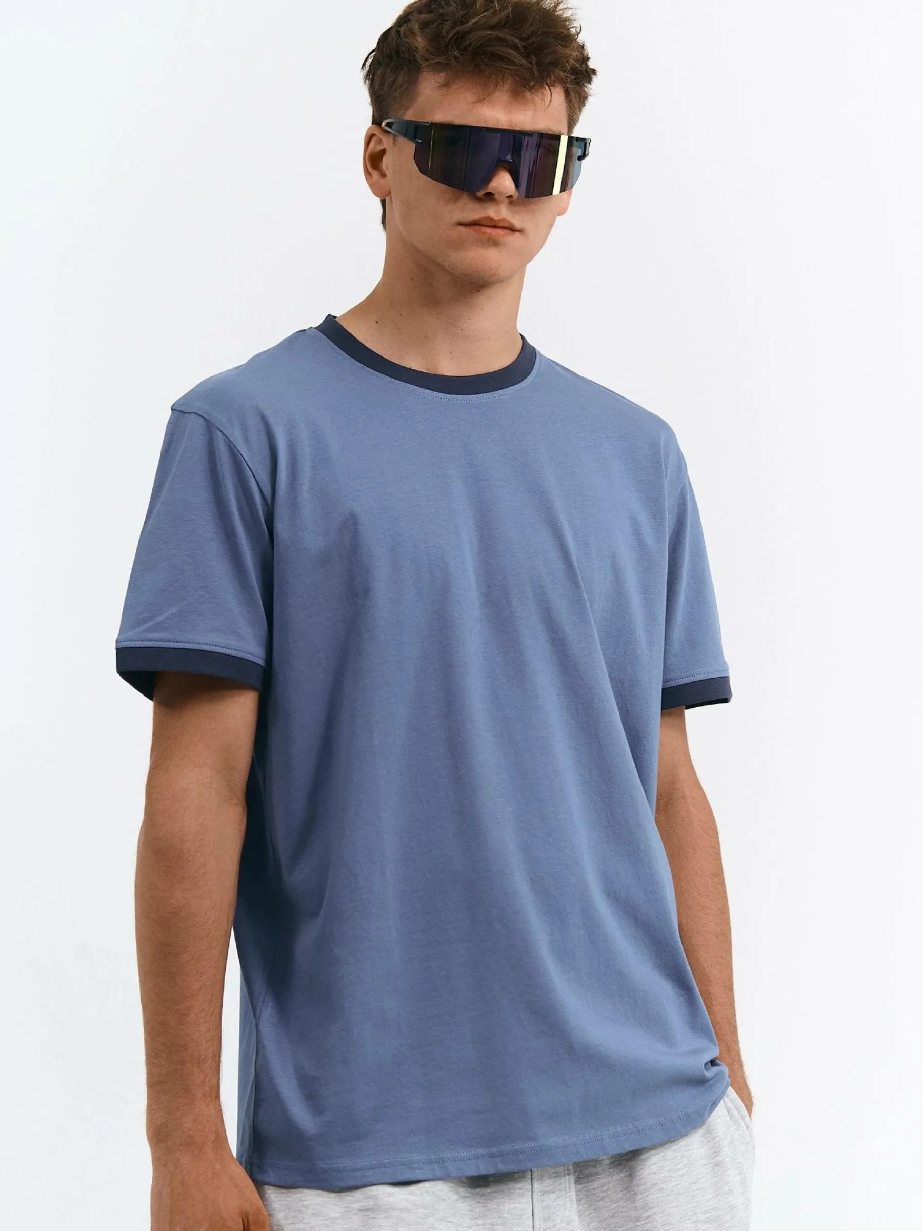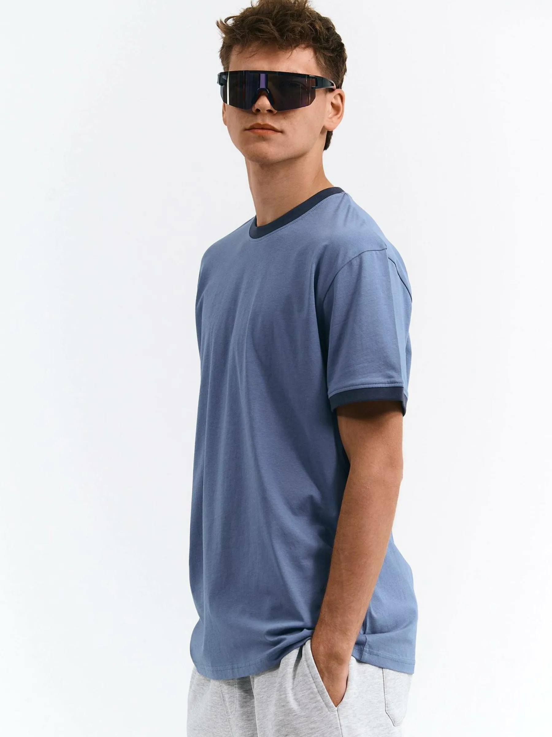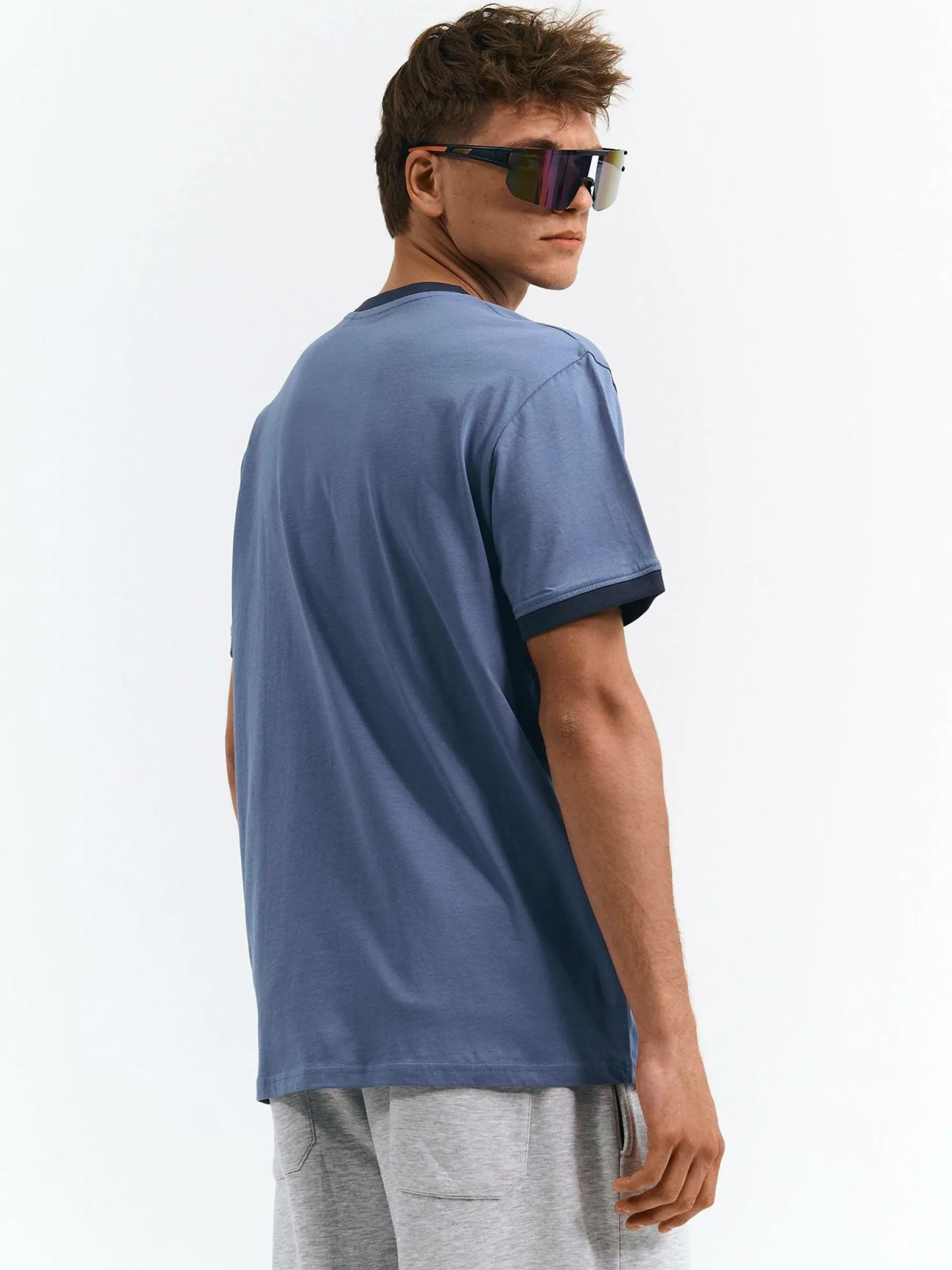 Kolor: niebieskiKrój: regularTyp: koszulkaRekaw: krótki rękawPattern style: pojedynczy kolorDetal: nad głową, z kon…