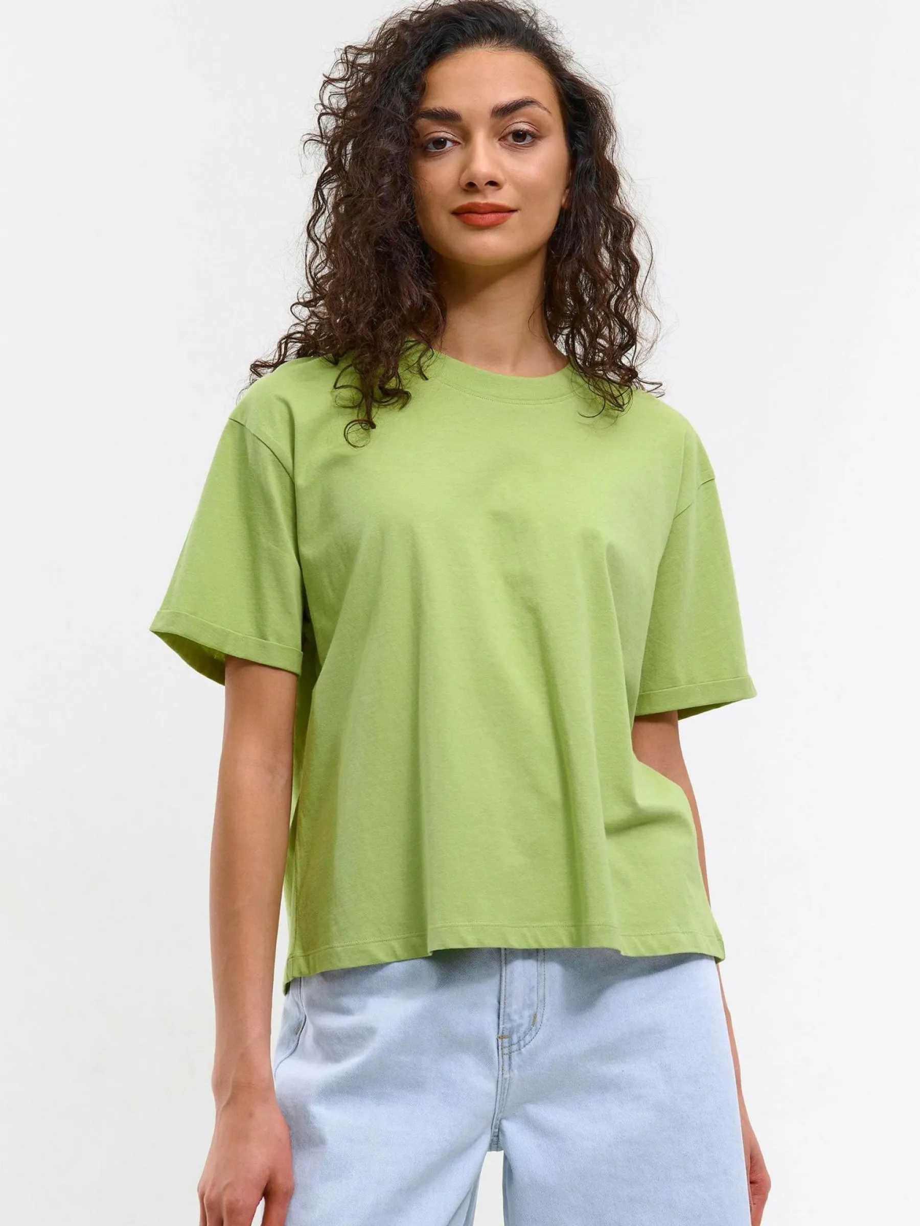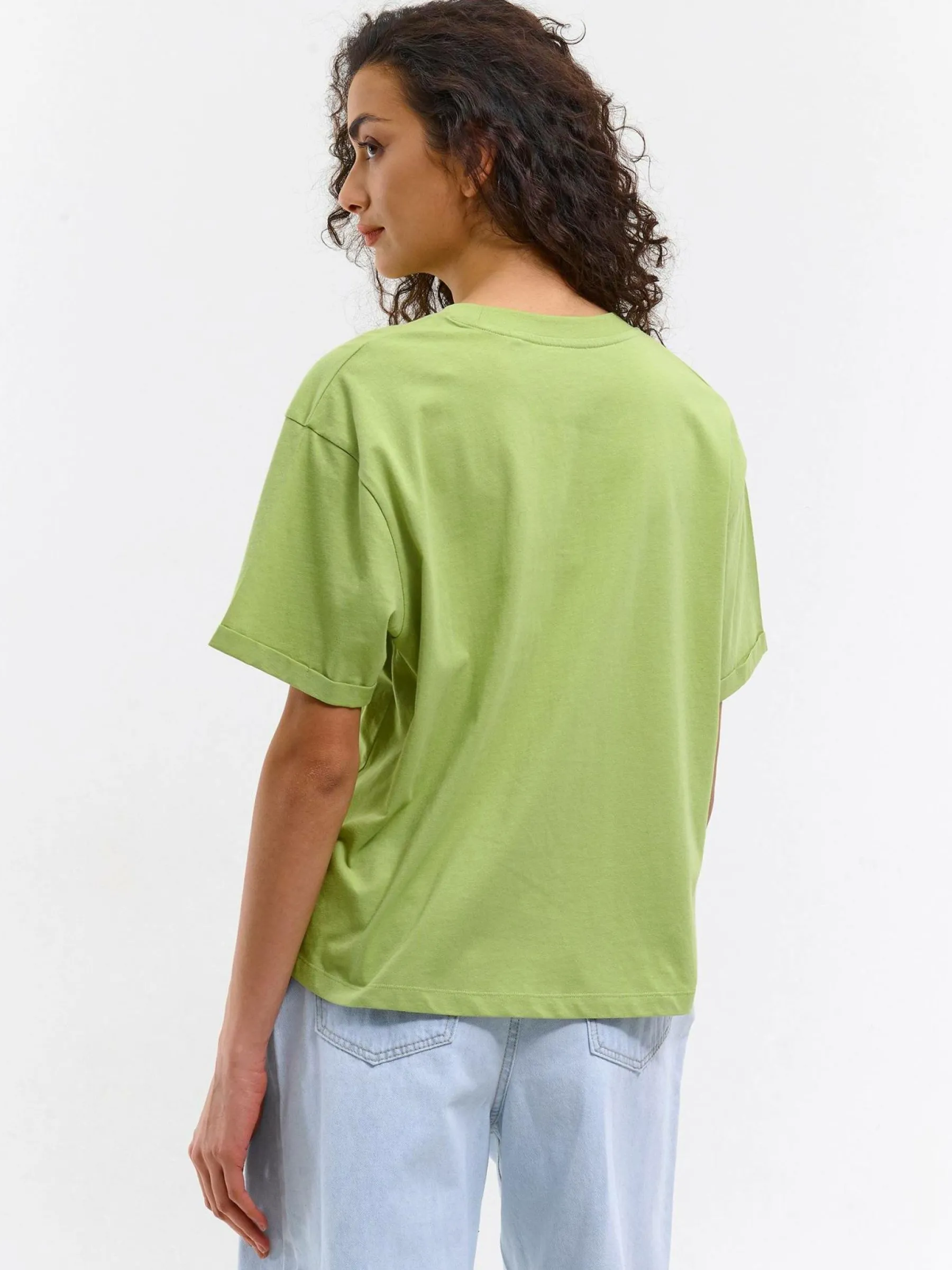 Kolor: zielonyKrój: podstawowyTyp: koszulkaRekaw: krótki rękawDługość: krótkiPattern style: pojedynczy kolorDetal…