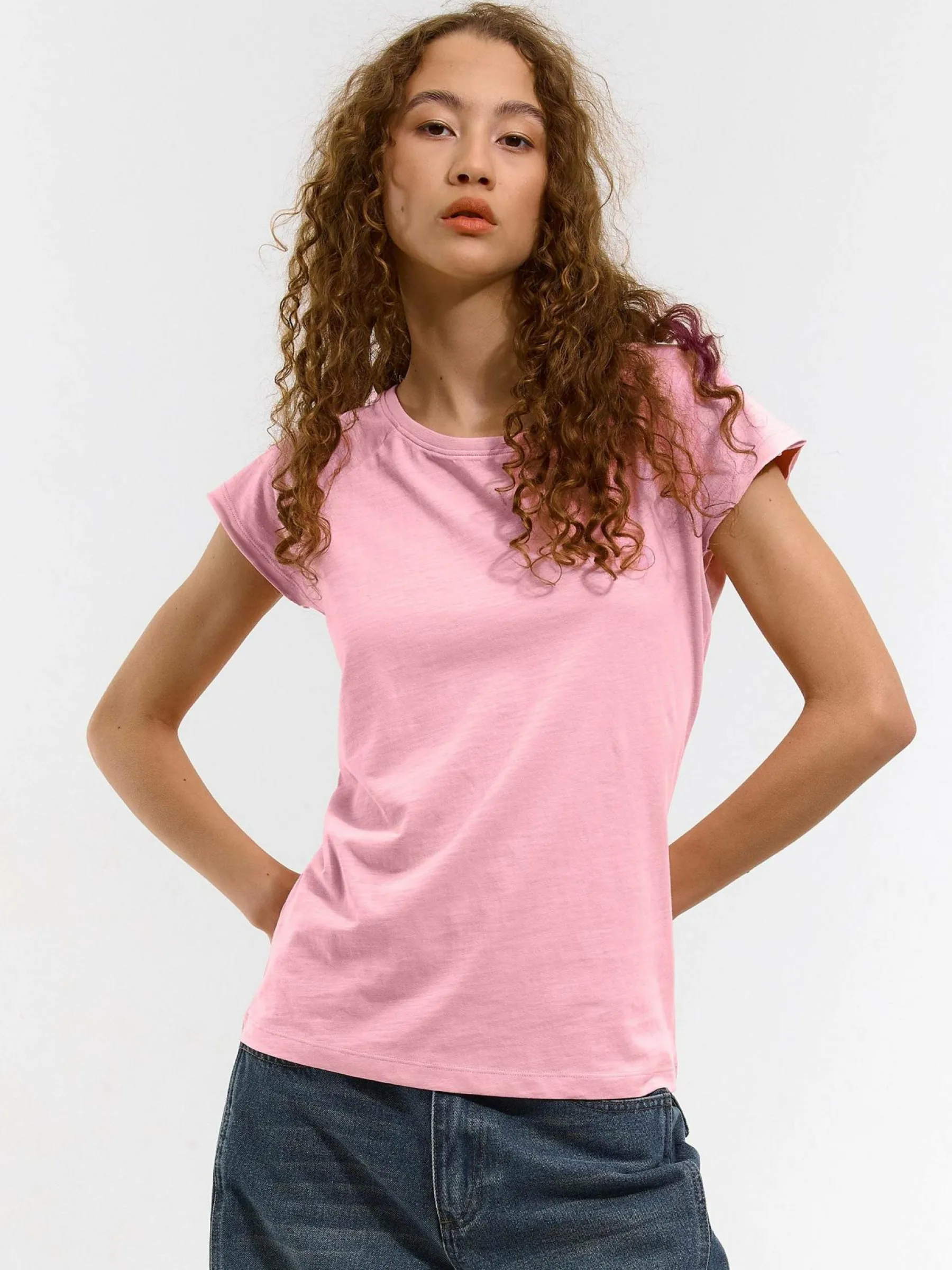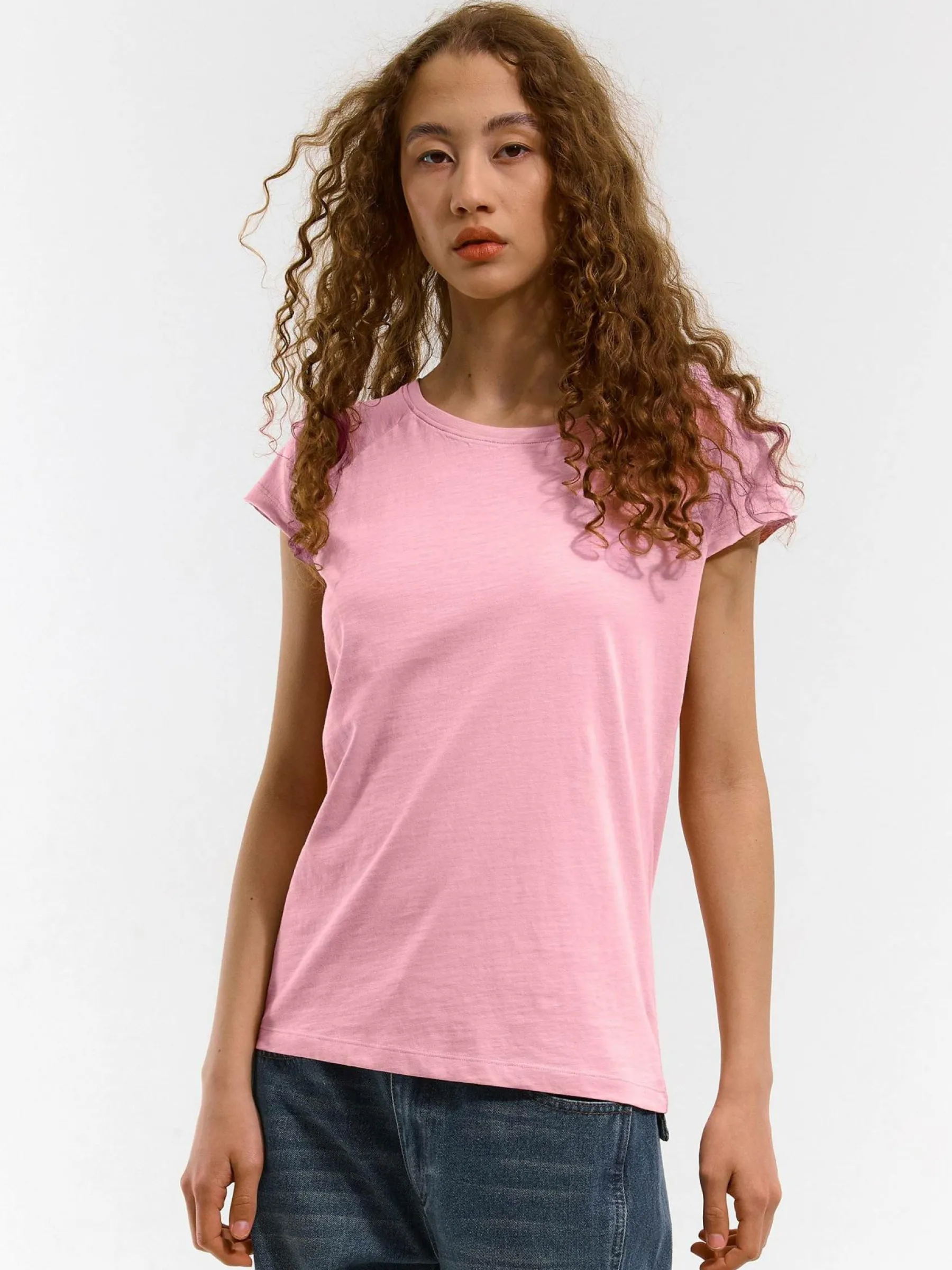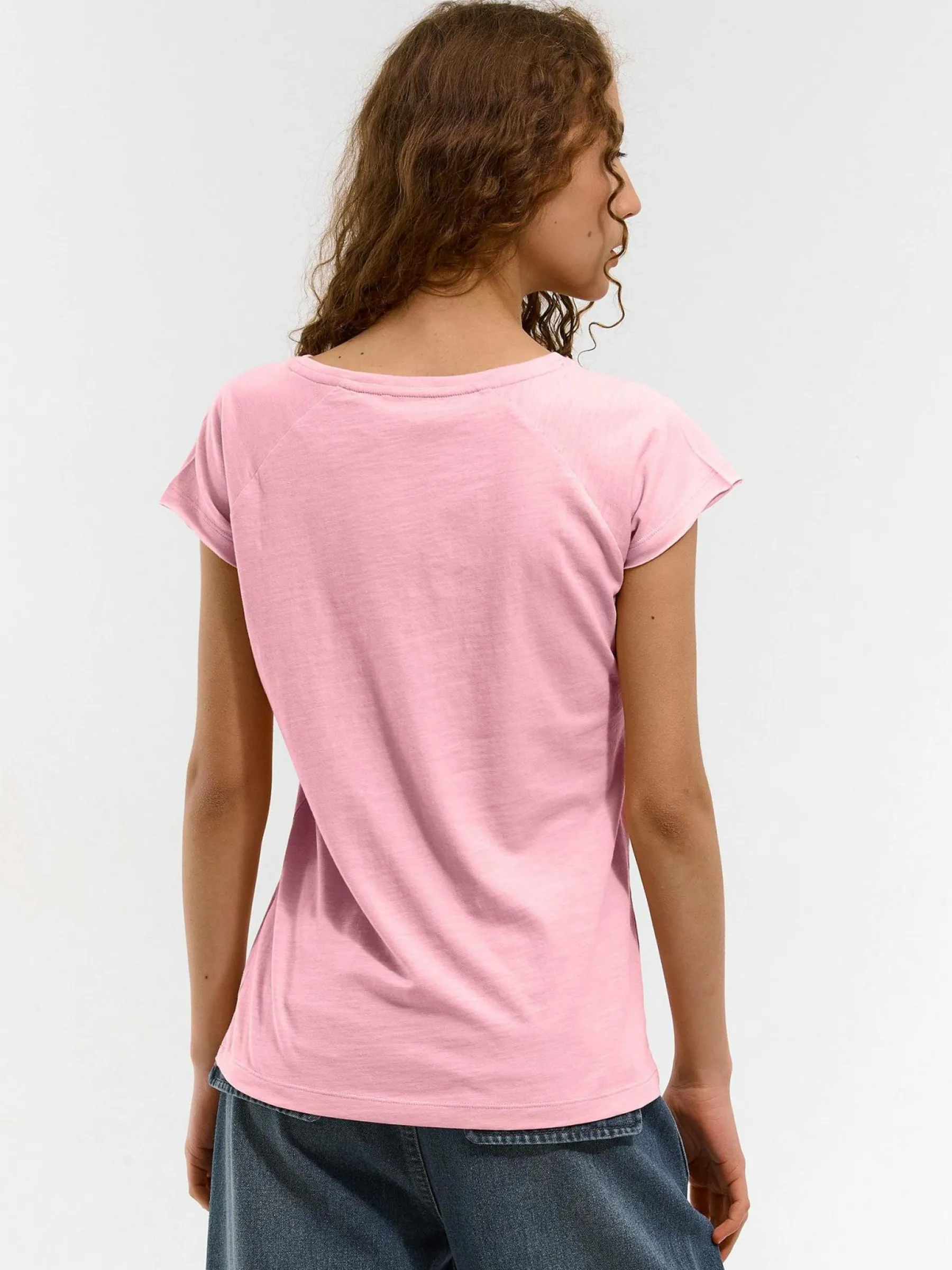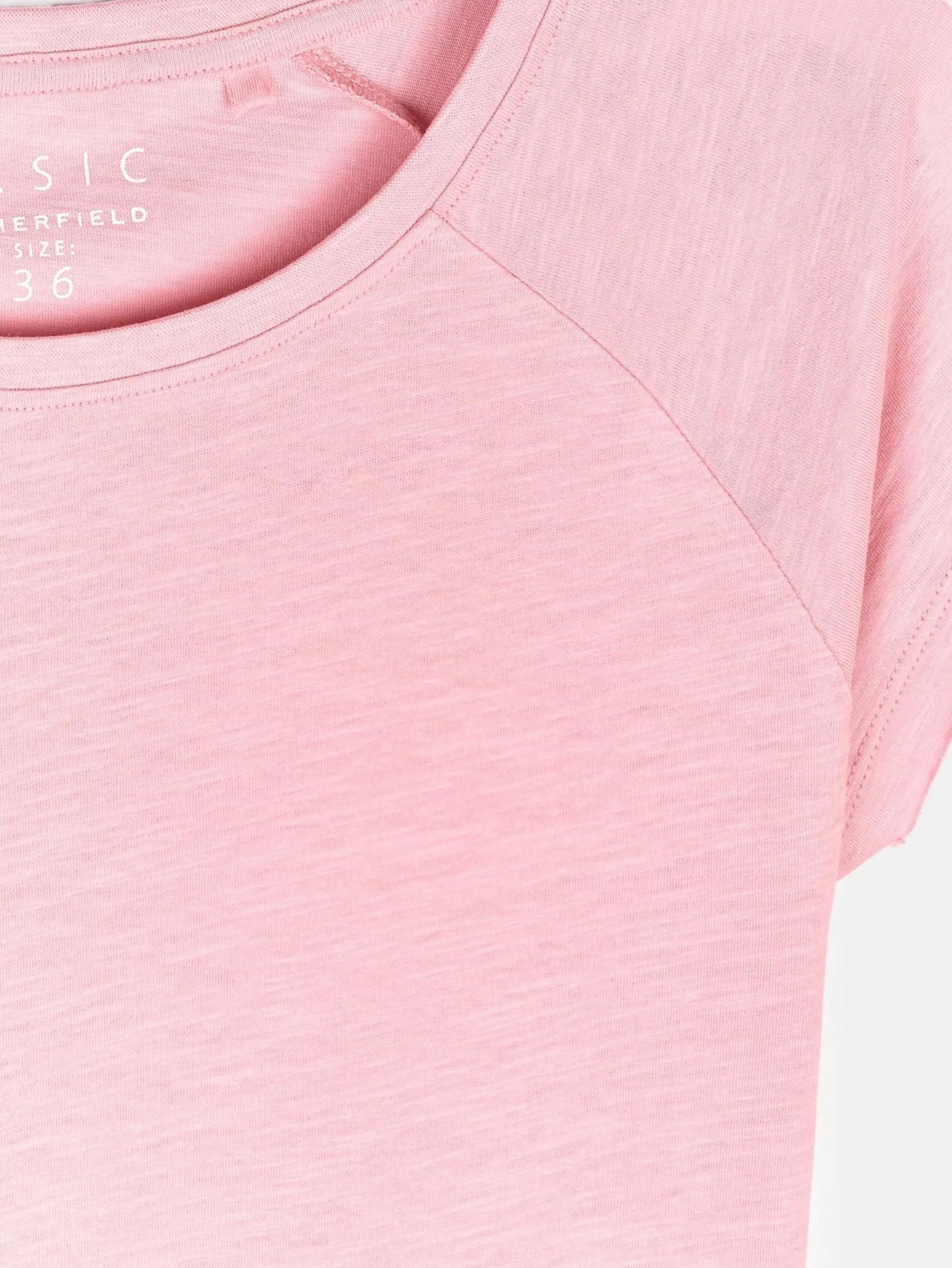 Kolor: różowyKrój: regularTyp: koszulkaRekaw: krótki rękawDługość: krótkiPattern style: pojedynczy kolorDetal: …