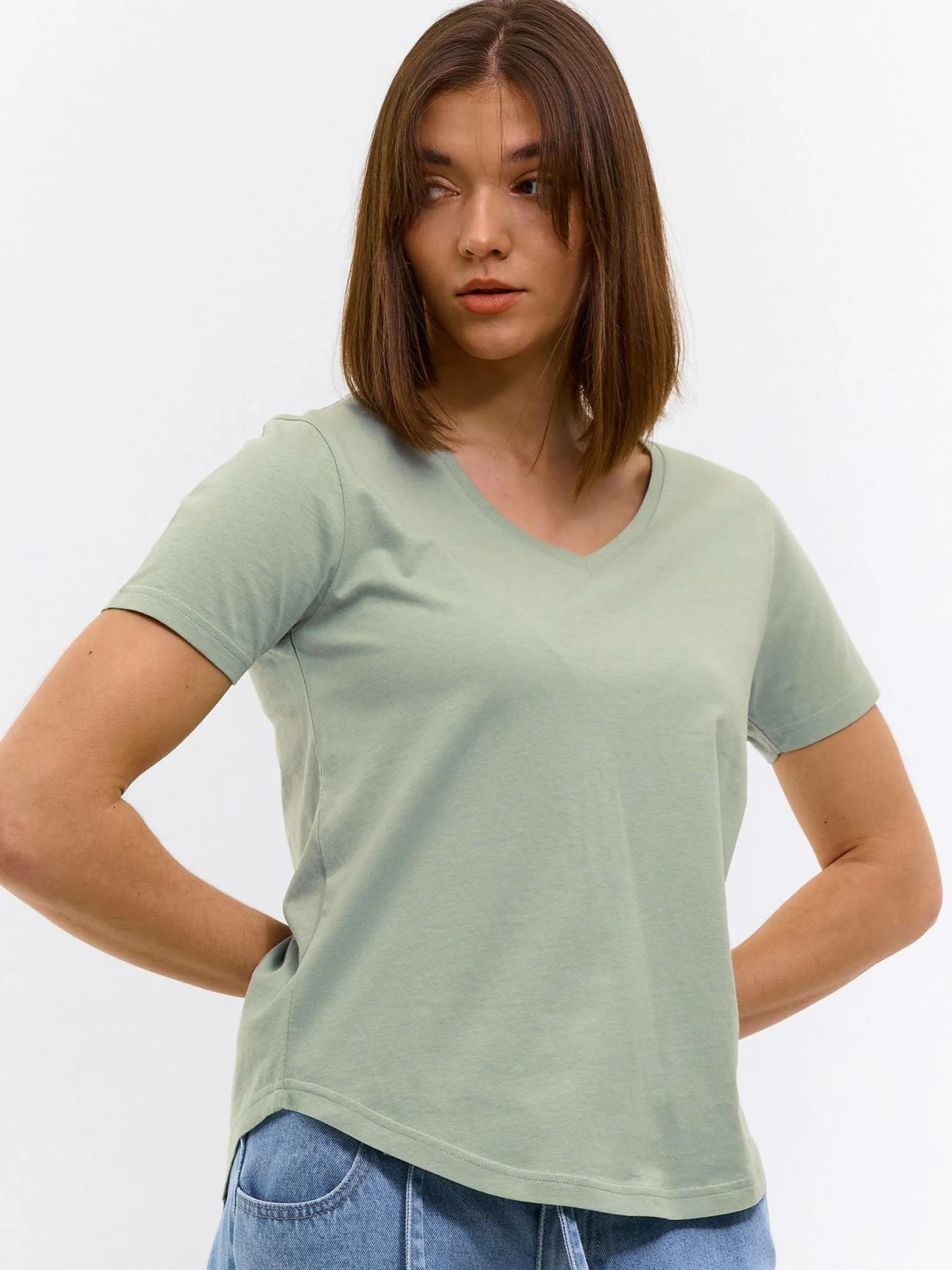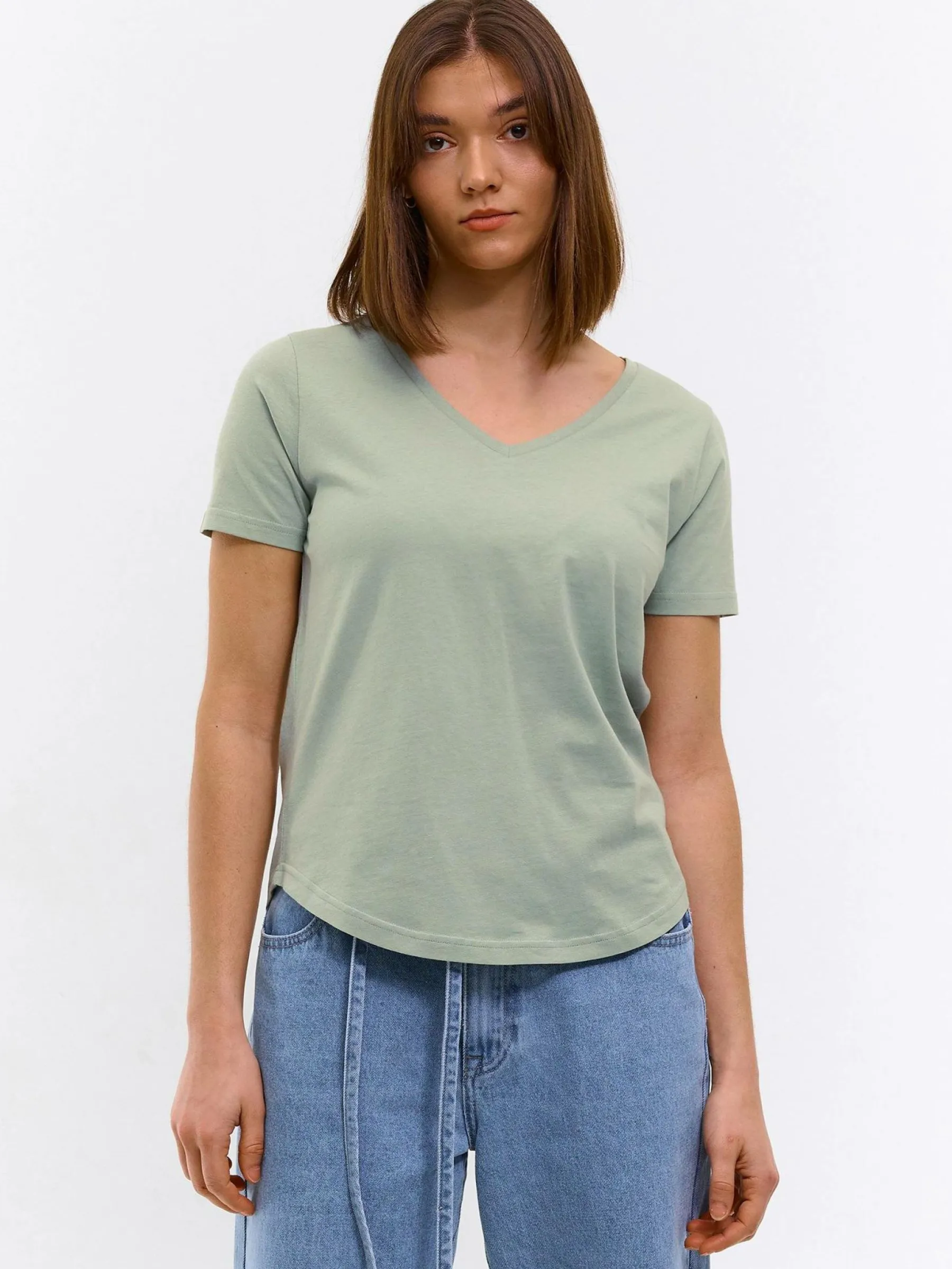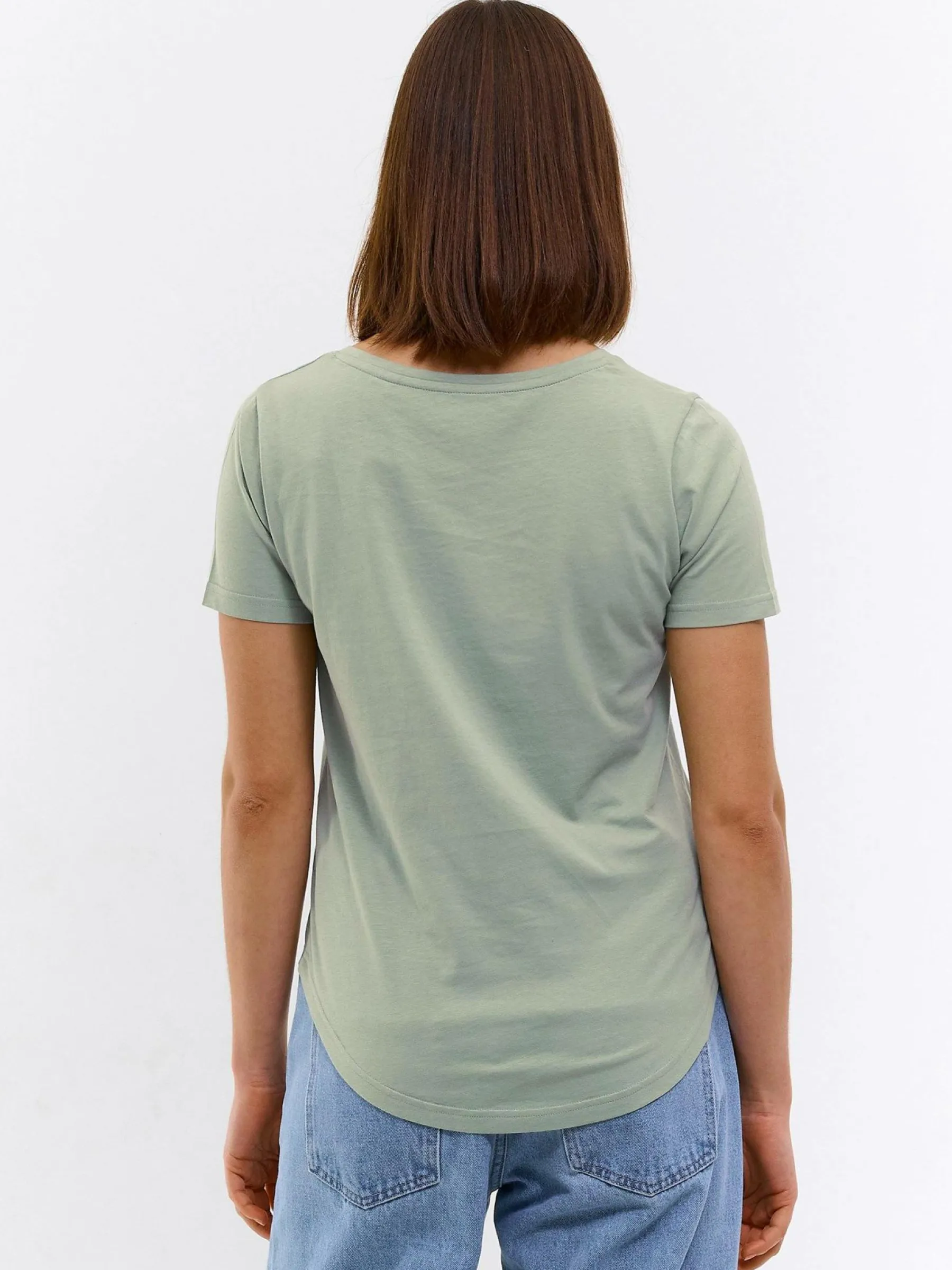 Kolor: zielonyKrój: regularTyp: koszulkaRekaw: krótki rękawDługość: krótkiPattern style: pojedynczy kolorDetal: n…