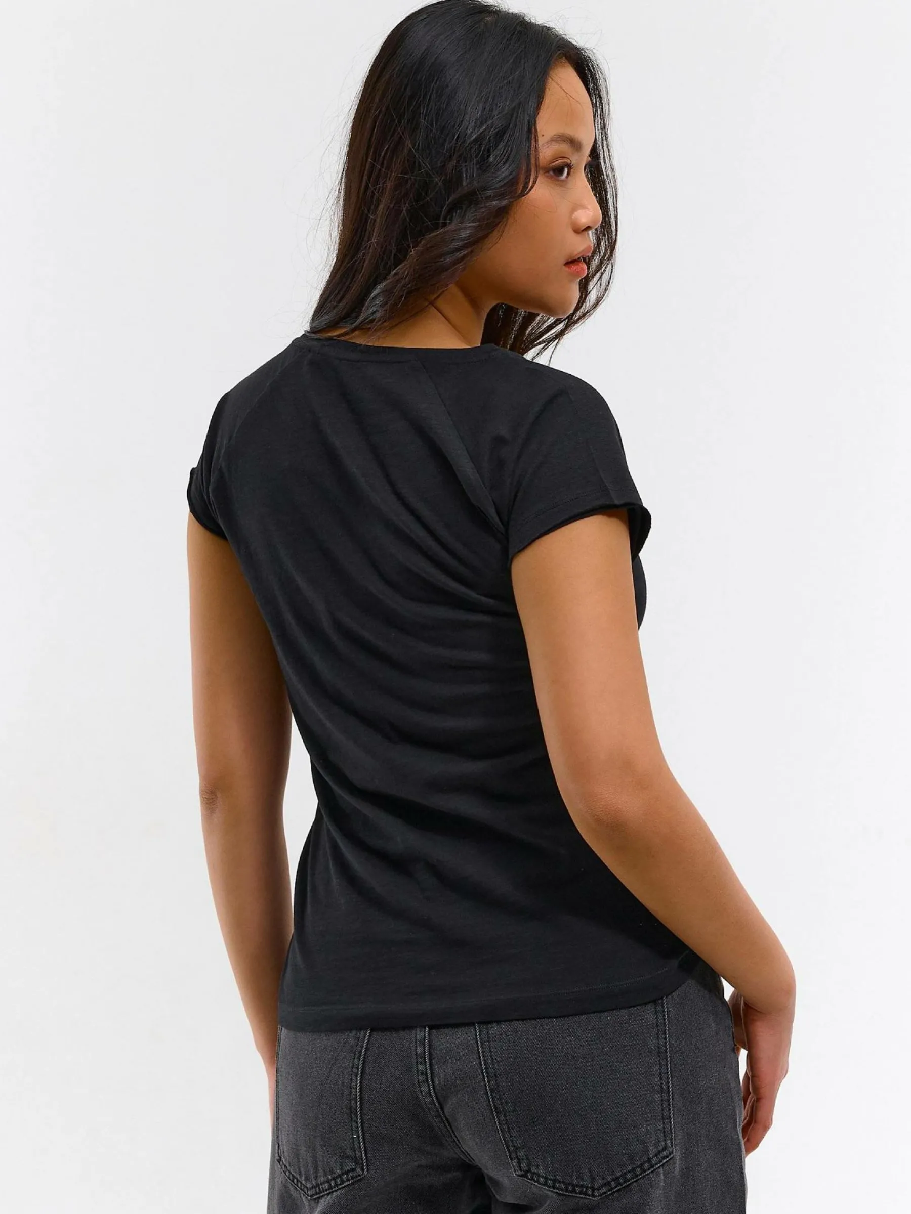 Kolor: czarnyKrój: regularTyp: koszulkaRekaw: krótki rękawDługość: krótkiPattern style: pojedynczy kolorDetal: na…