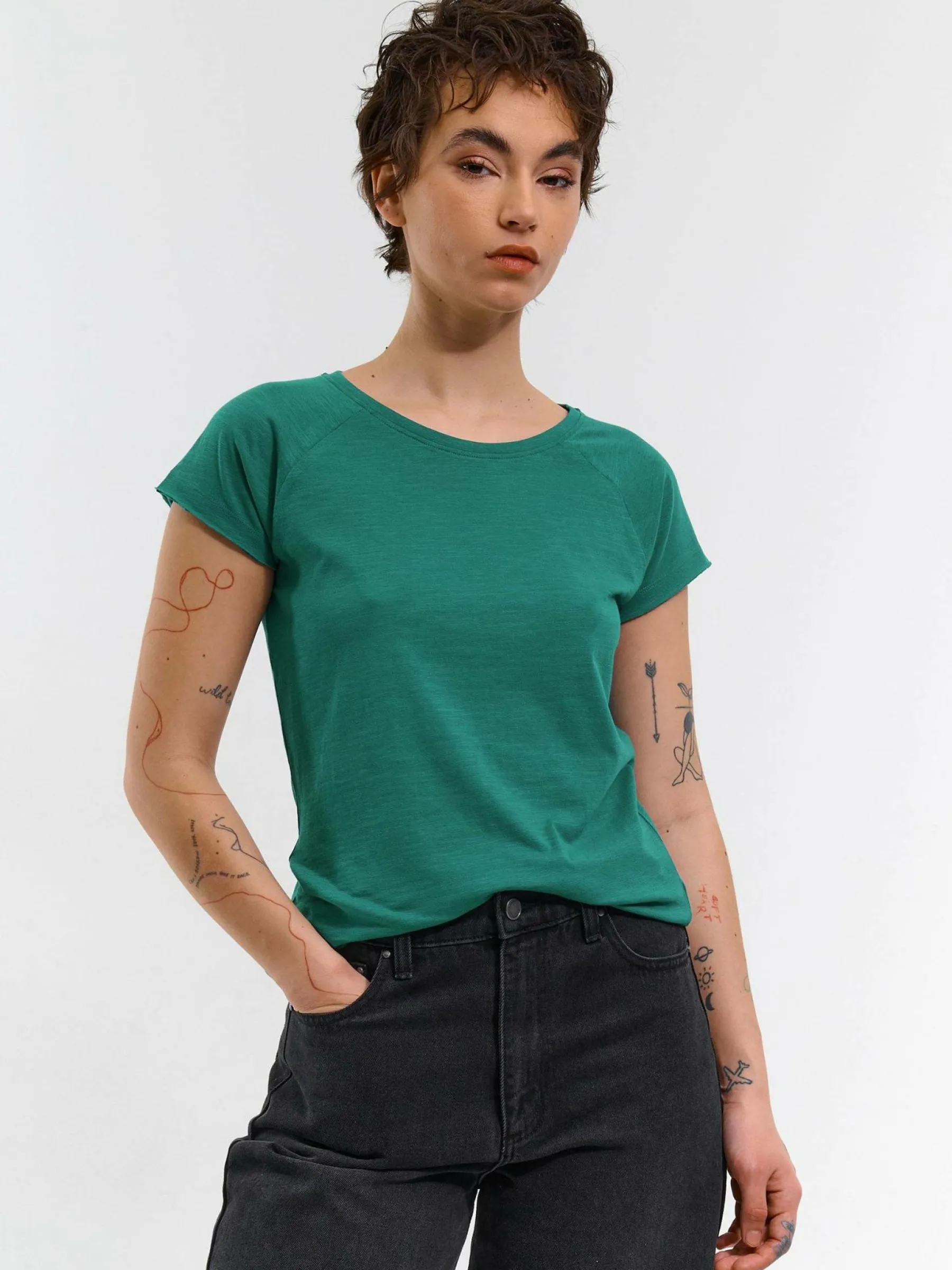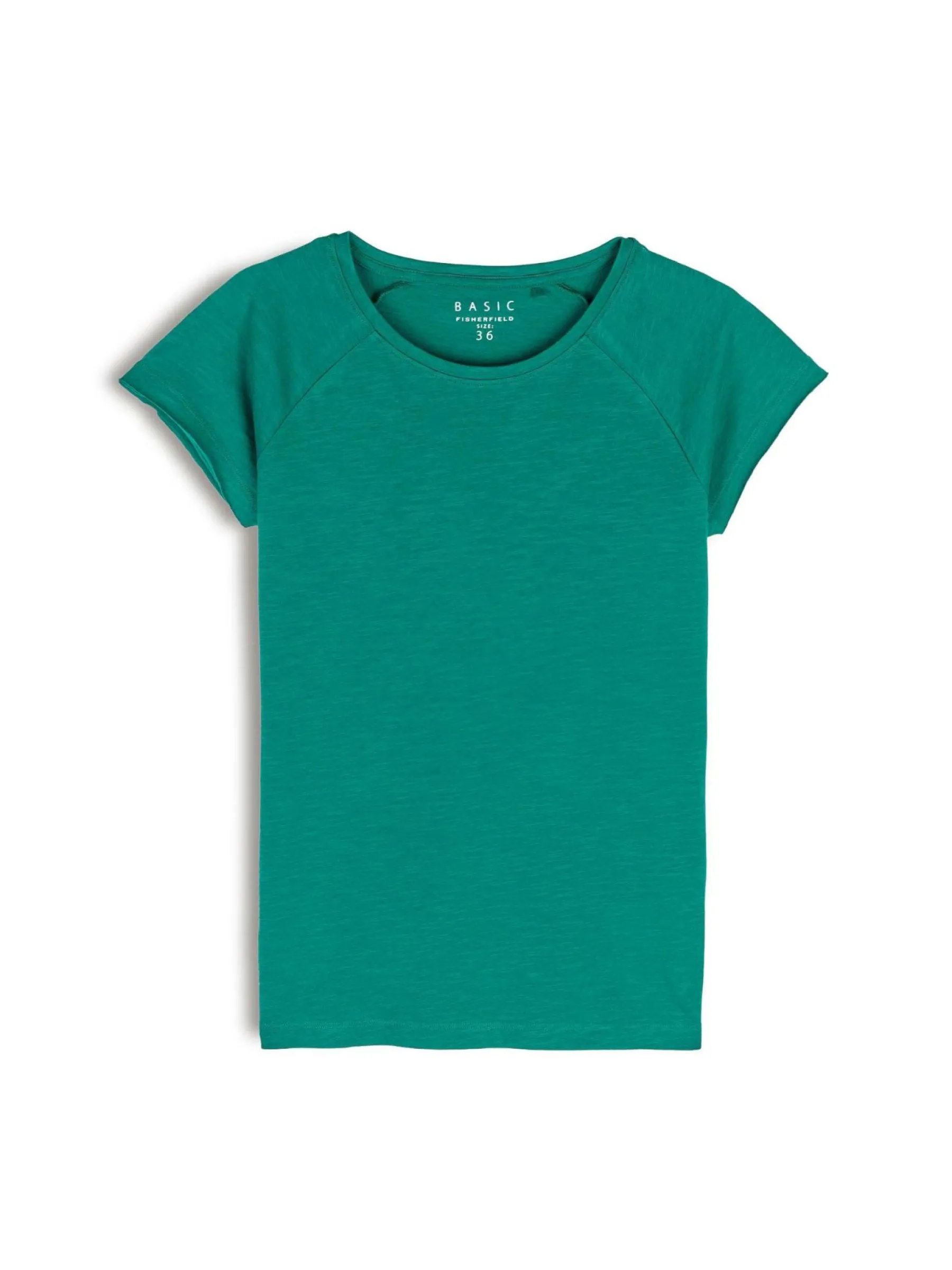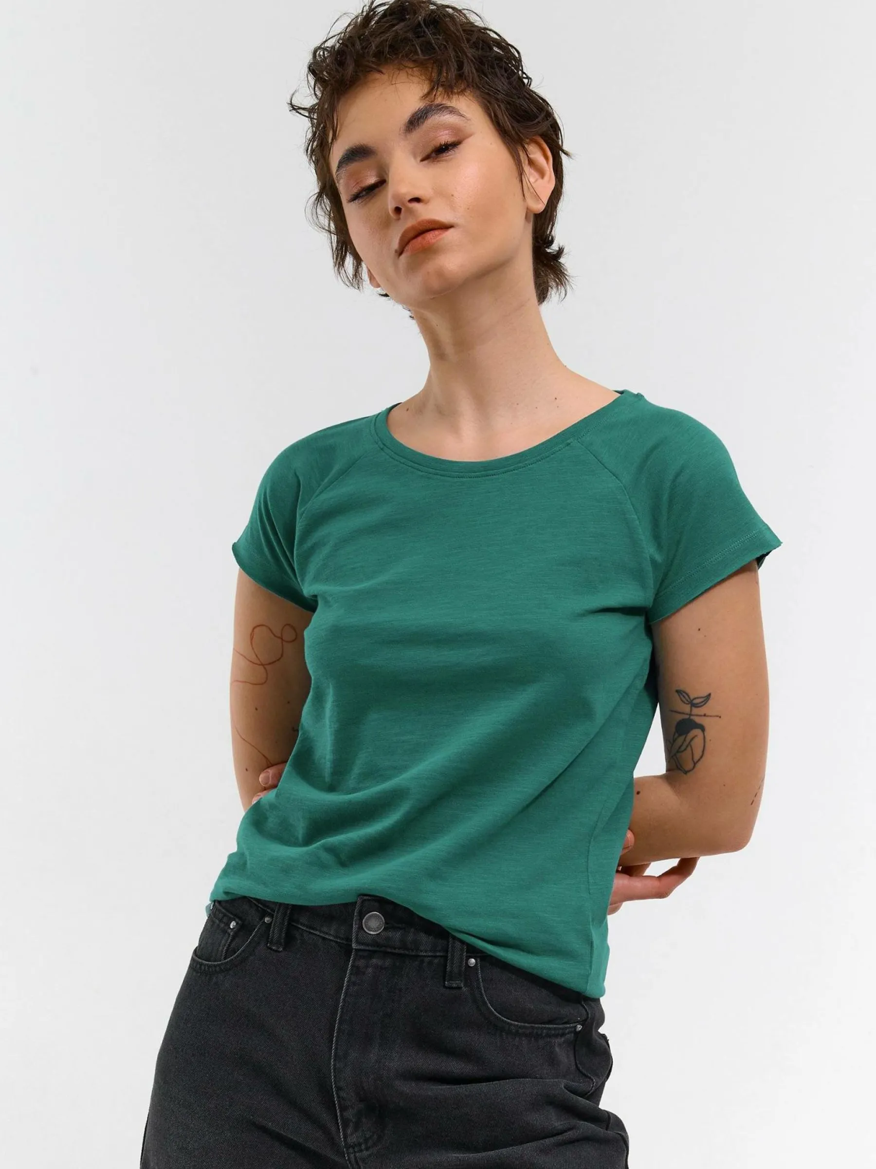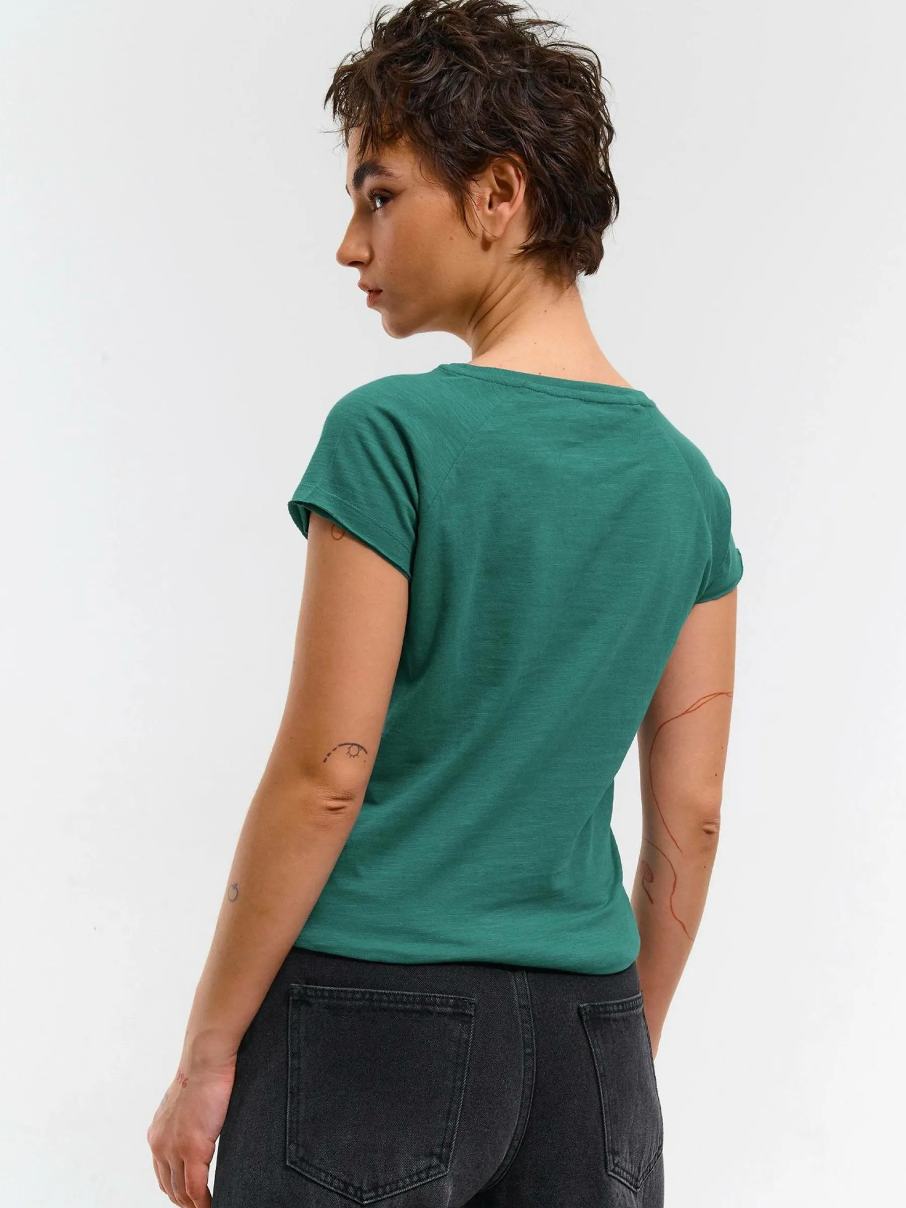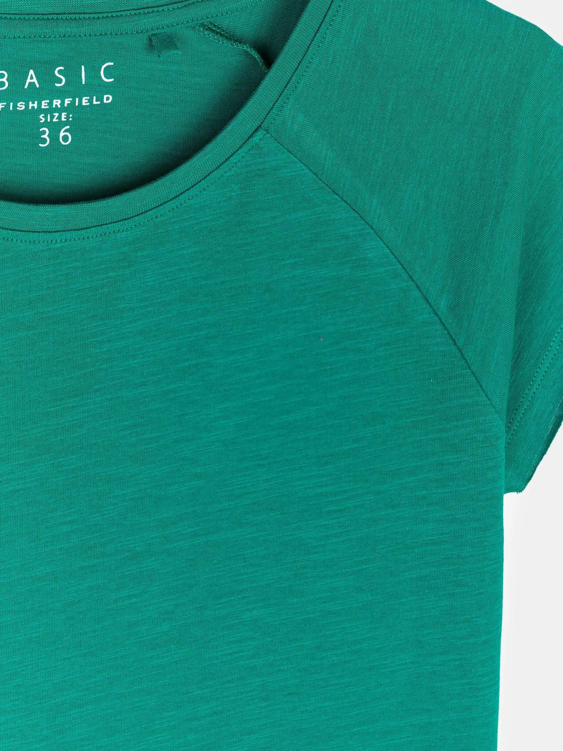 Kolor: zielonyKrój: regularTyp: koszulkaRekaw: krótki rękawDługość: krótkiPattern style: pojedynczy kolorDetal: n…