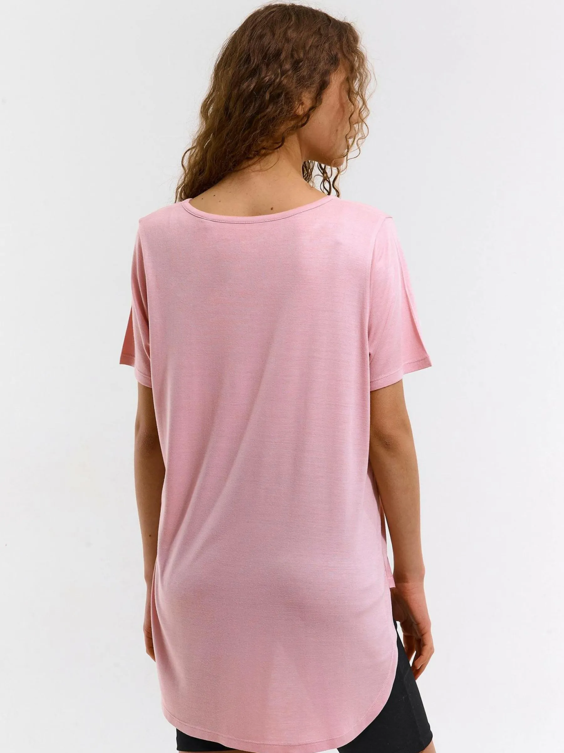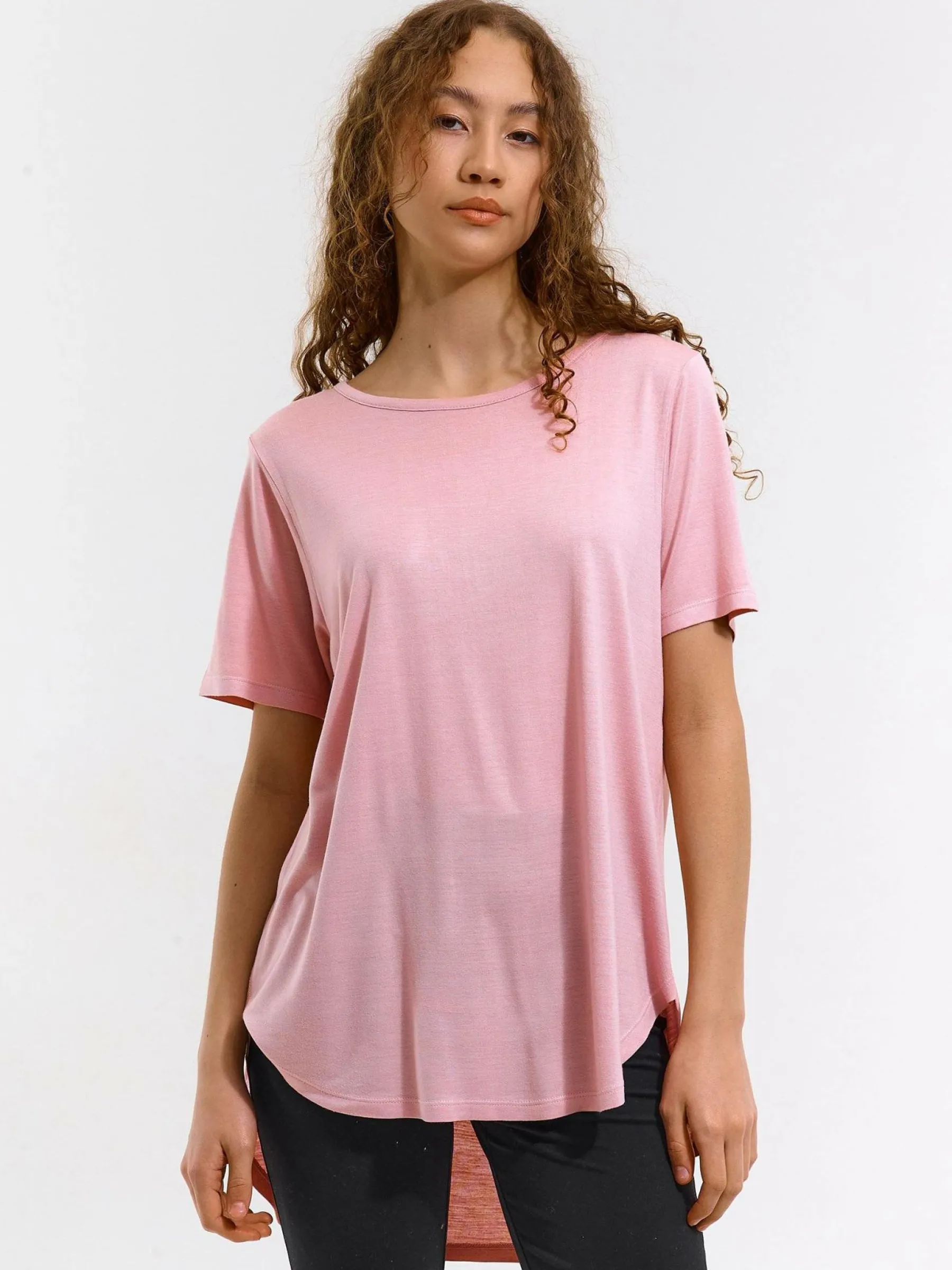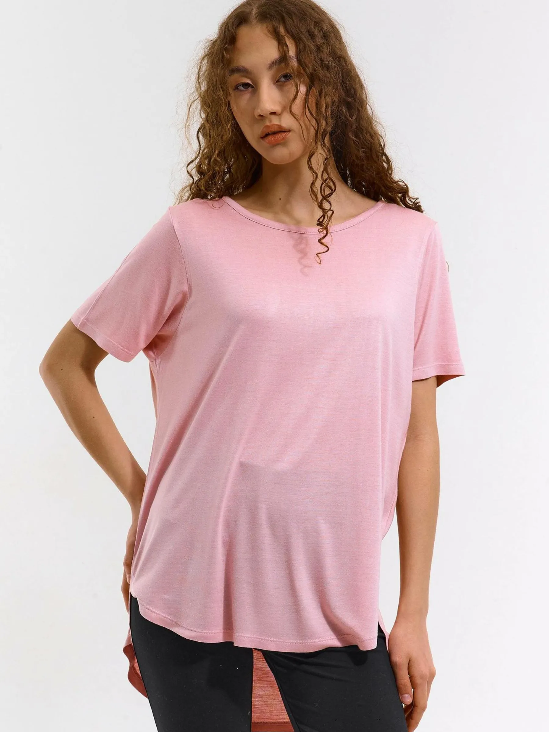 Zdjęcia z modelką mogą nie odpowiadać rzeczywistemu kolorowi produktu.Kolor: różowyKrój: asymetryczneTyp: koszulk…