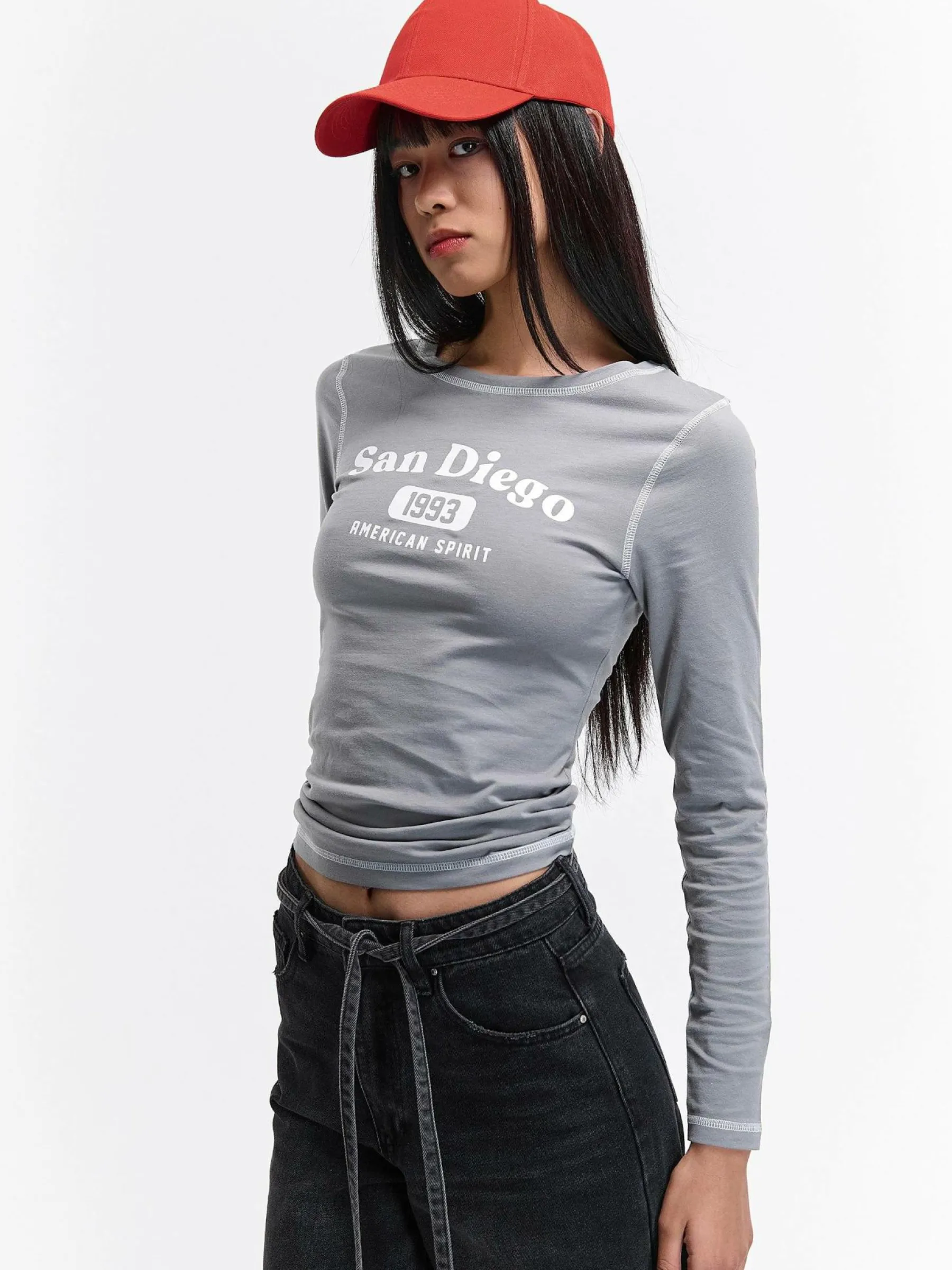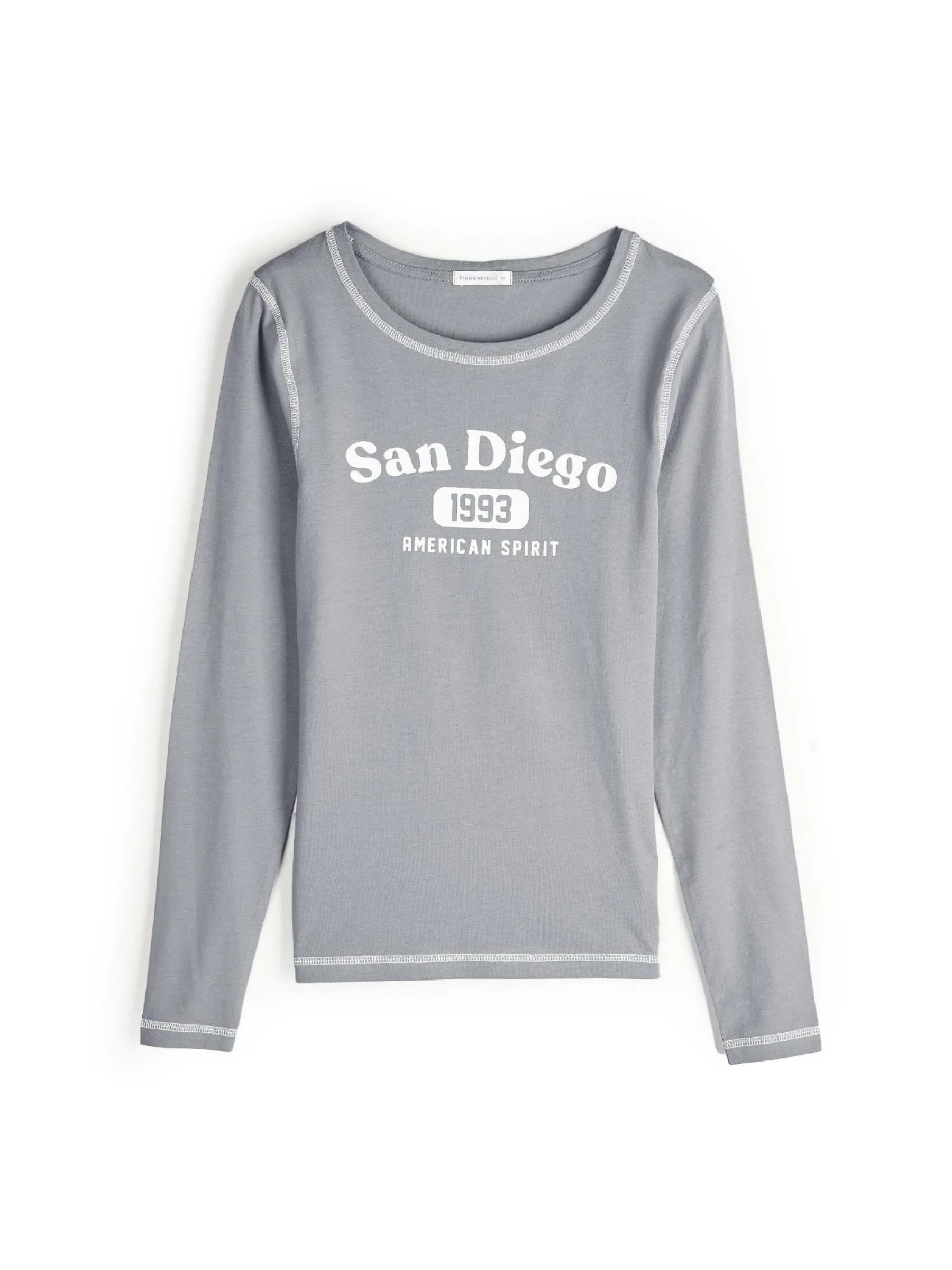 Kolor: szaryTyp: koszulkaRekaw: długi rękawDługość: krótkiPattern style: z nadrukiemDetal: nad głowąMateriał: b…