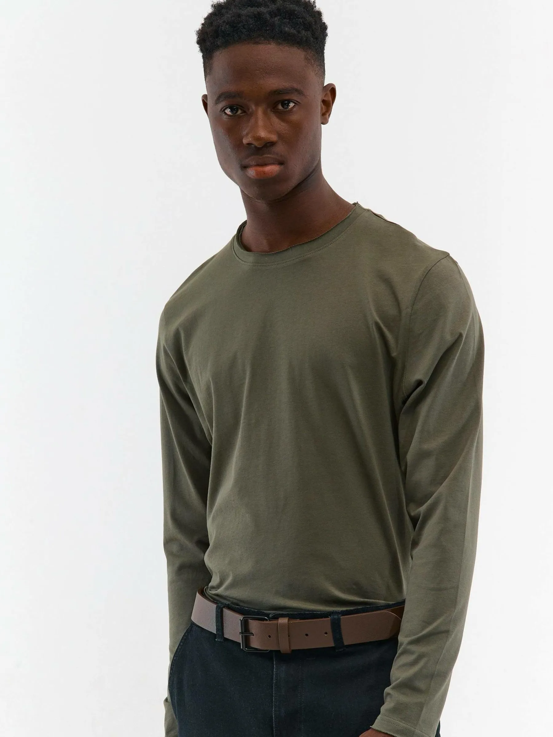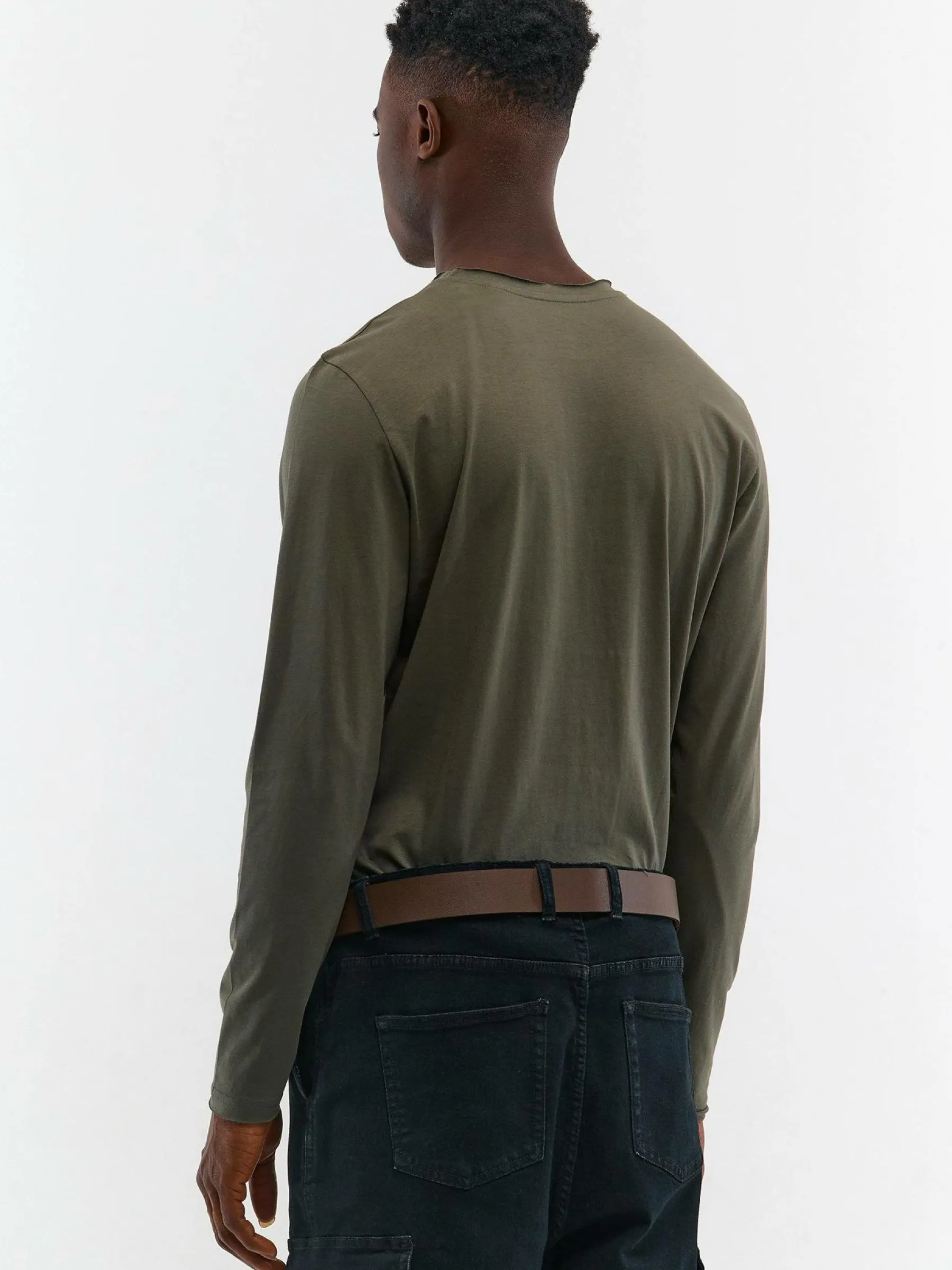 Kolor: khaki, zielonyKrój: regularTyp: koszulkaRekaw: długi rękawPattern style: pojedynczy kolorDetal: nad głowąMat…