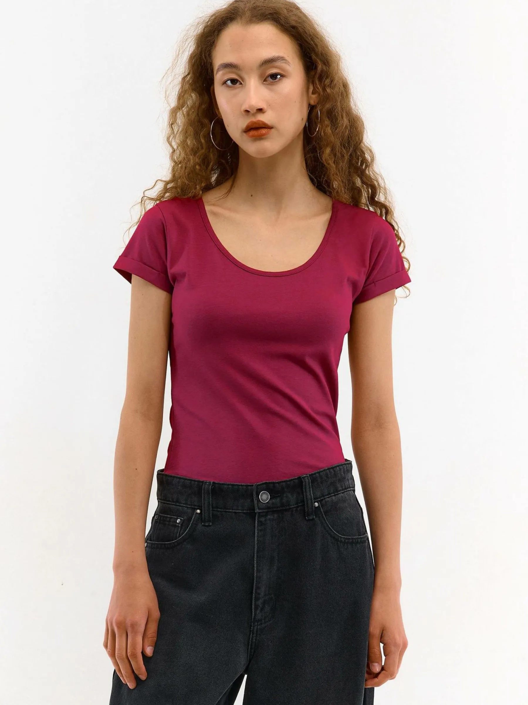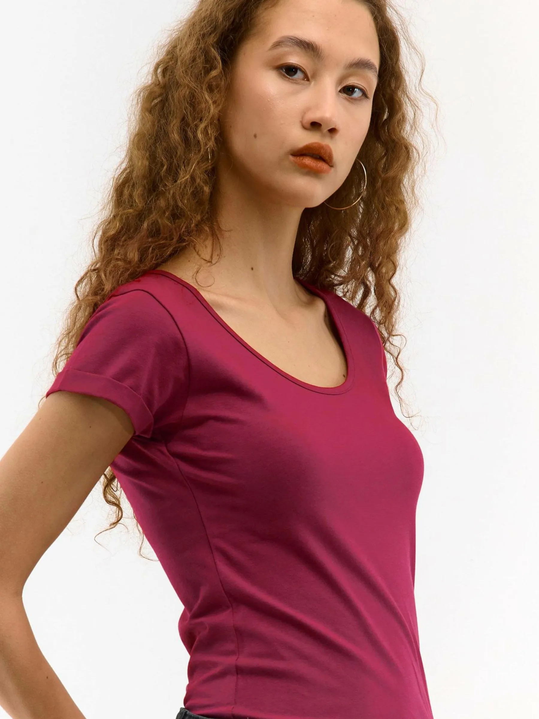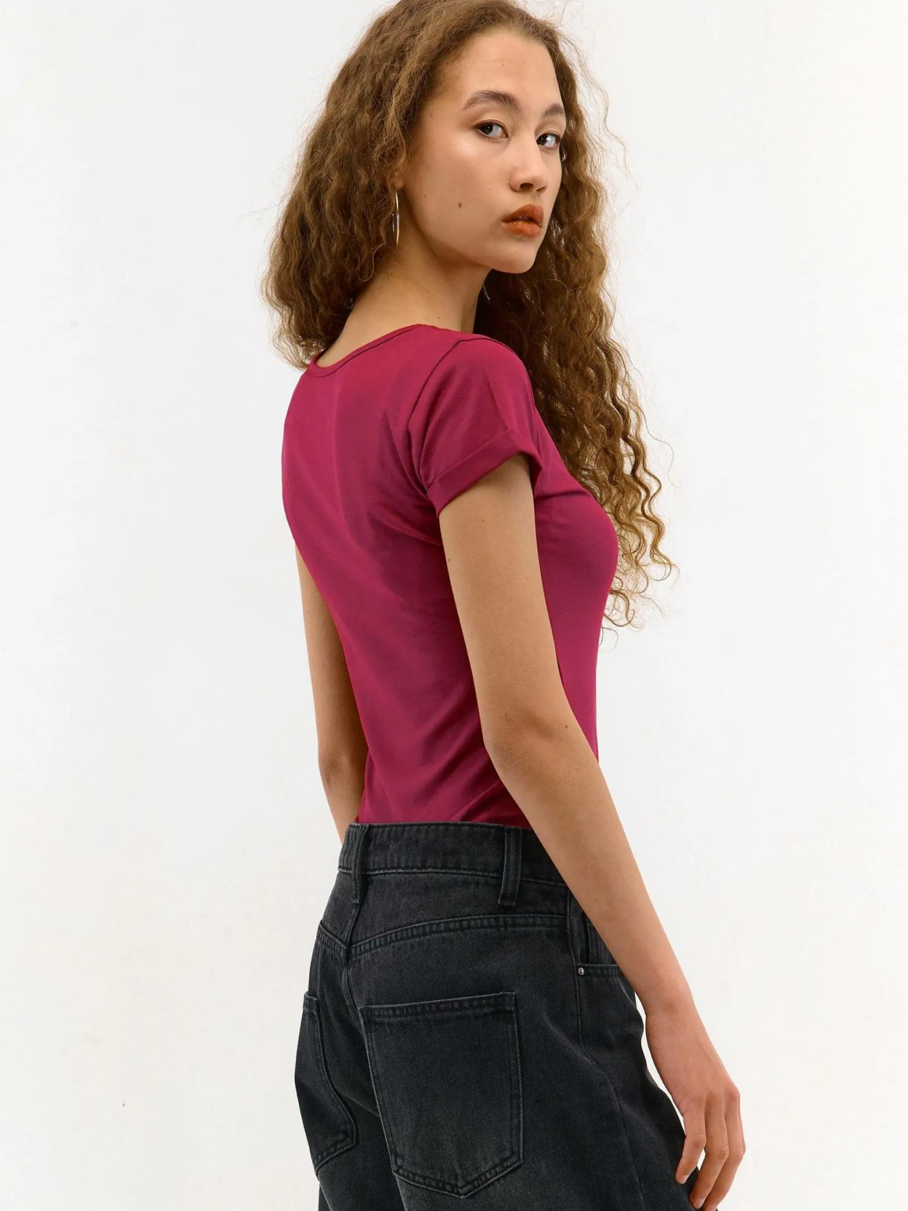 Kolor: różowyKrój: podstawowyTyp: koszulkaRekaw: krótki rękawDługość: krótkiPattern style: pojedynczy kolorDeta…