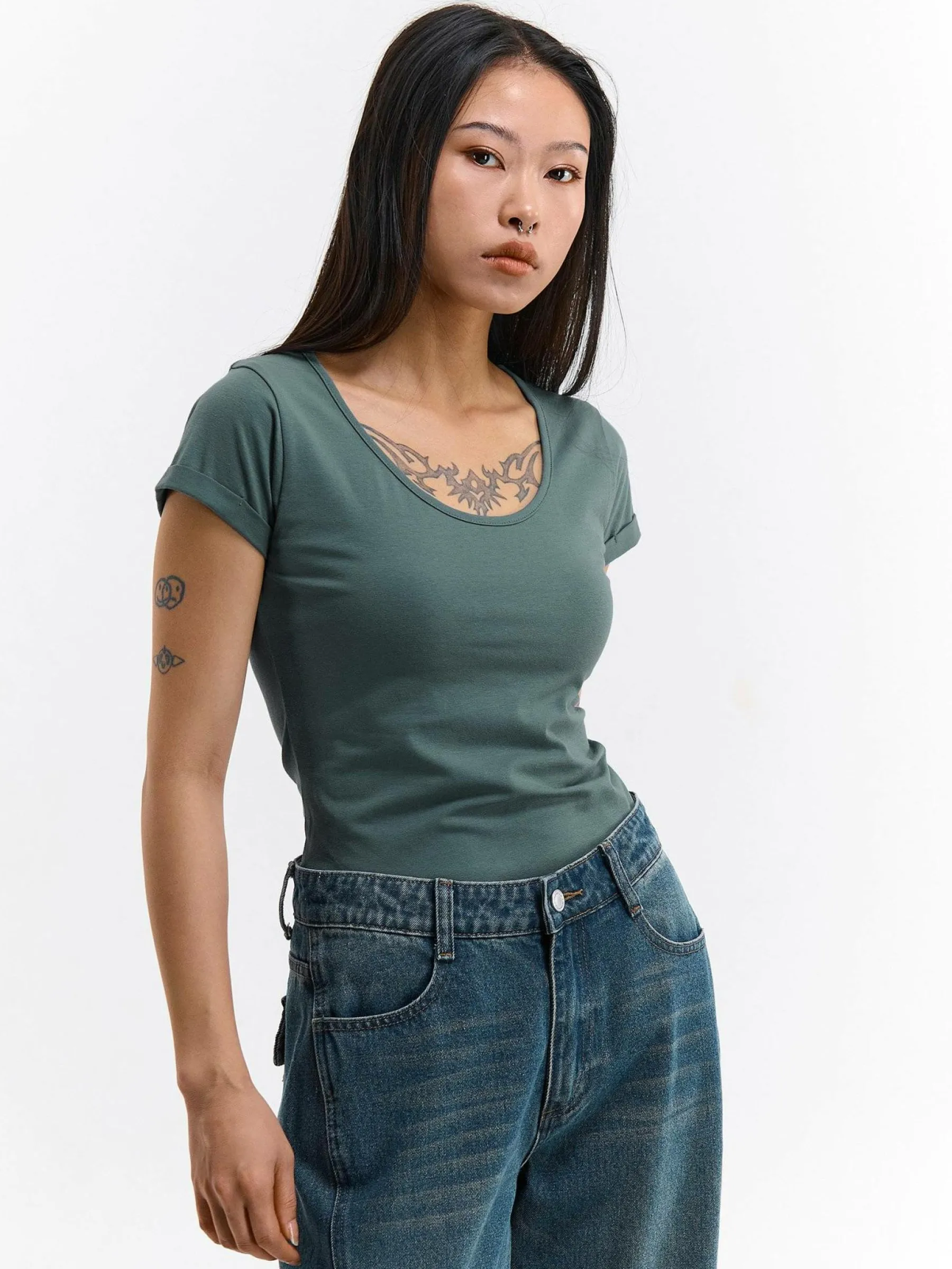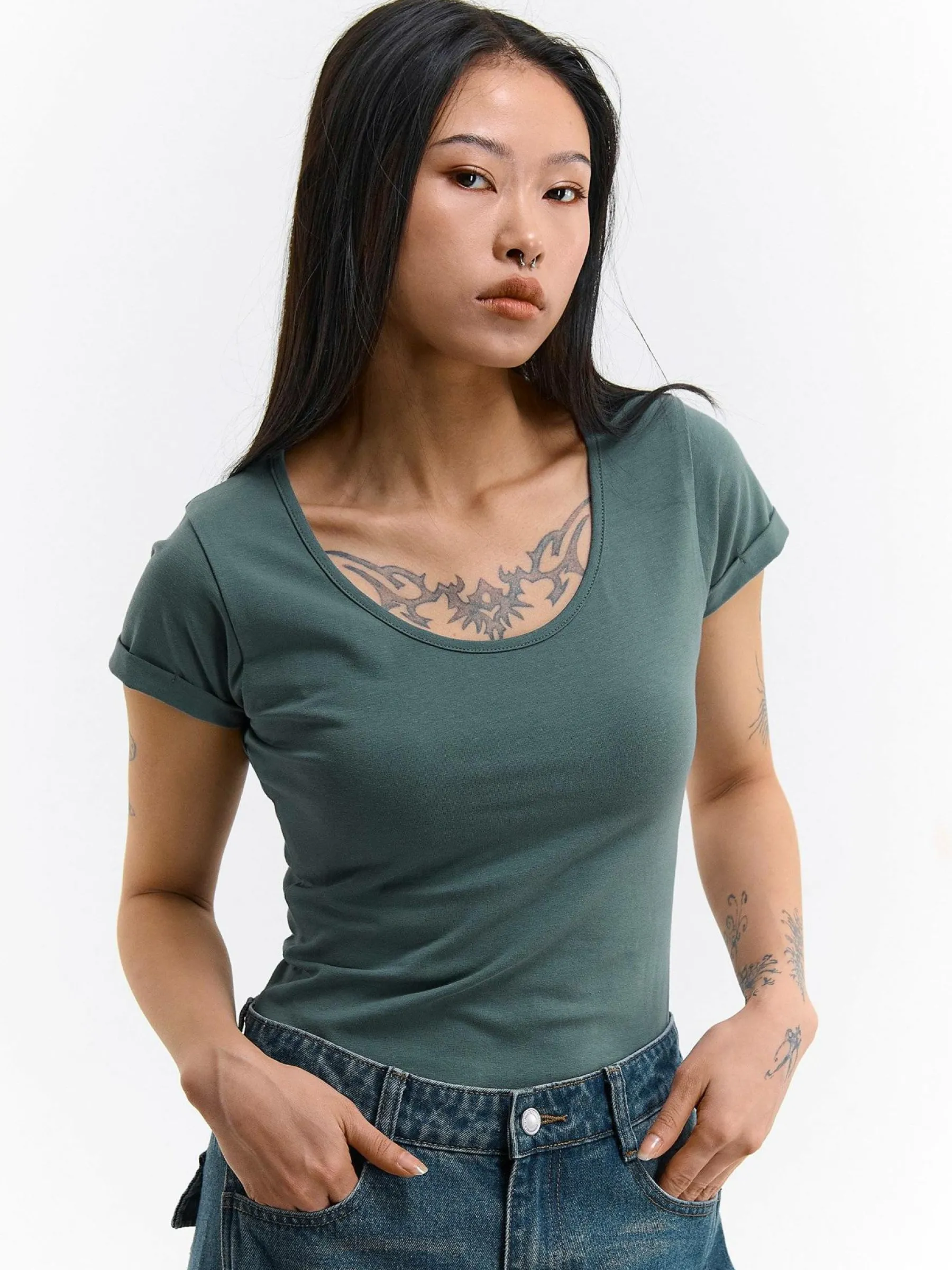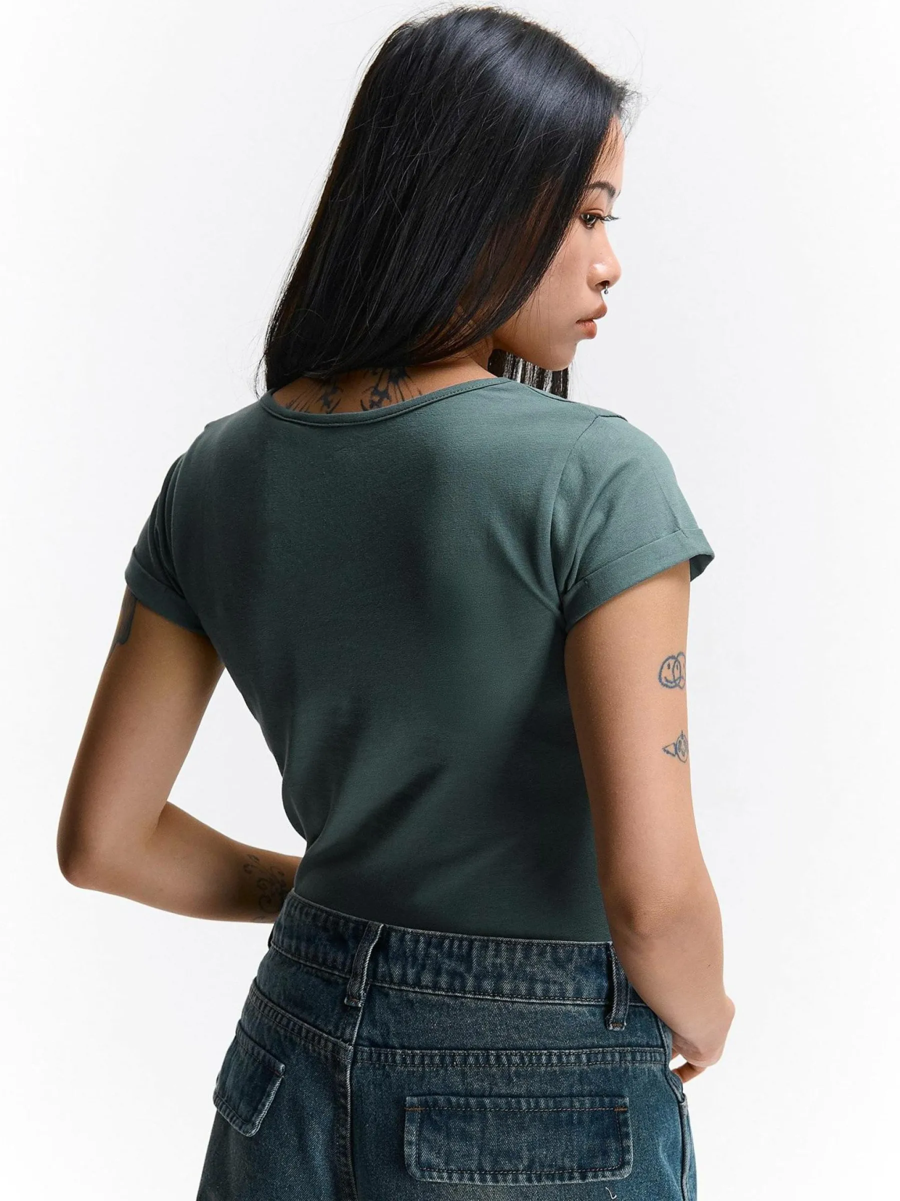 Kolor: zielonyKrój: podstawowyTyp: koszulkaRekaw: krótki rękawDługość: krótkiPattern style: pojedynczy kolorDetal…