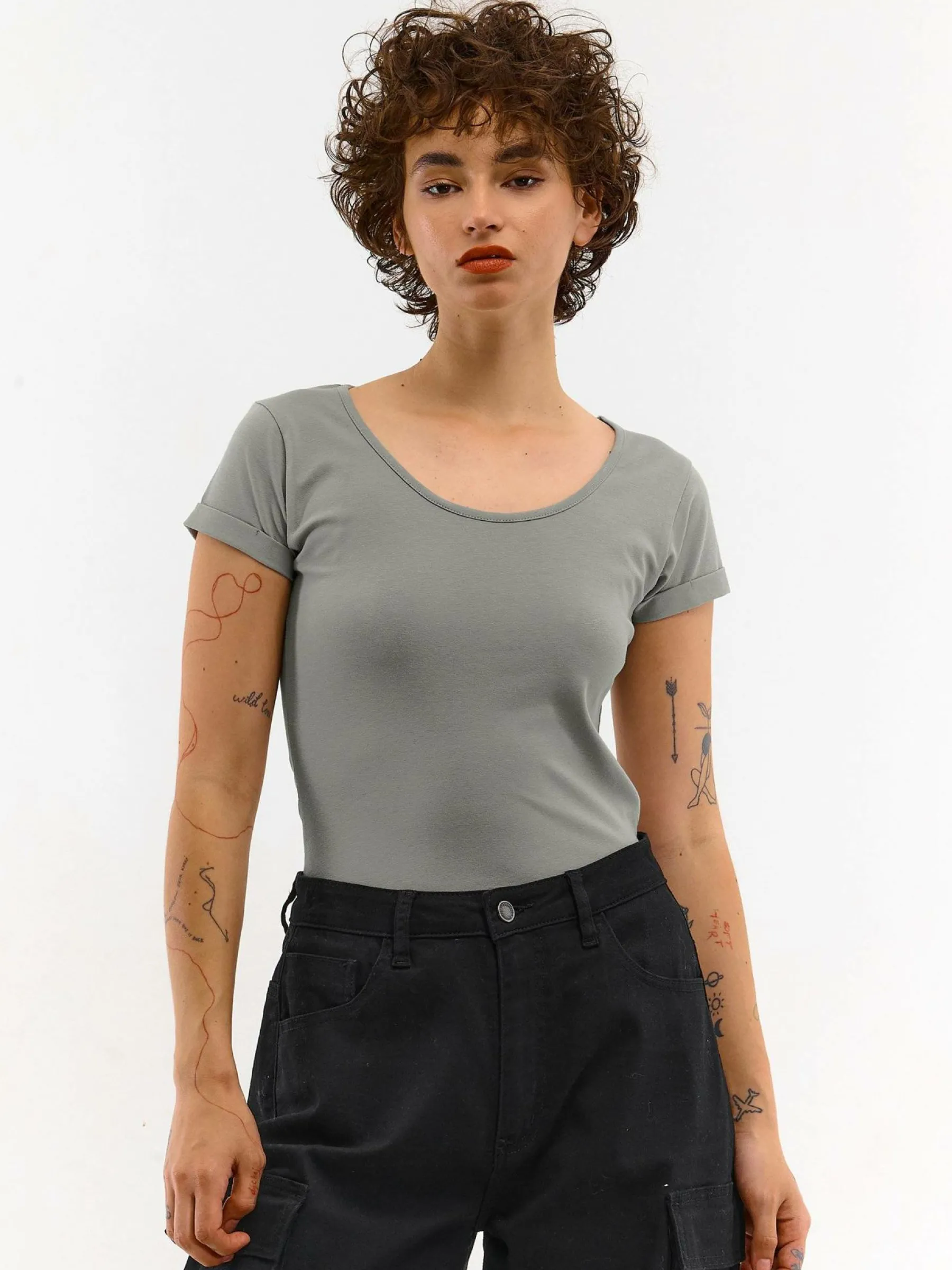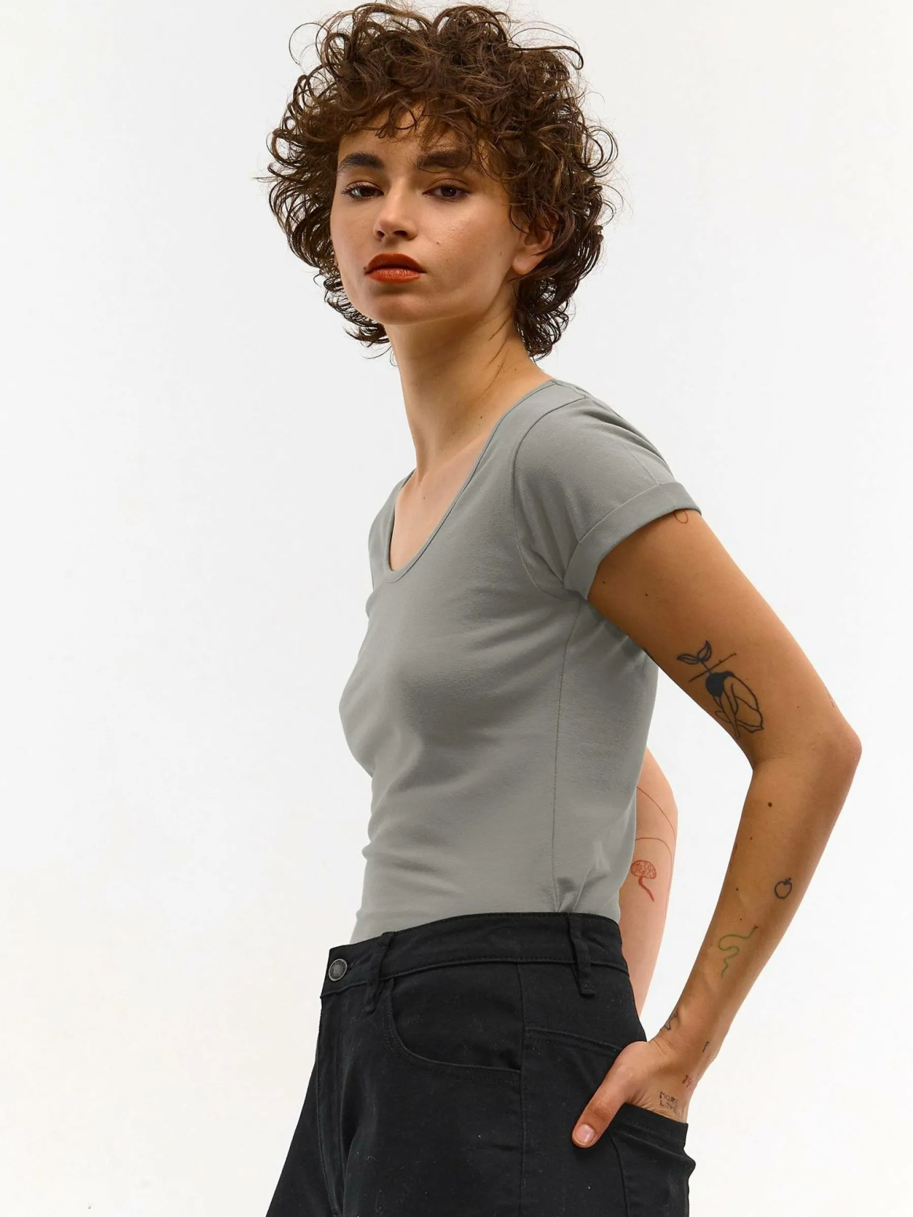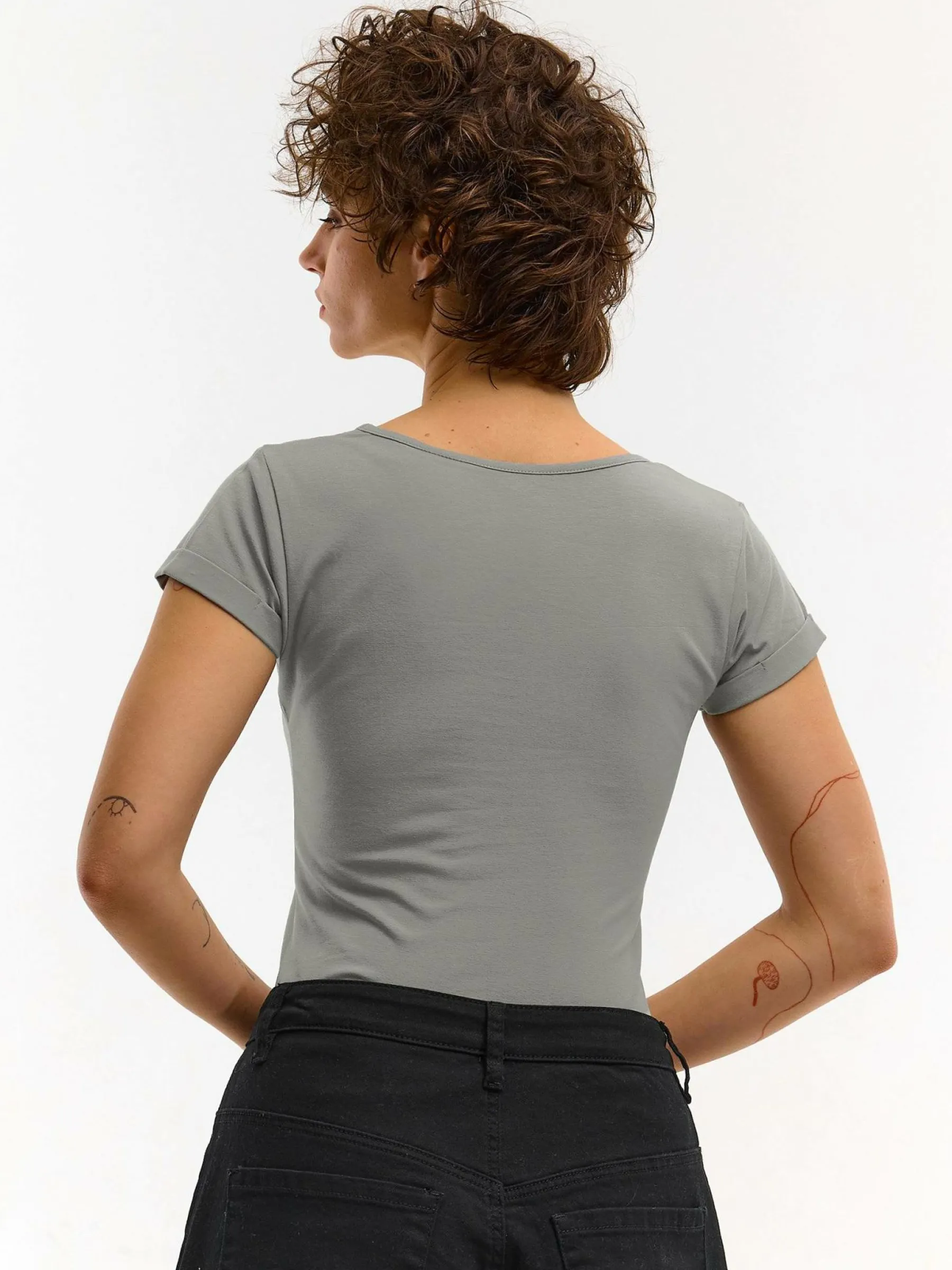 Kolor: szaryKrój: podstawowyTyp: koszulkaRekaw: krótki rękawDługość: krótkiPattern style: pojedynczy kolorDetal: …
