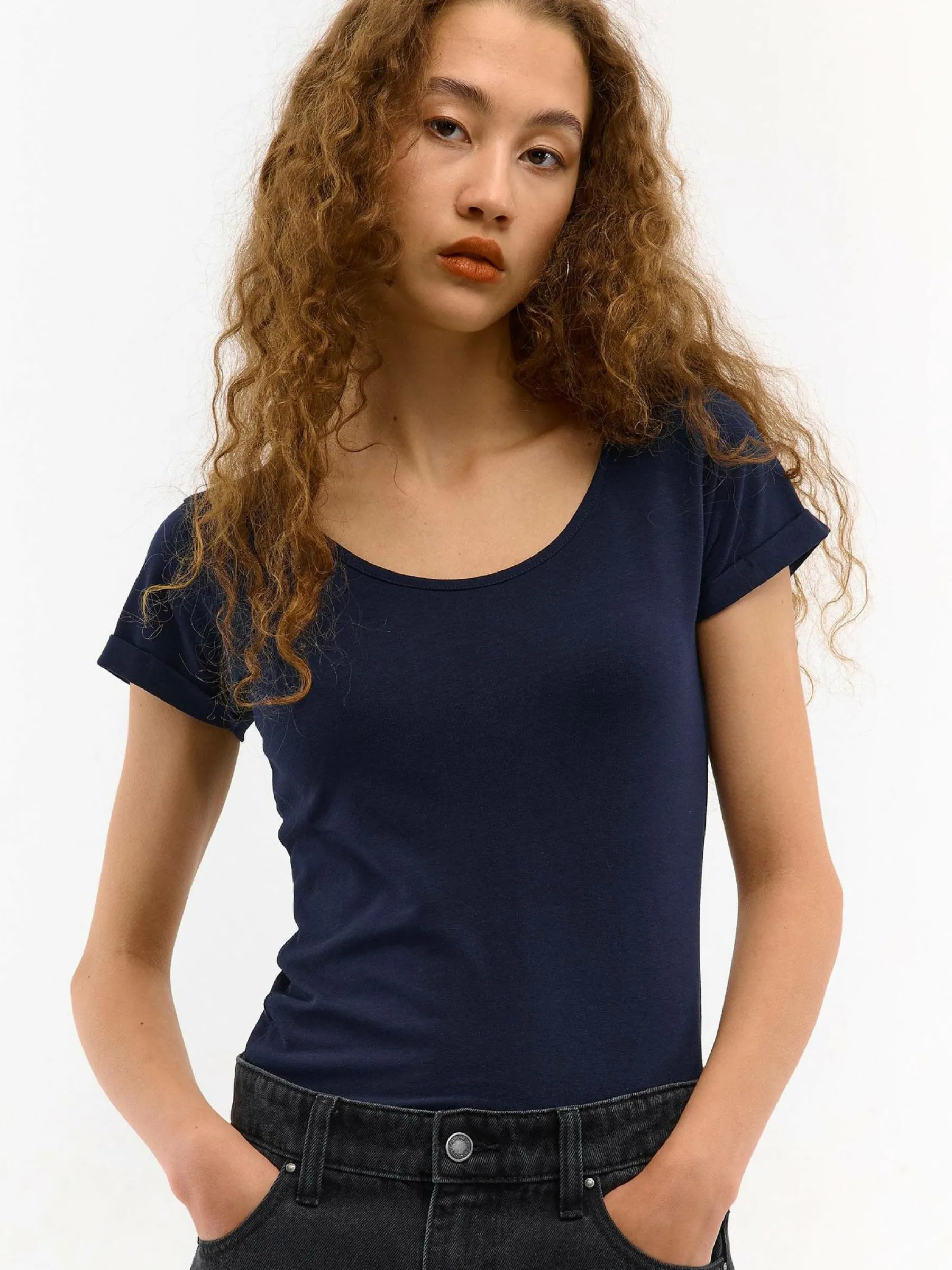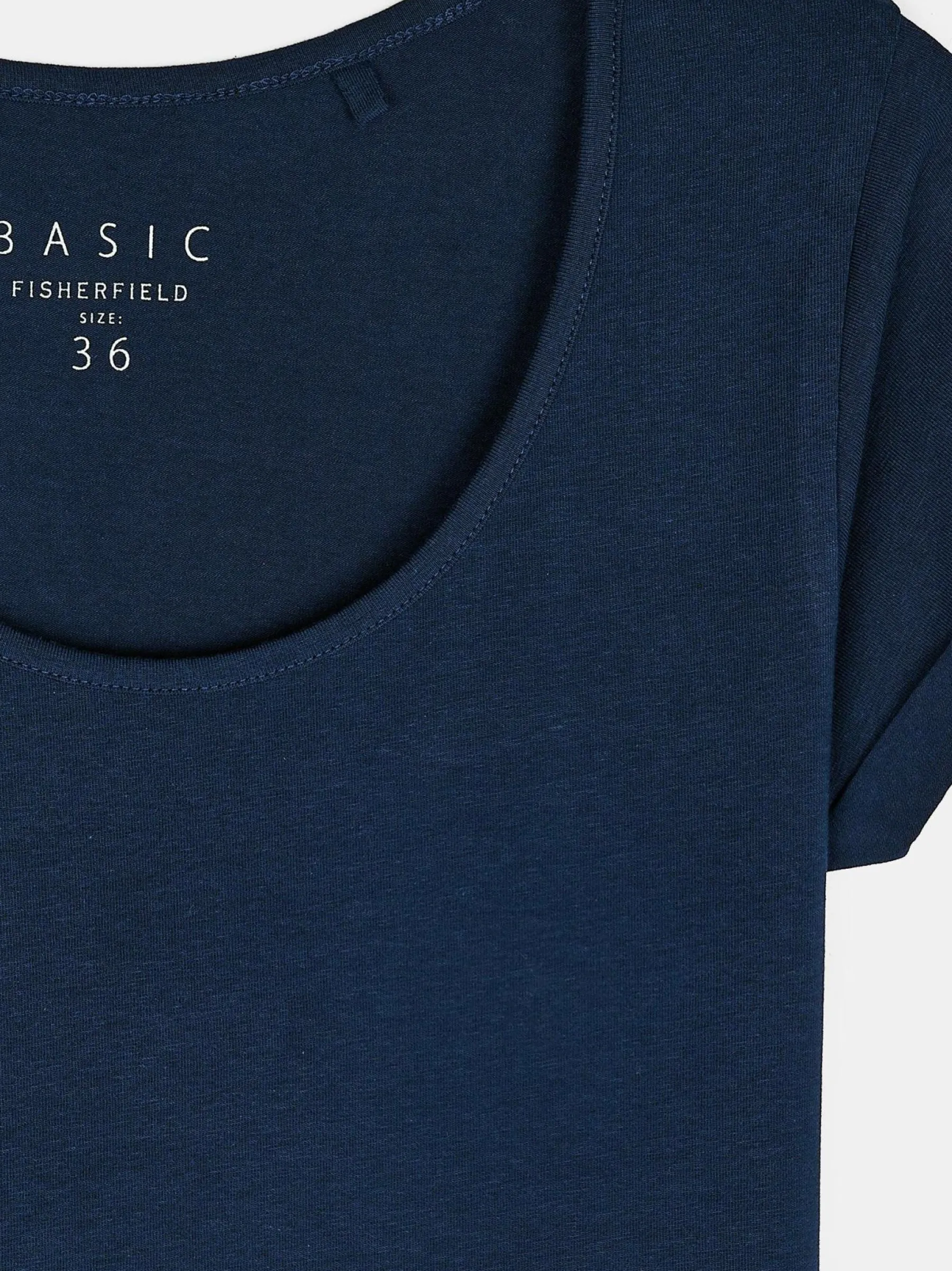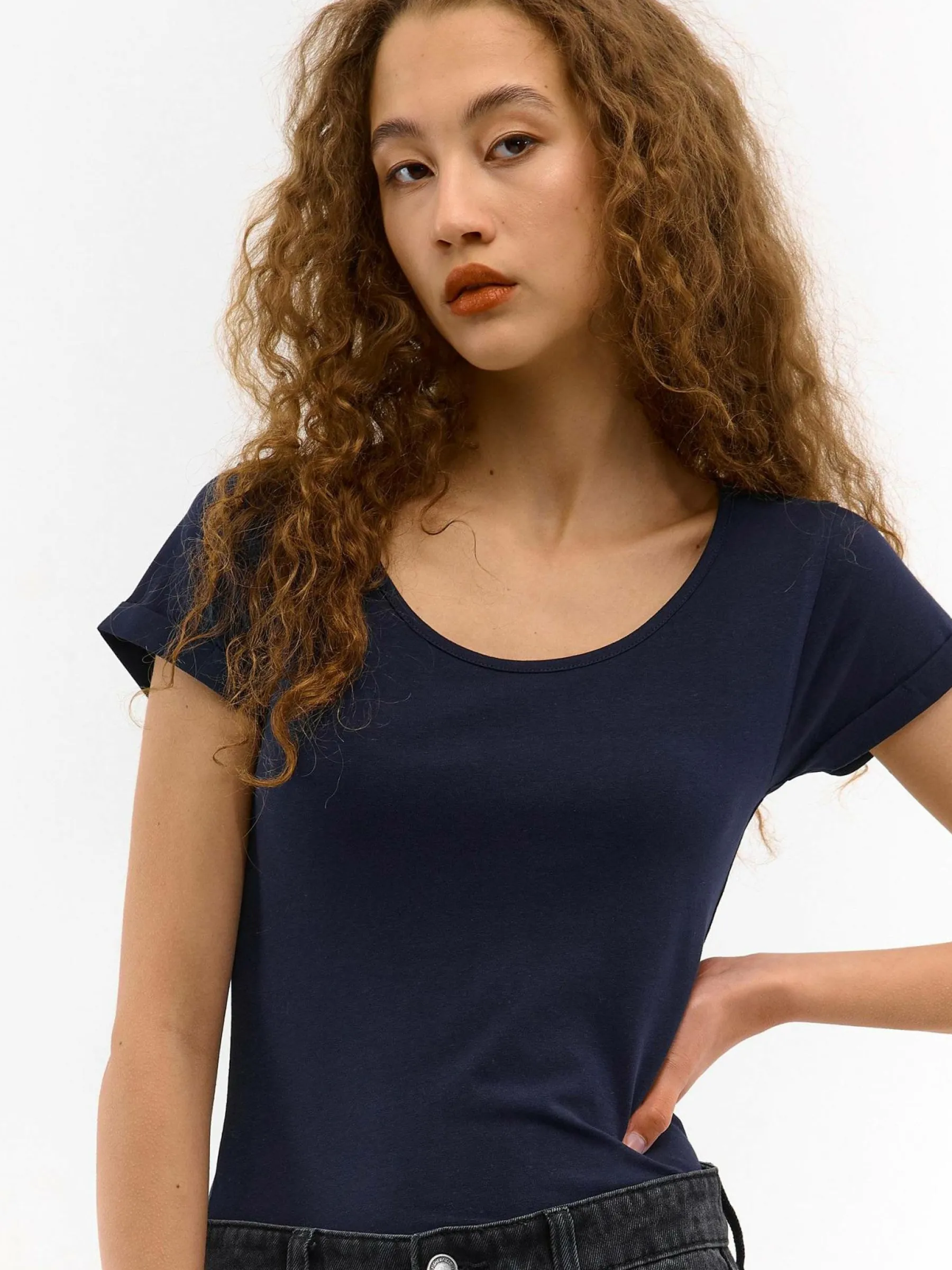 Kolor: granatowyKrój: podstawowyTyp: koszulkaRekaw: krótki rękawDługość: krótkiPattern style: pojedynczy kolorDet…