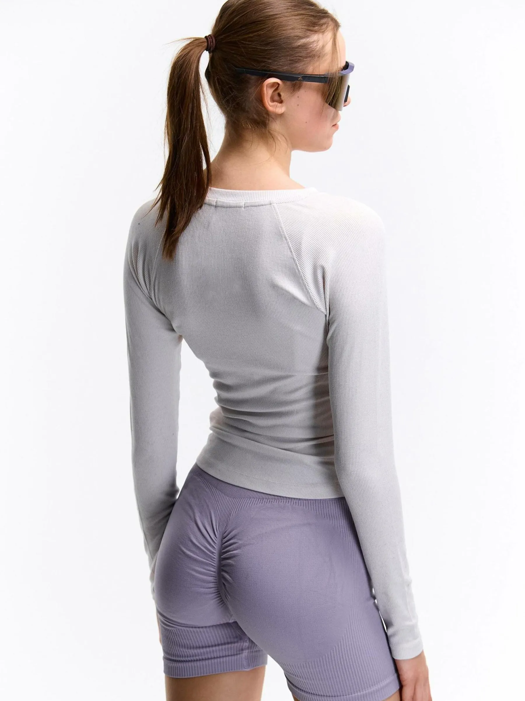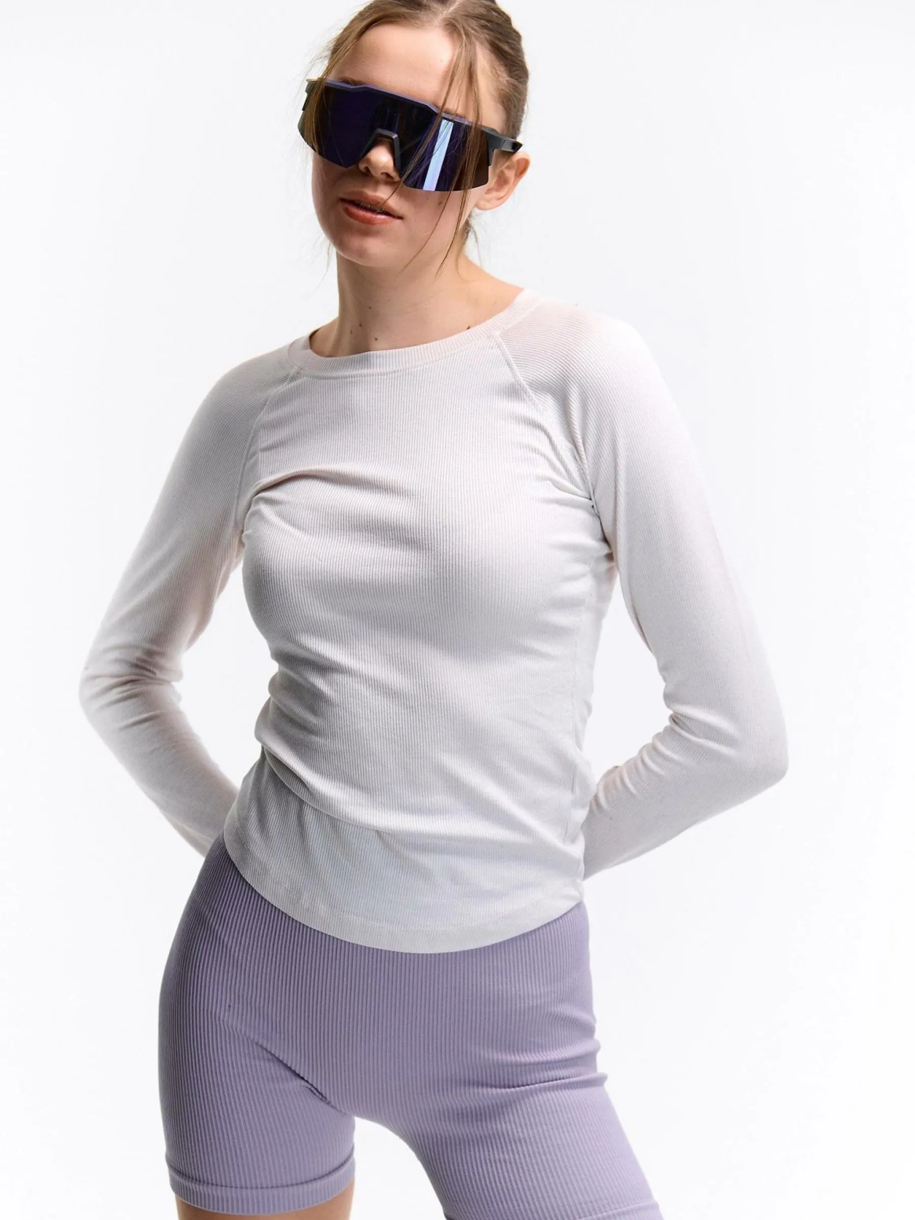 Kolor: beżowyKrój: regularTyp: koszulkaRekaw: długi rękawDługość: krótkiPattern style: pojedynczy kolor, żebrow…