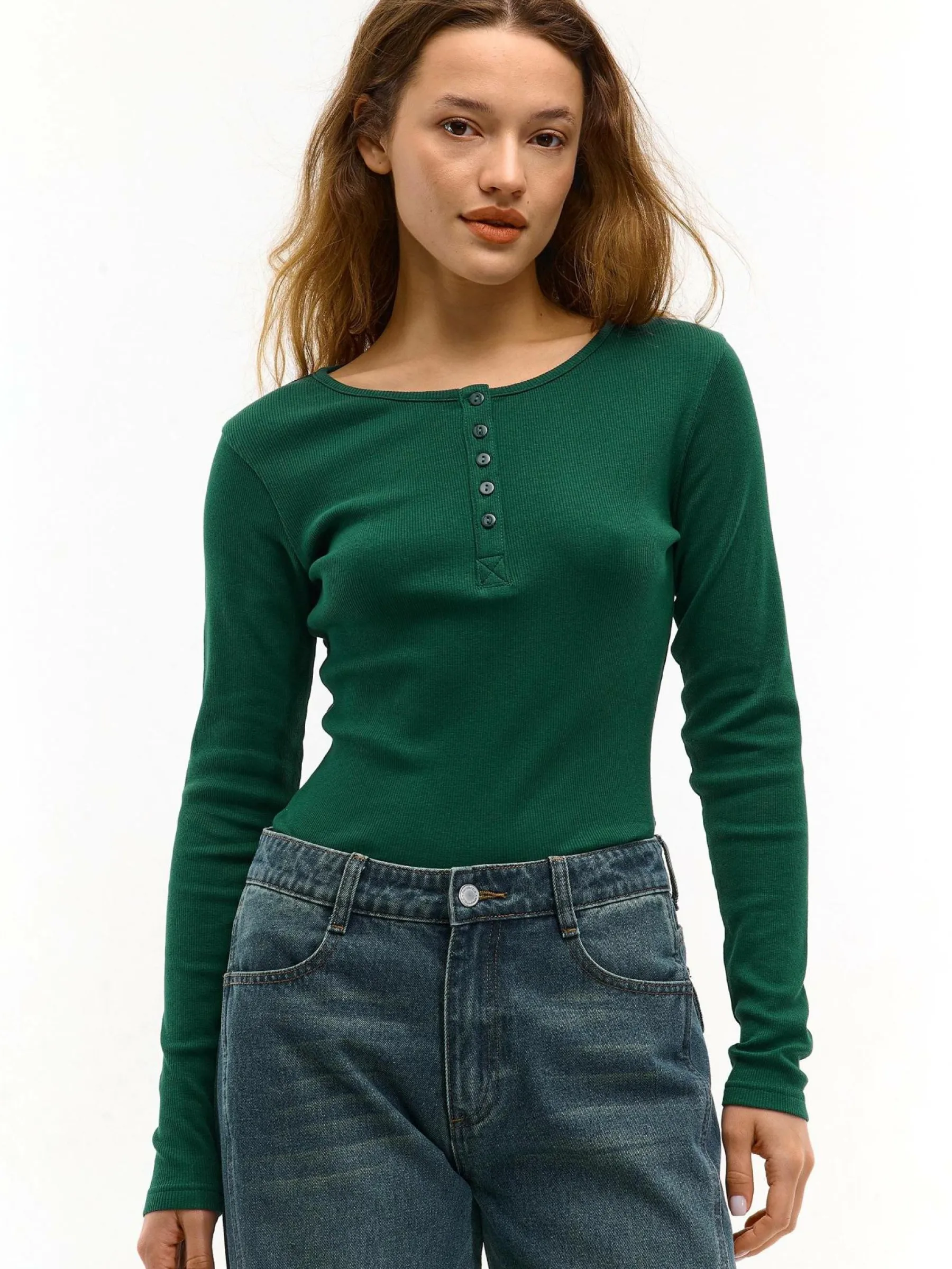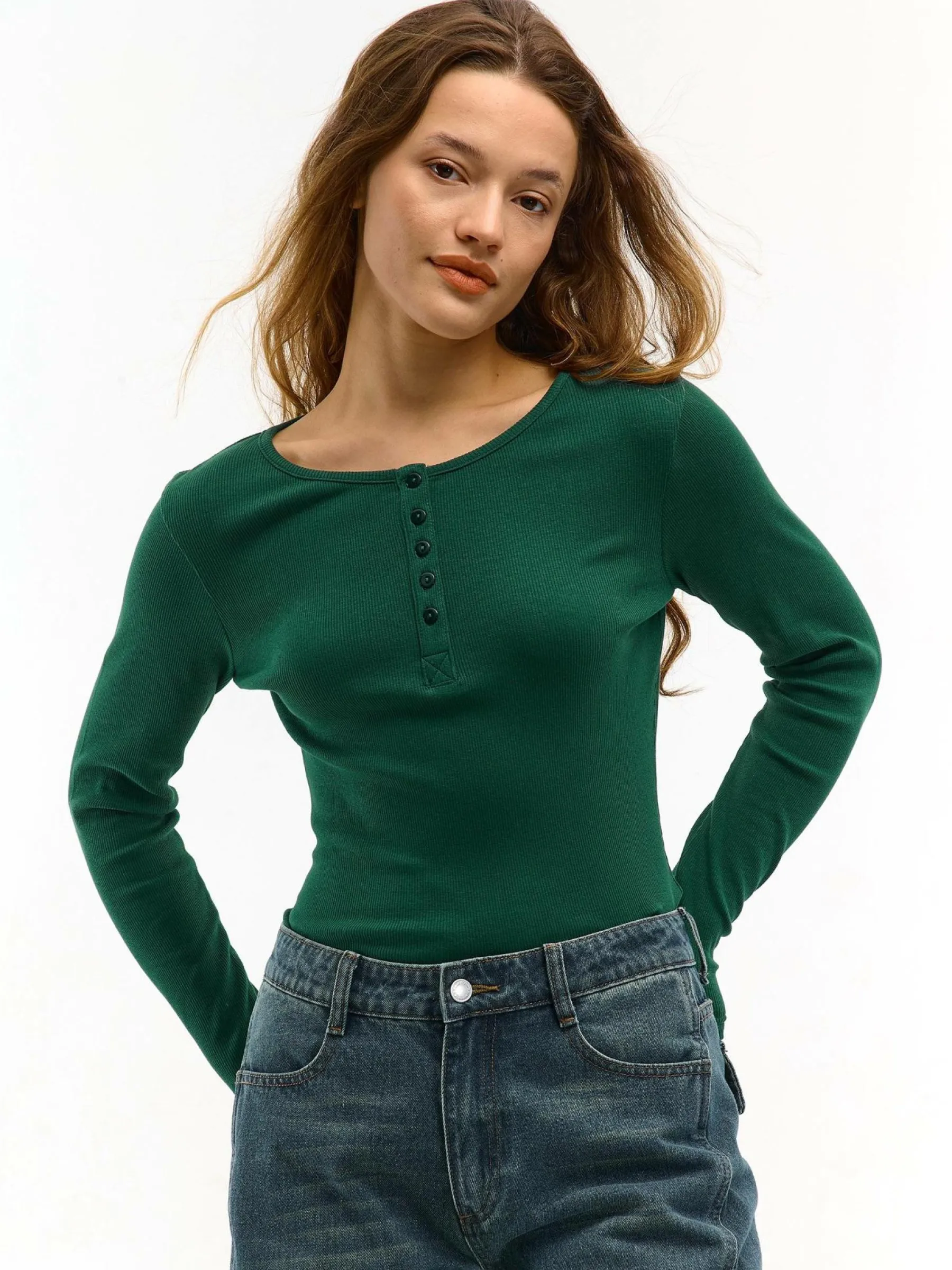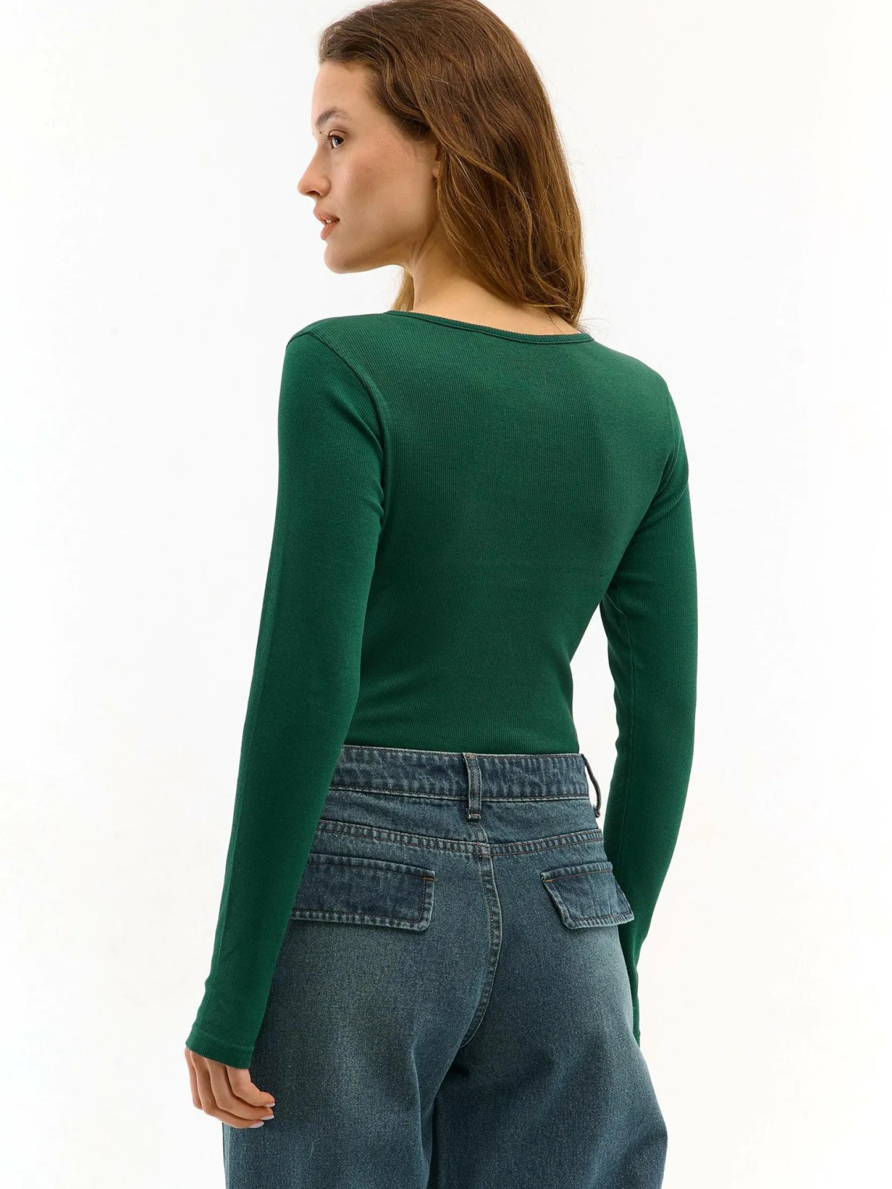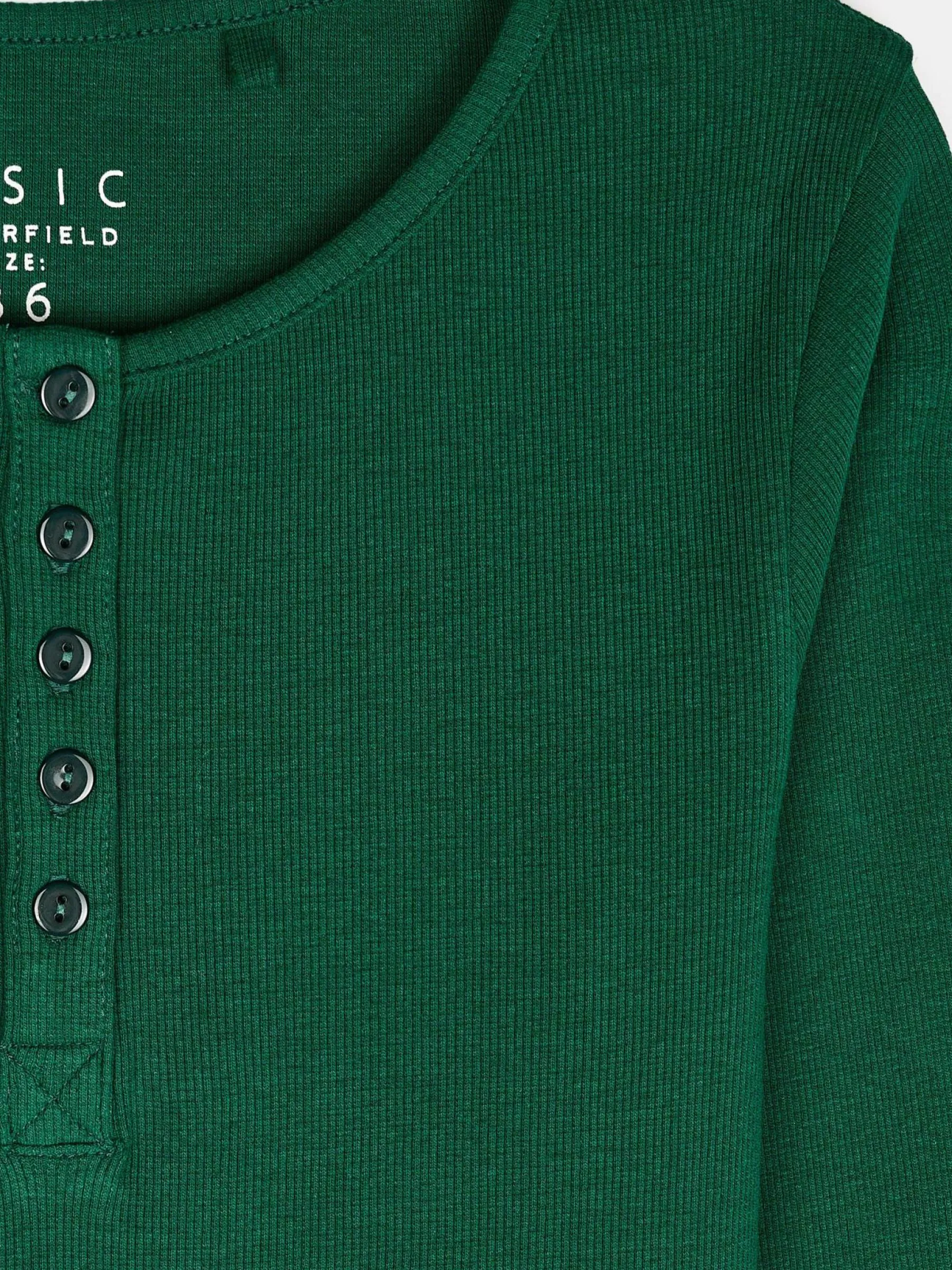 Kolor: zielonyKrój: podstawowyTyp: koszulkaRekaw: długi rękawDługość: krótkiPattern style: pojedynczy kolor, żeb…