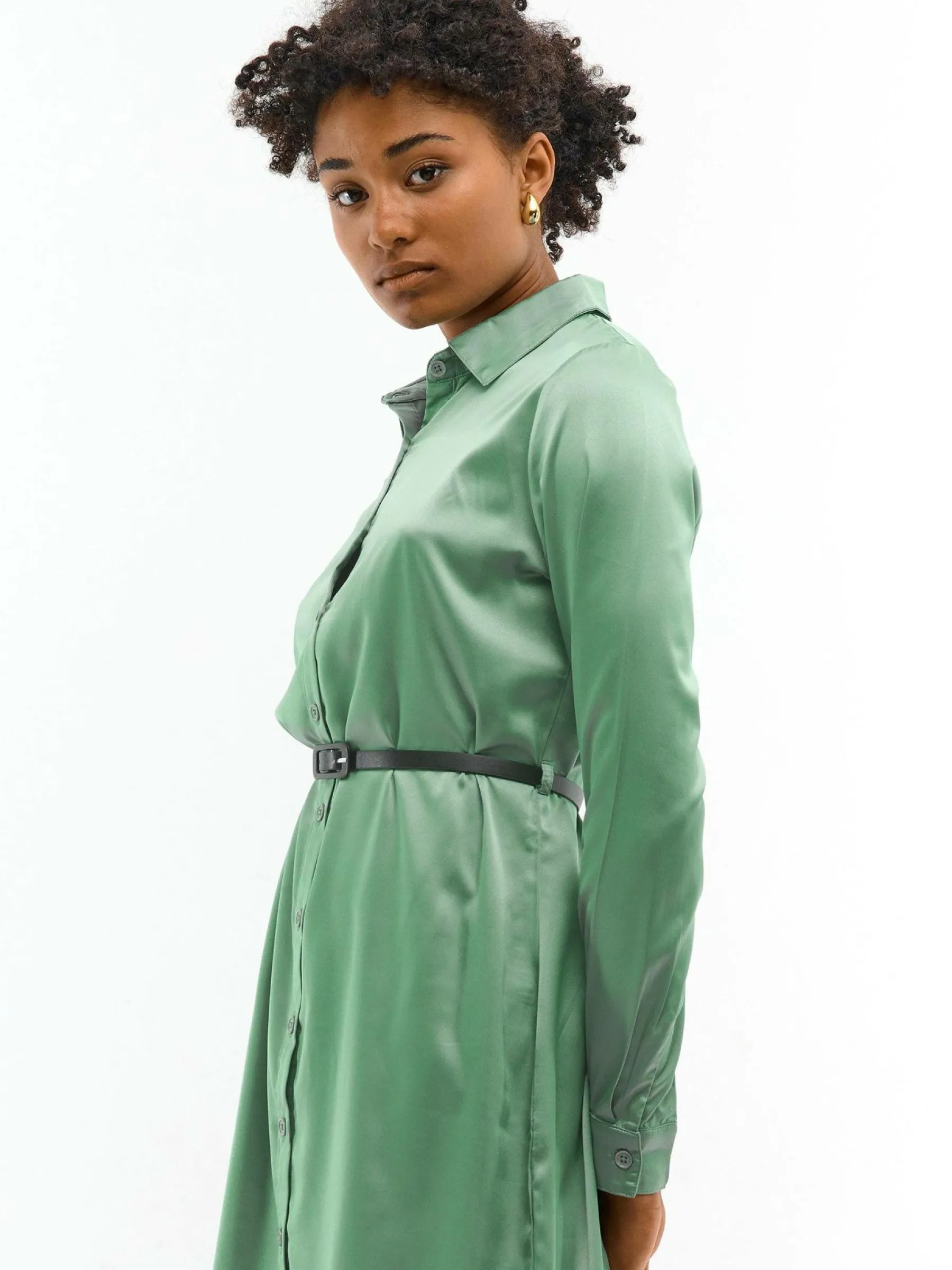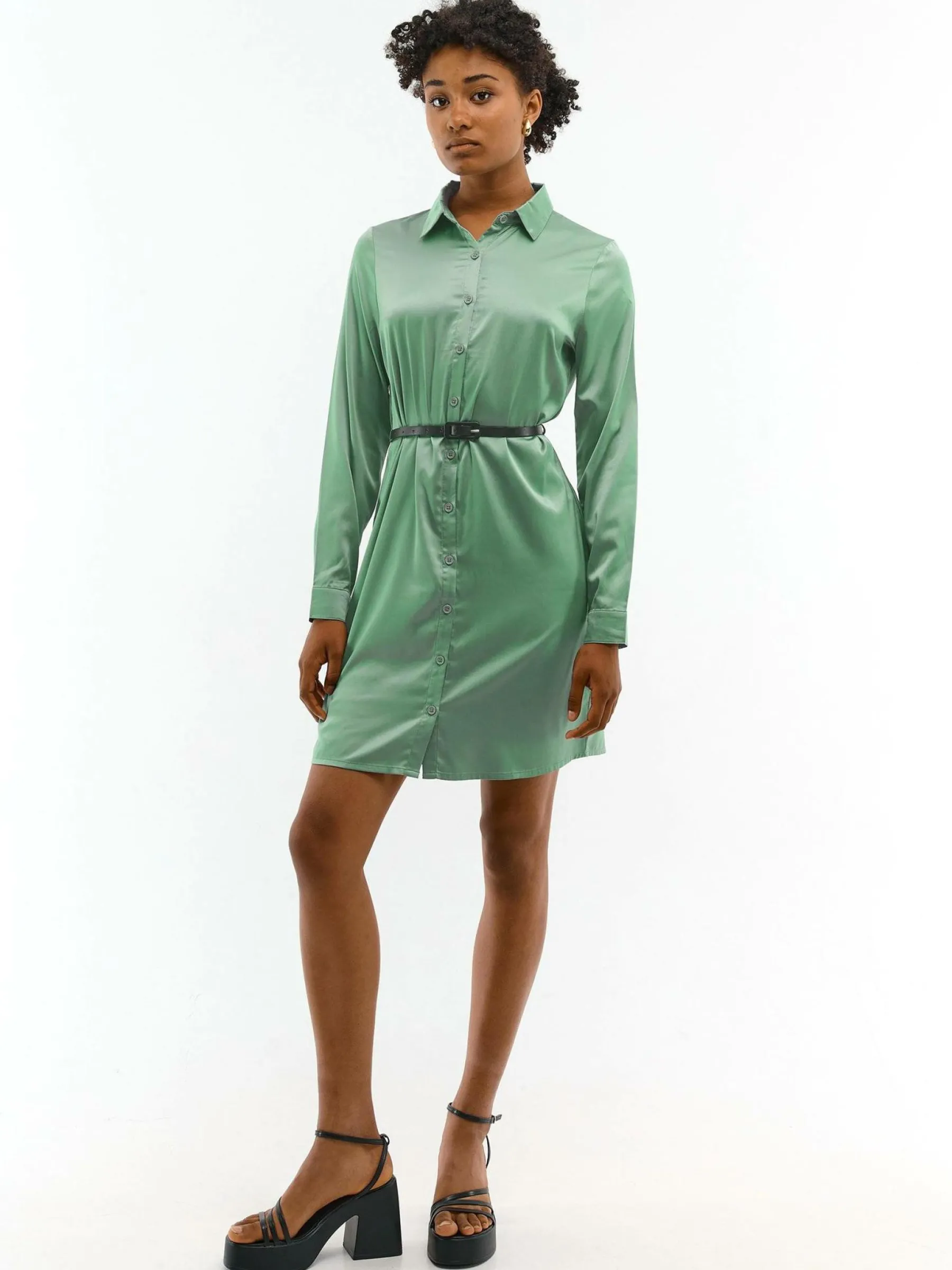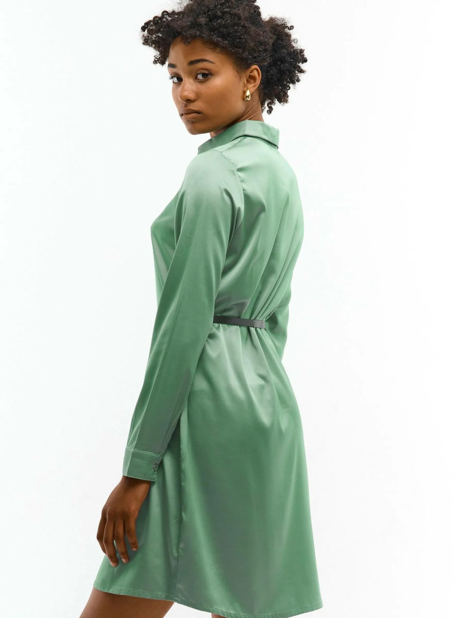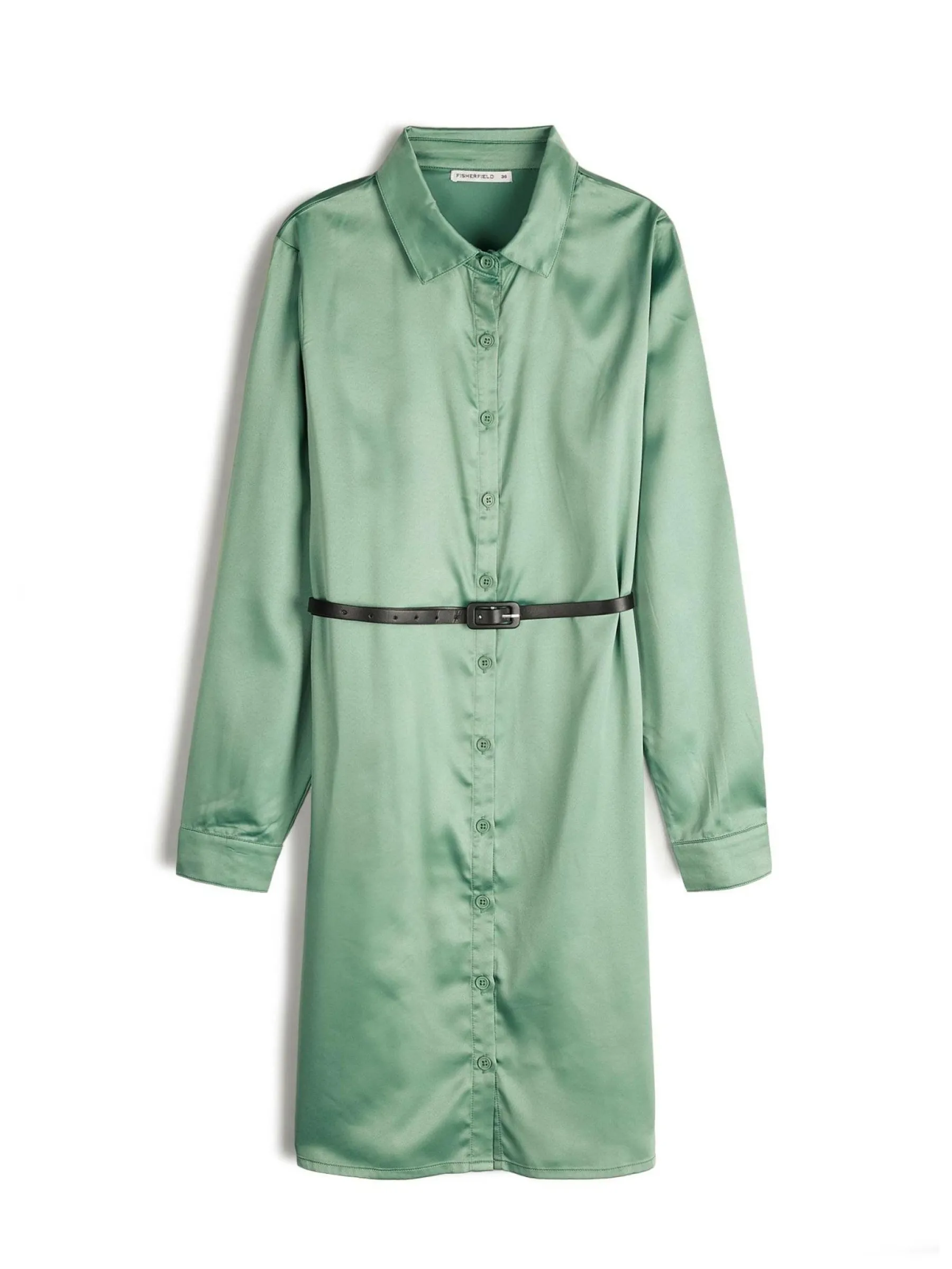 Kolor: zielonyKrój: koszuloweTyp: sukienkaRekaw: długi rękawDługość: miniPattern style: pojedynczy kolorDetal: na …