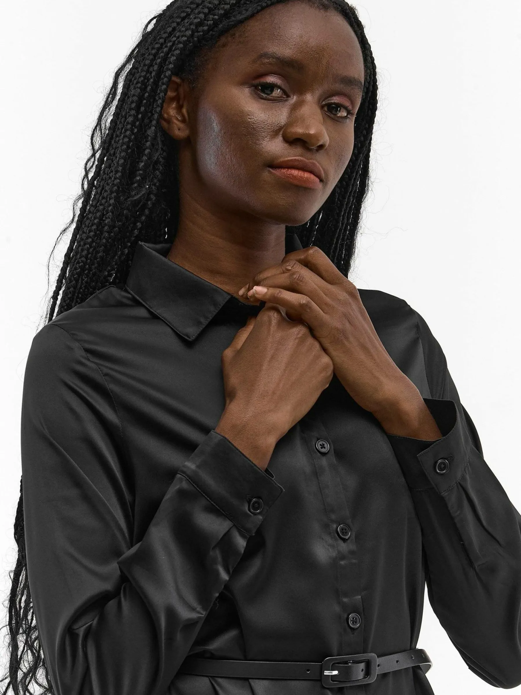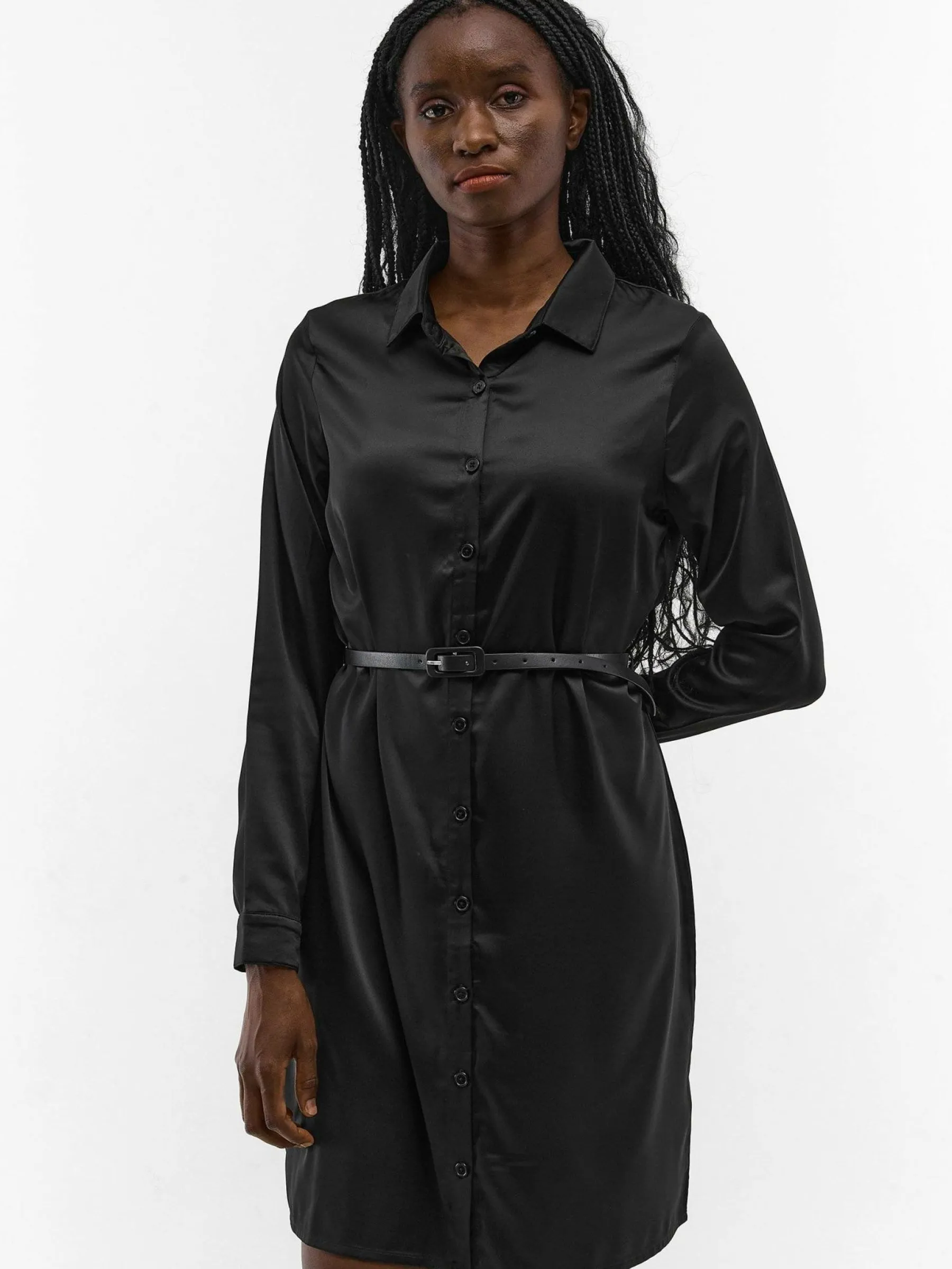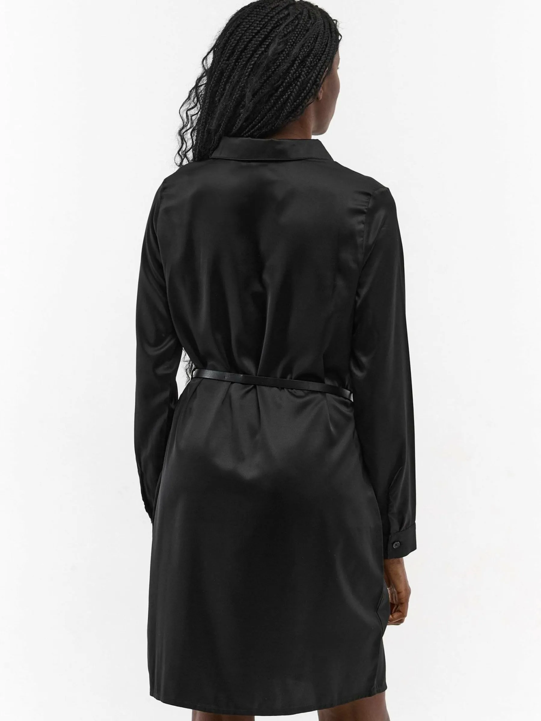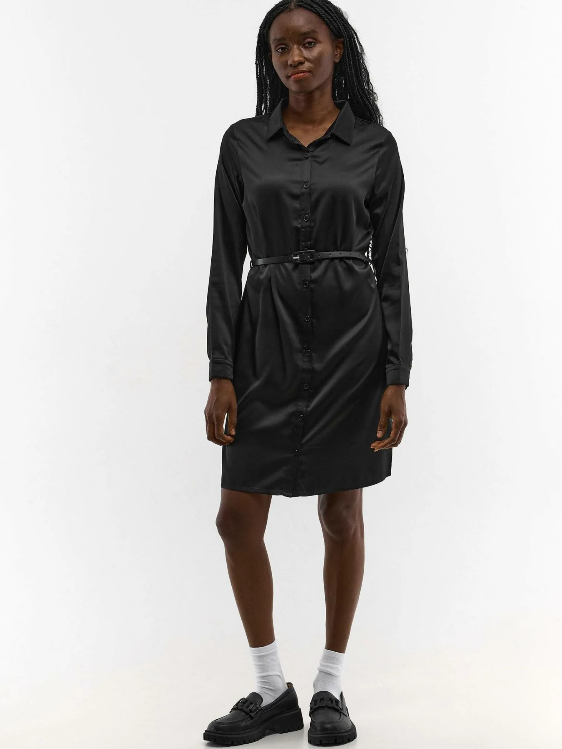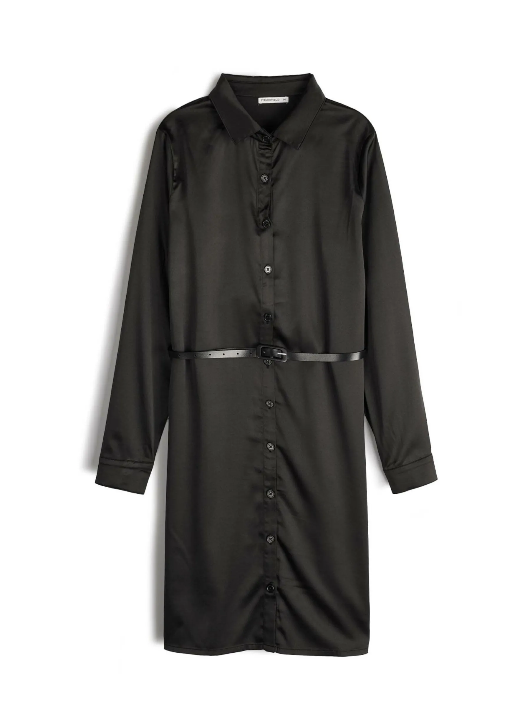 Kolor: czarnyKrój: koszuloweTyp: sukienkaRekaw: długi rękawDługość: miniPattern style: pojedynczy kolorDetal: na g…
