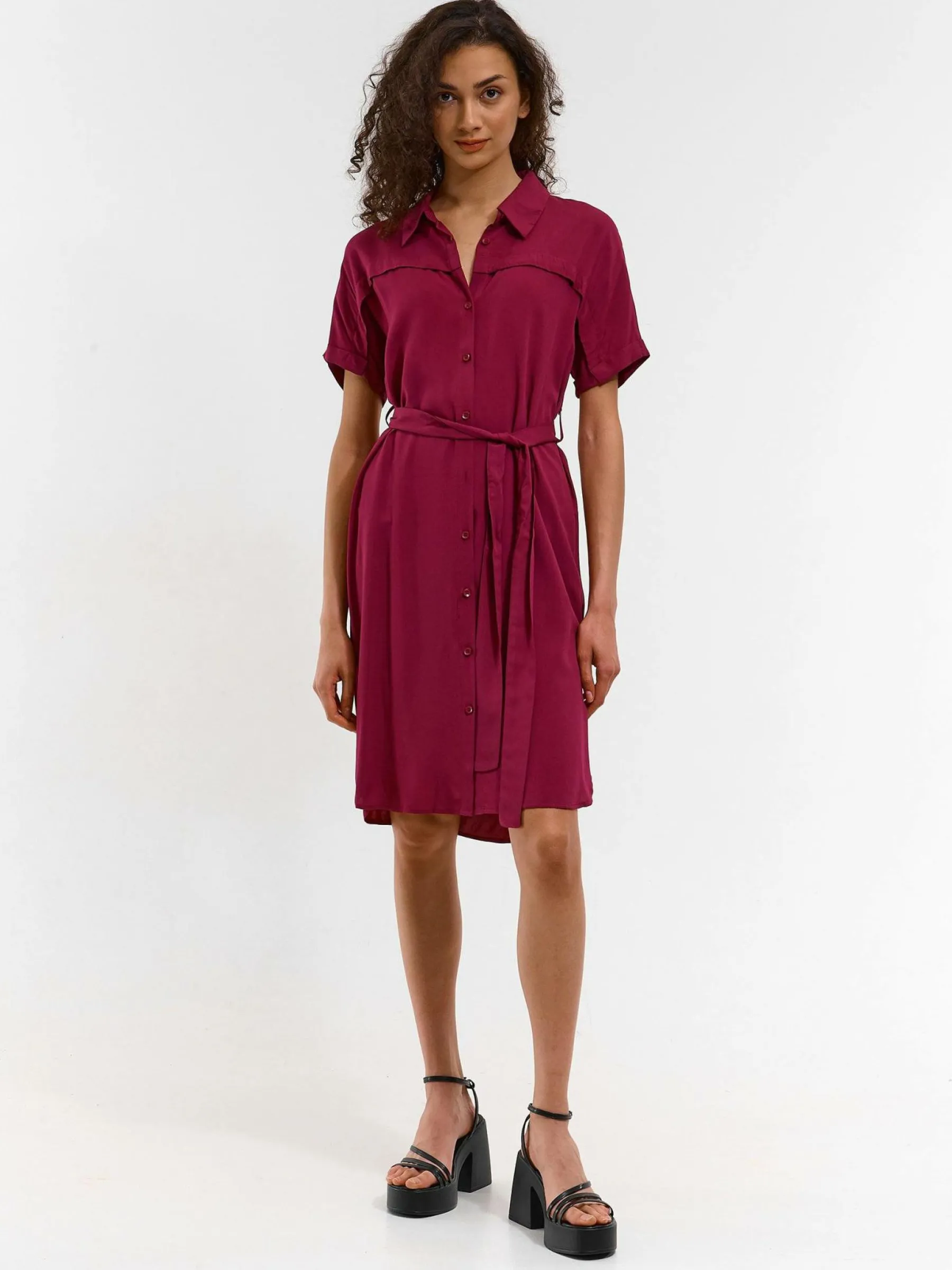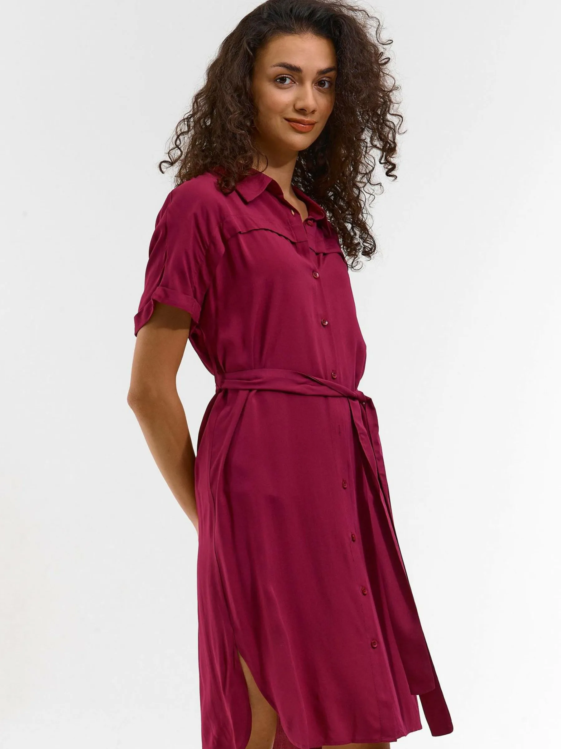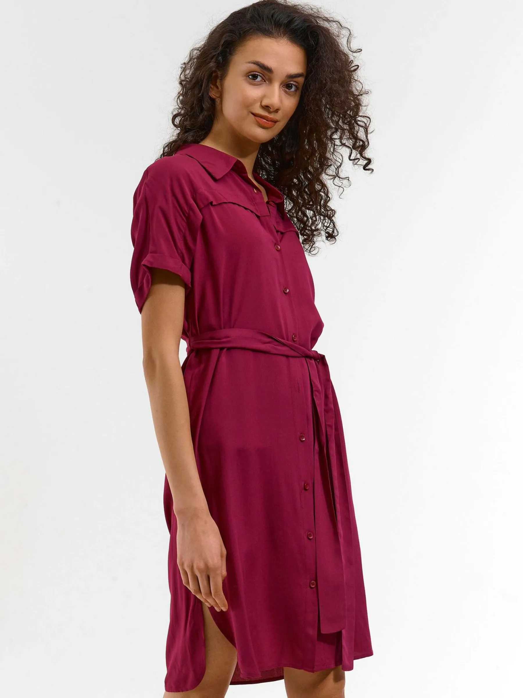 Zdjęcia z modelką mogą nie odpowiadać rzeczywistemu kolorowi produktu.Kolor: burgundyKrój: koszuloweTyp: sukienkaRe…