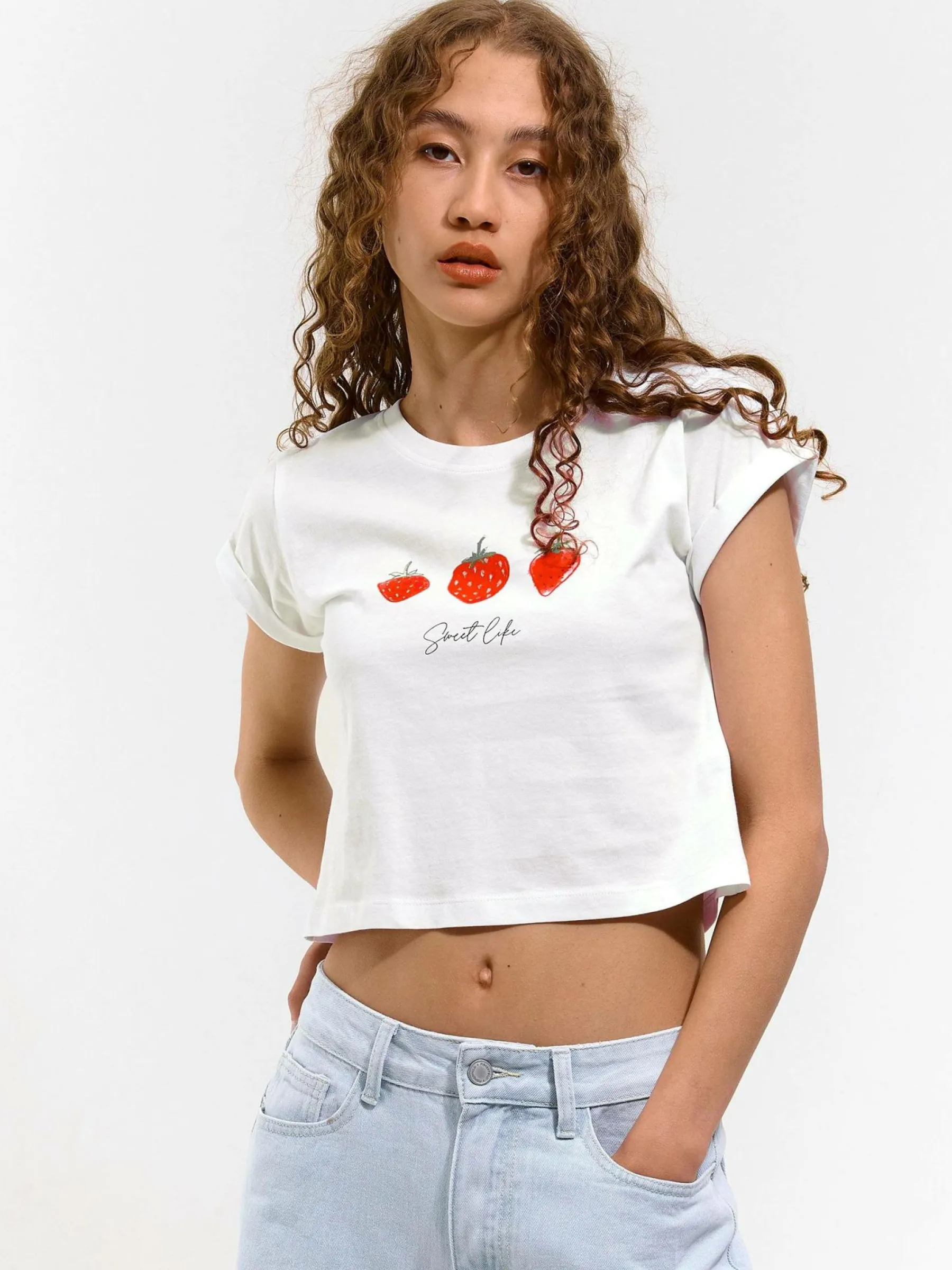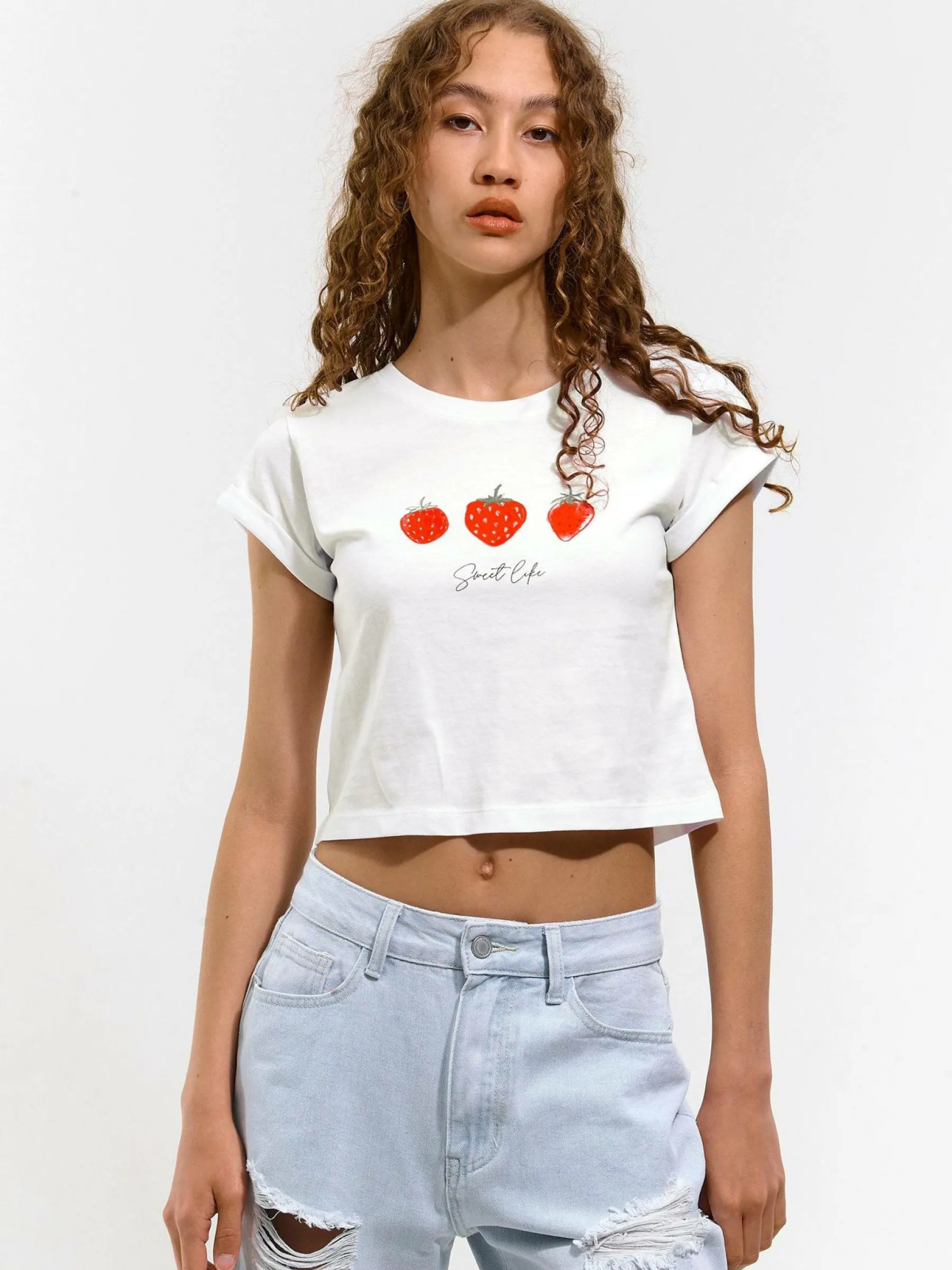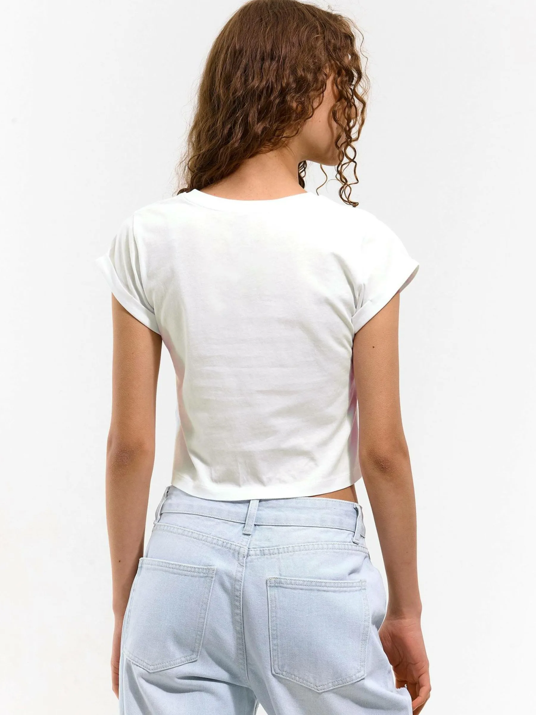 Kolor: białyKrój: regularTyp: koszulkaRekaw: krótki rękawDługość: krótkiPattern style: z nadrukiemDetal: nad gł…