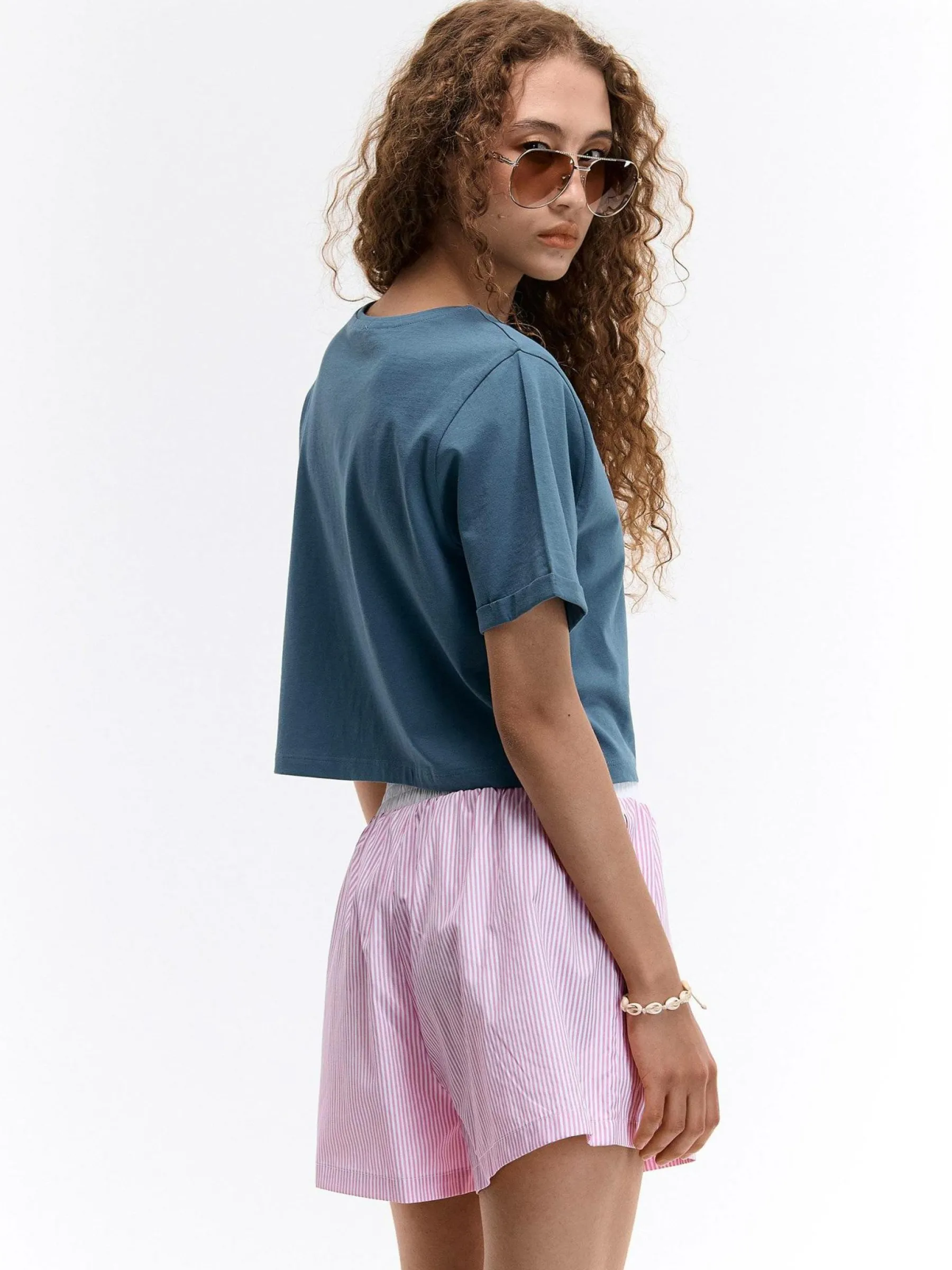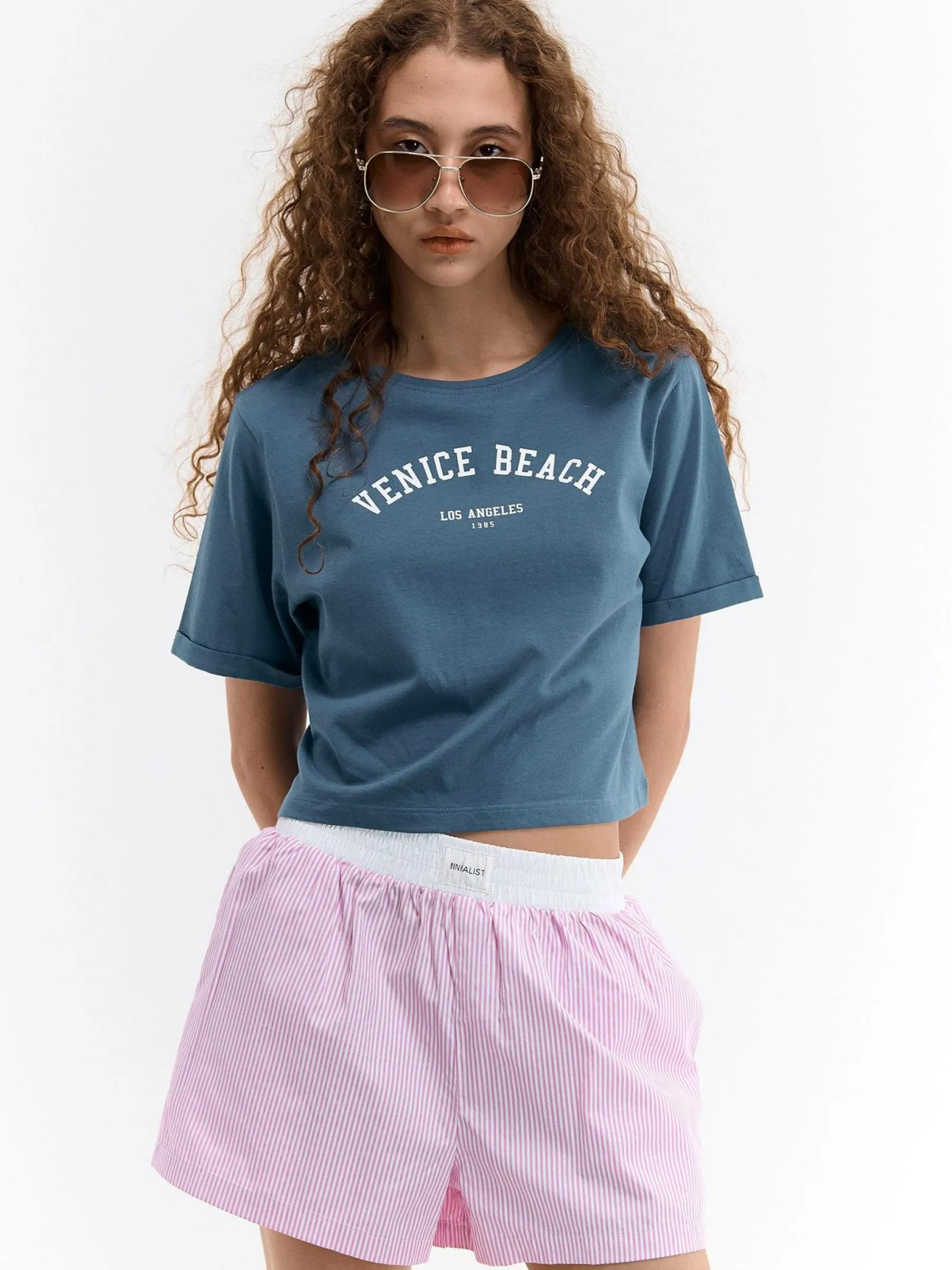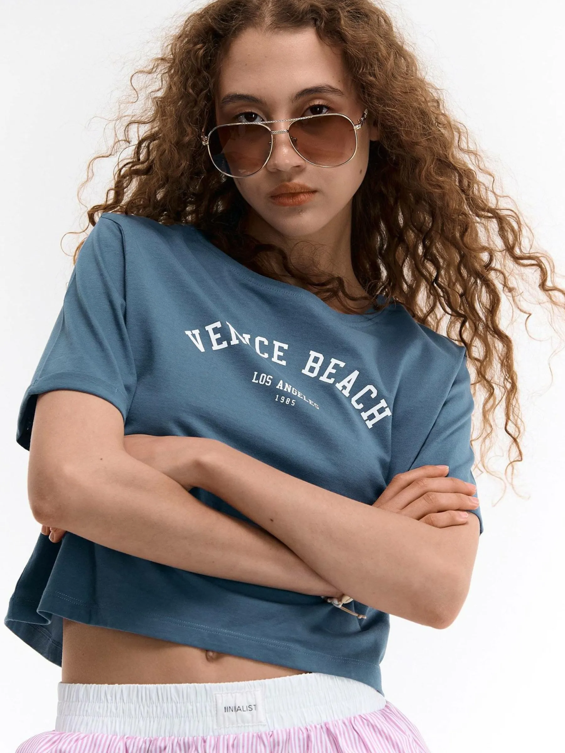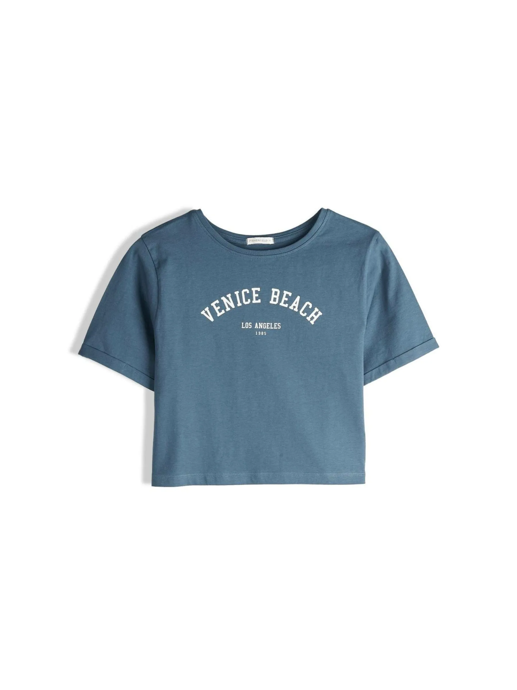 Kolor: niebieskiKrój: regularTyp: koszulkaRekaw: krótki rękawDługość: krótki topPattern style: z nadrukiemDetal: …