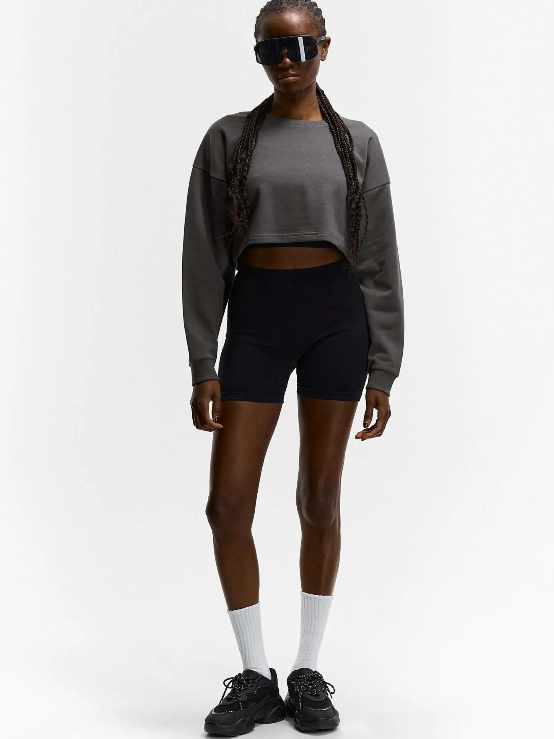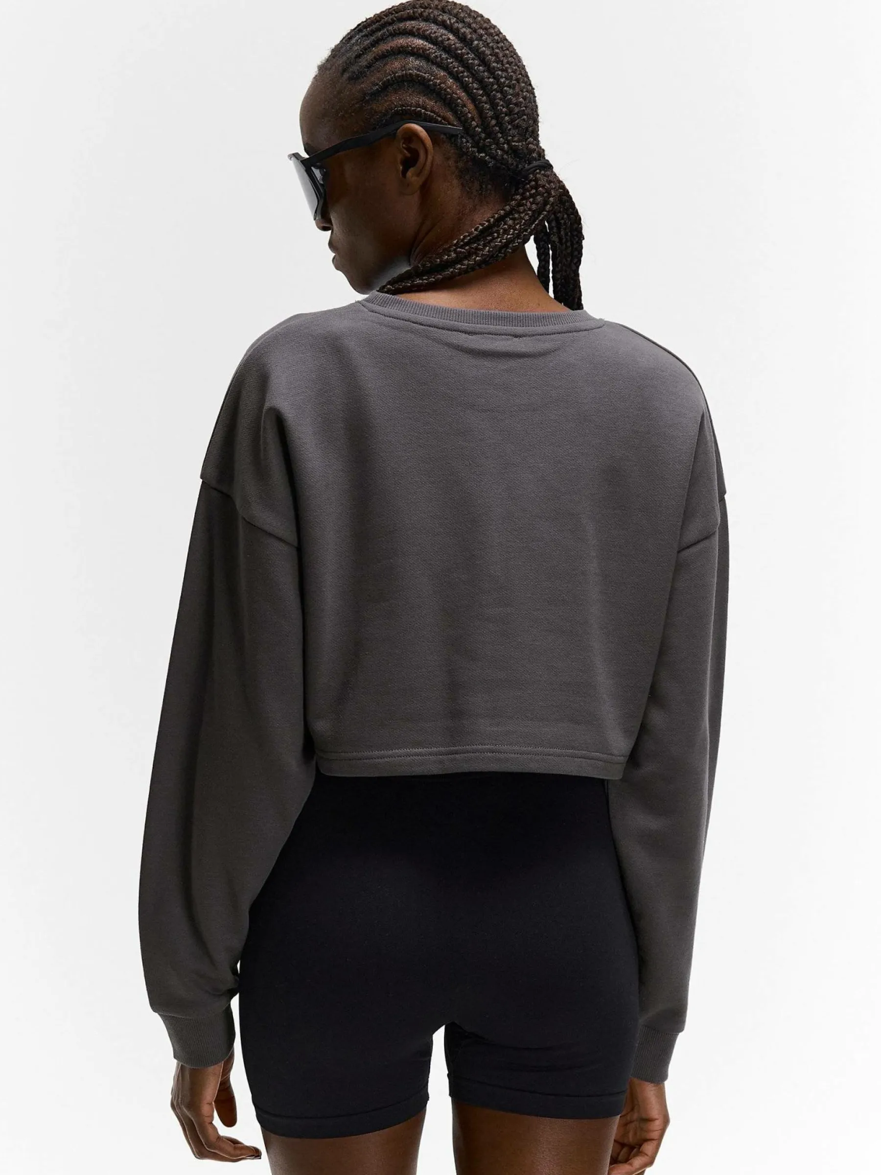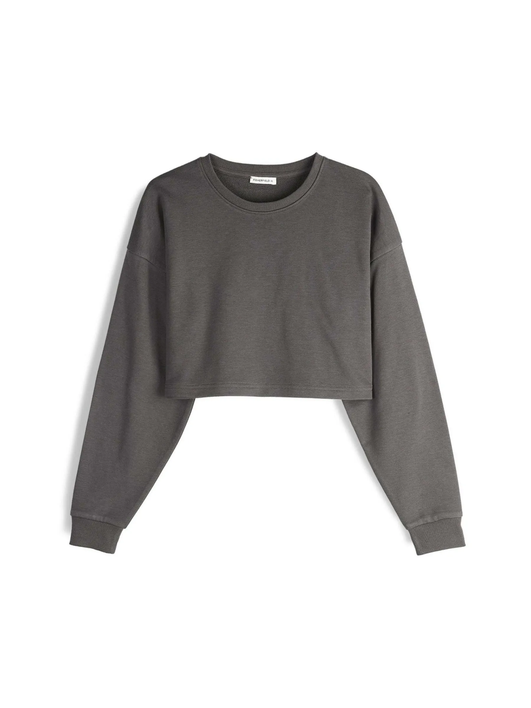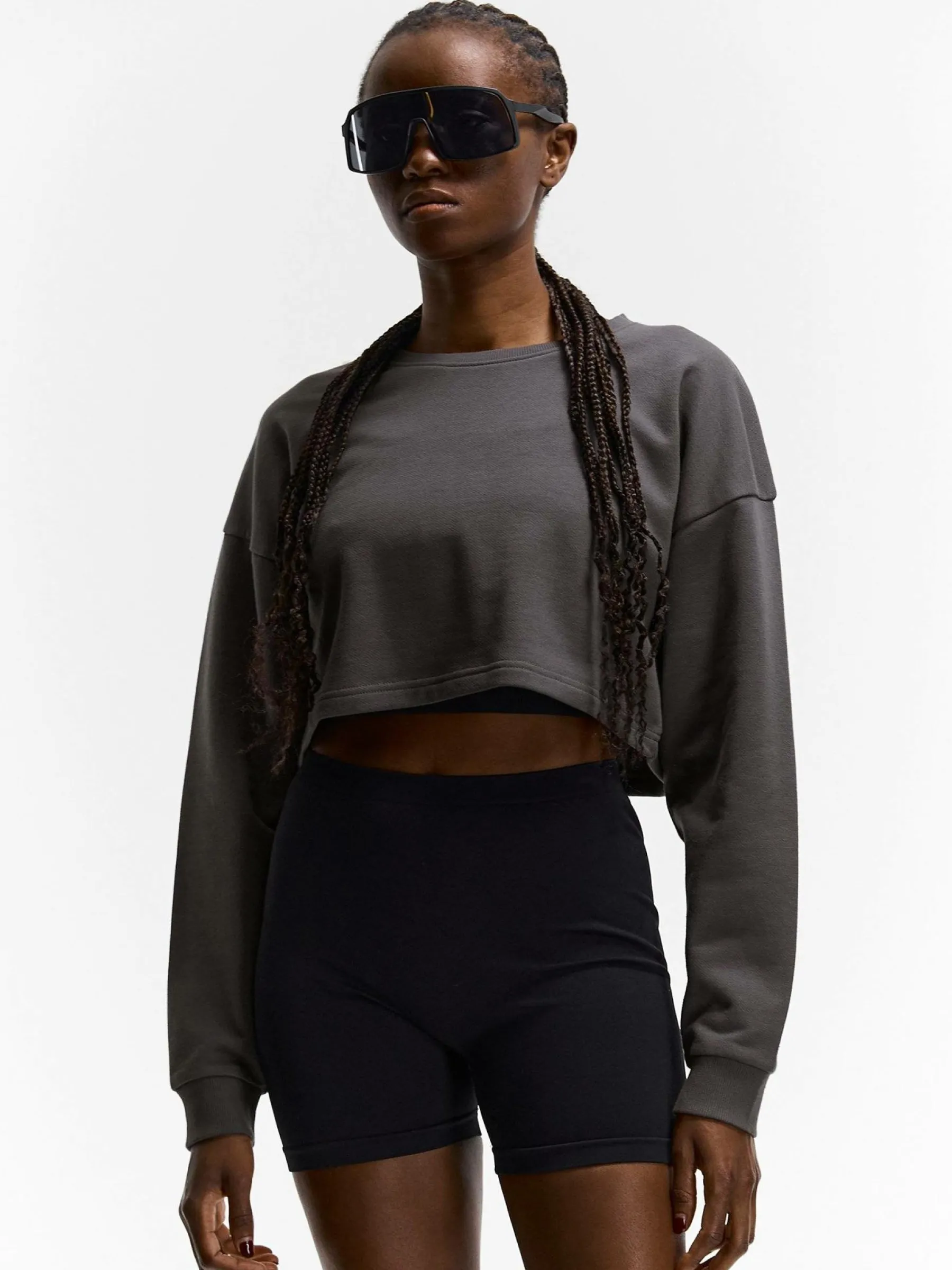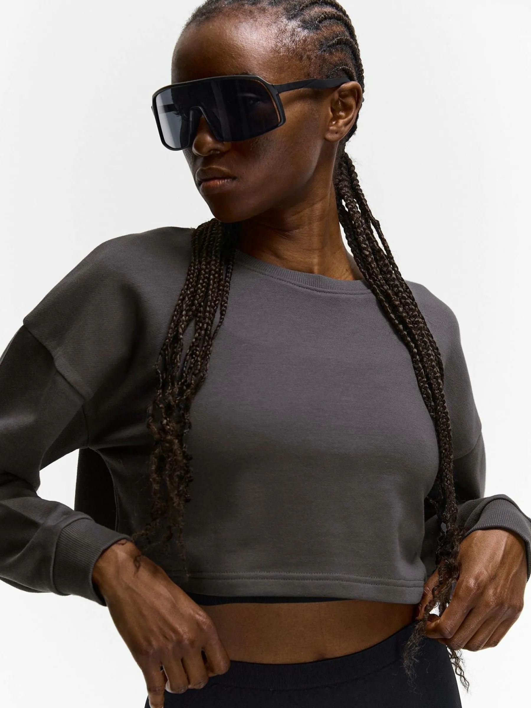Kolor: szaryKrój: regularTyp: bluzaRekaw: długi rękawDługość: krótki topPattern style: pojedynczy kolorDetal: nad…