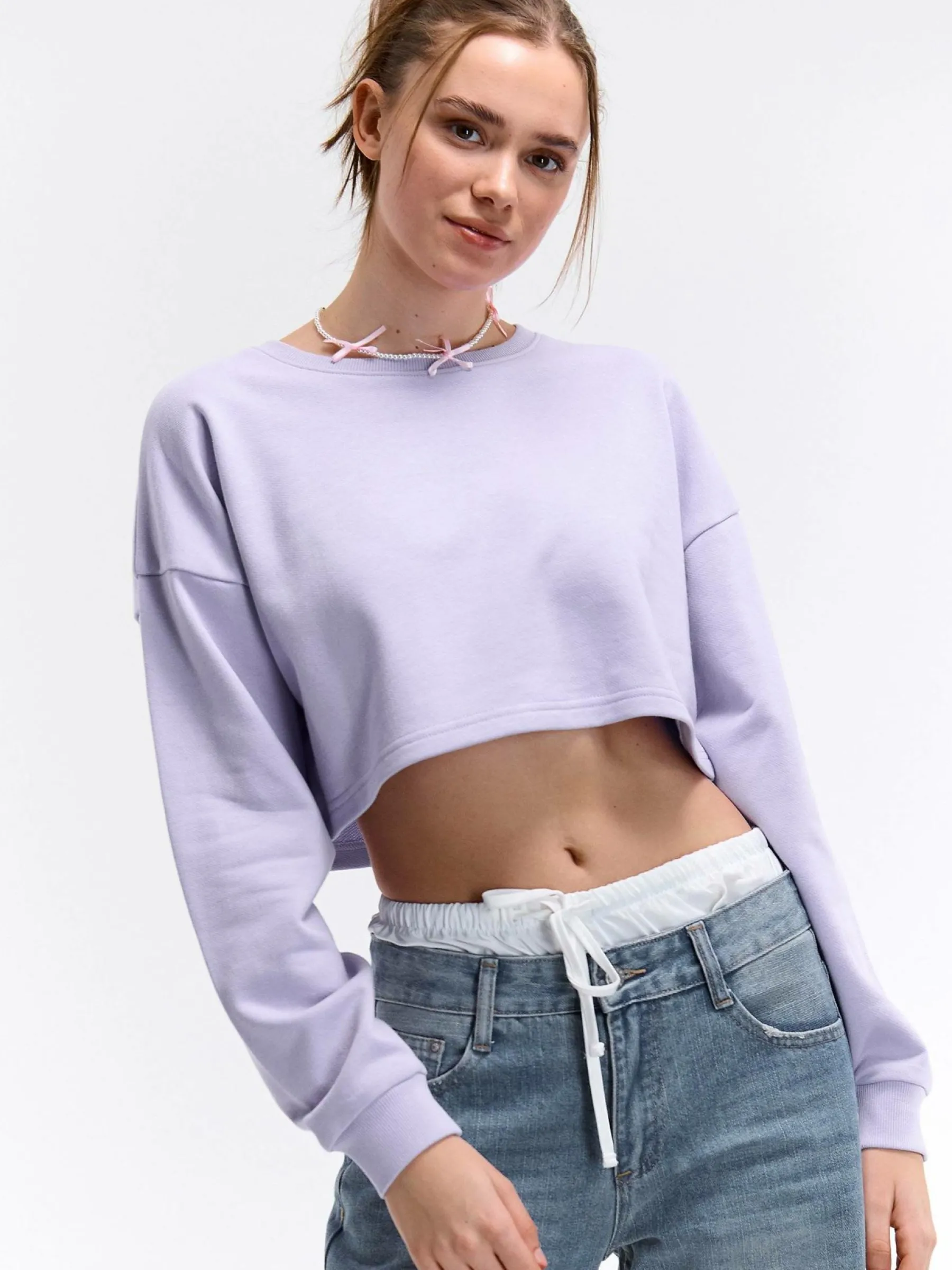 Kolor: purpurowyKrój: regularTyp: bluzaRekaw: długi rękawDługość: krótki topPattern style: pojedynczy kolorDetal:…
