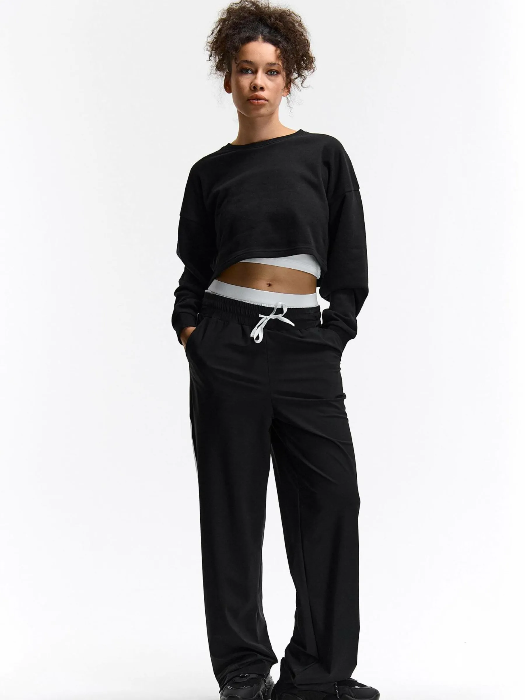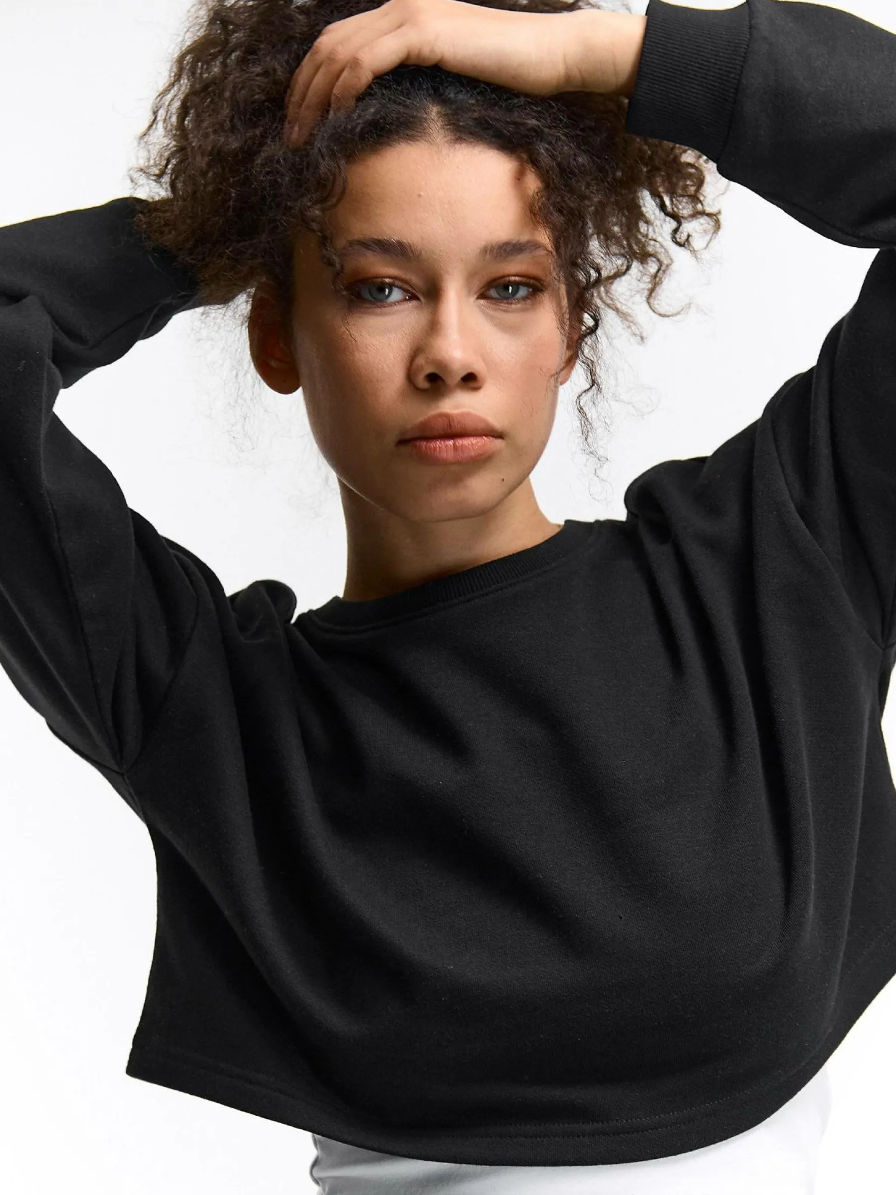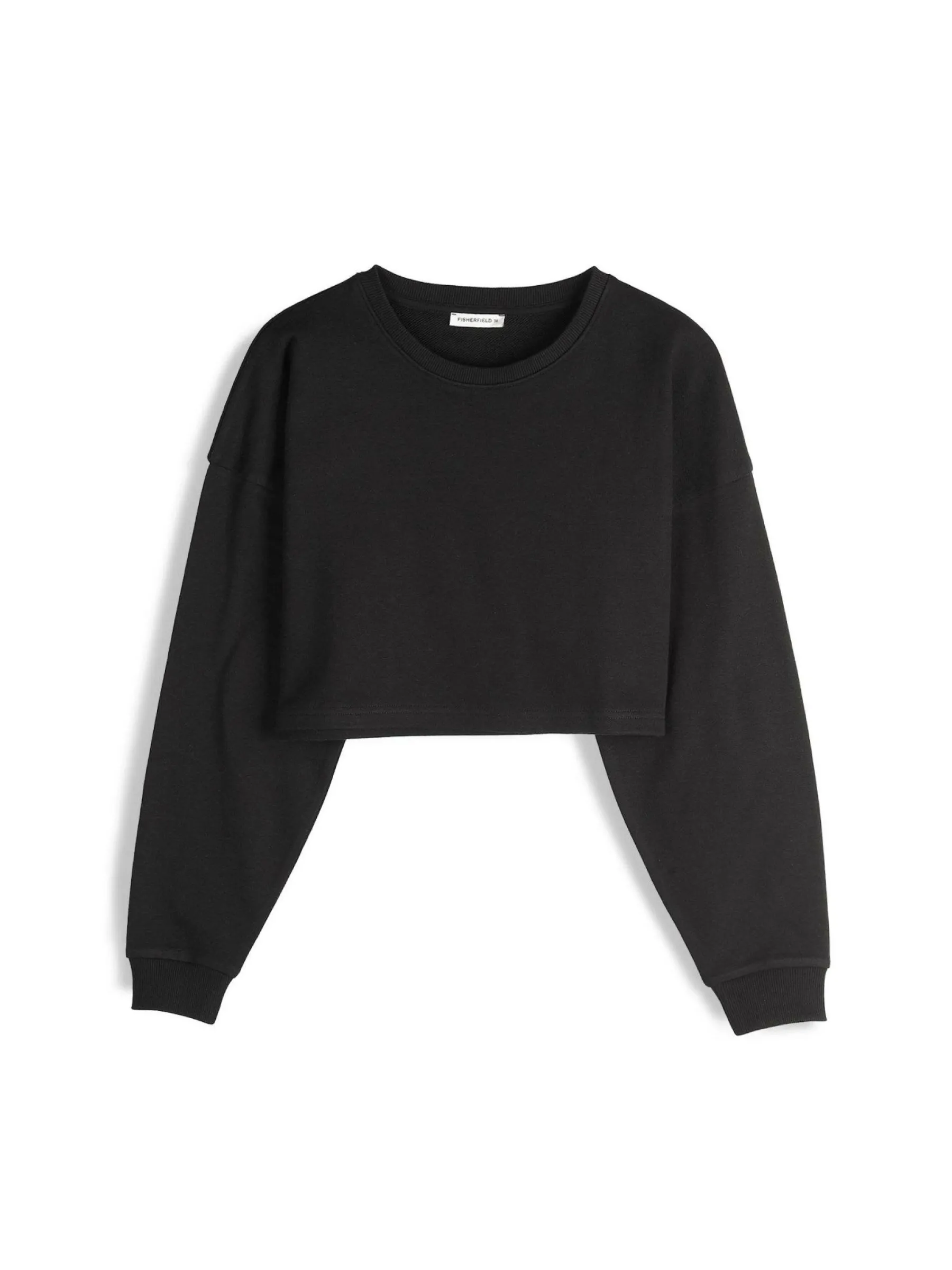 Kolor: czarnyKrój: regularTyp: bluzaRekaw: długi rękawDługość: krótki topPattern style: pojedynczy kolorDetal: na…