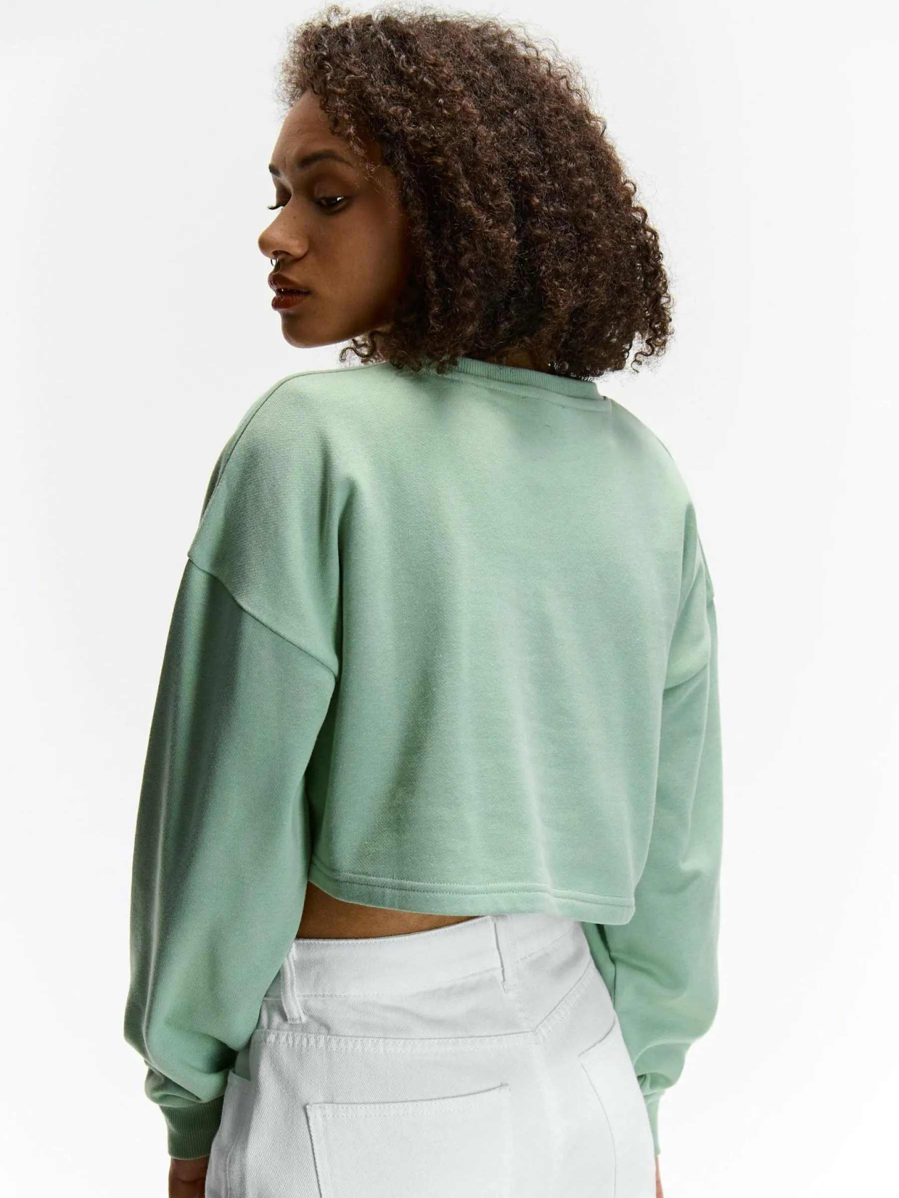 Kolor: zielonyKrój: regularTyp: bluzaRekaw: długi rękawDługość: krótki topPattern style: pojedynczy kolorDetal: n…