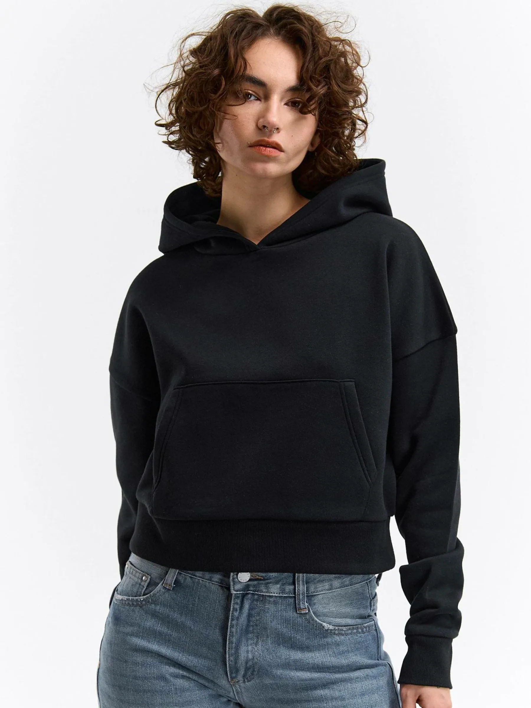 Kolor: czarnyKrój: regularTyp: bluzaRekaw: długi rękawDługość: krótki topPattern style: pojedynczy kolorDetal: na…