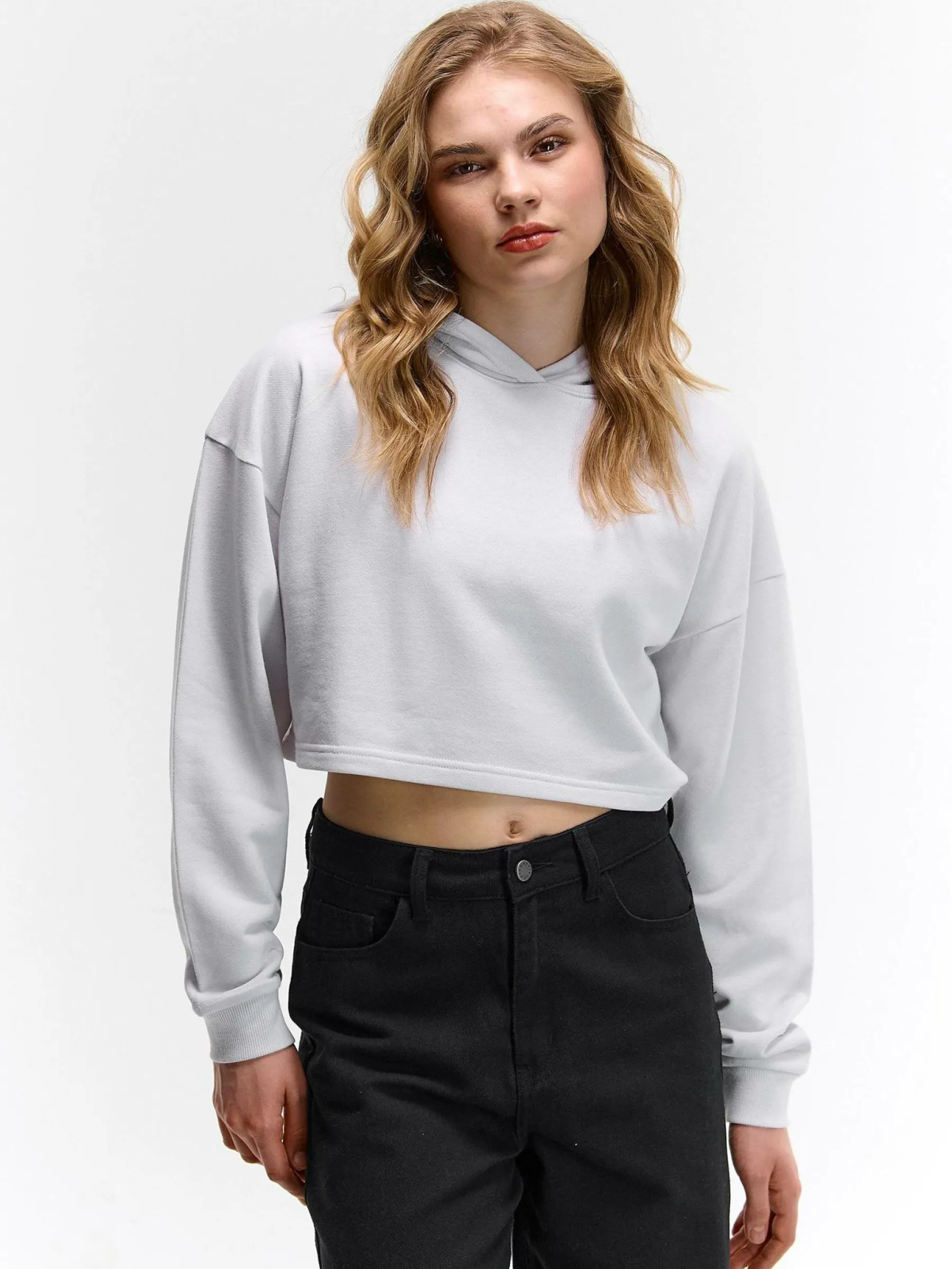Kolor: szaryKrój: regularTyp: bluzaRekaw: długi rękawDługość: krótki topPattern style: pojedynczy kolorDetal: nad…