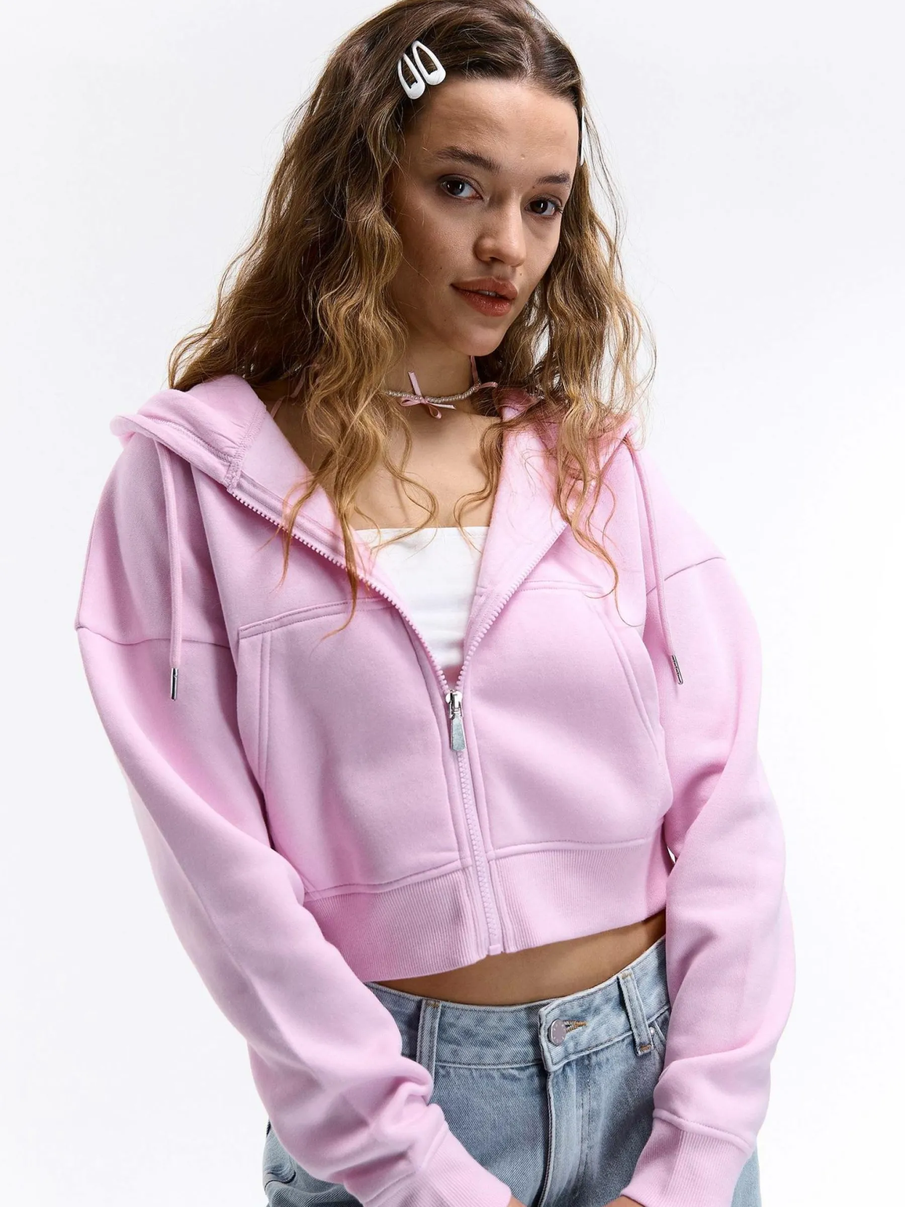 Kolor: różowyKrój: podstawowyTyp: bluzaRekaw: długi rękawDługość: krótkiPattern style: pojedynczy kolorDetal: n…