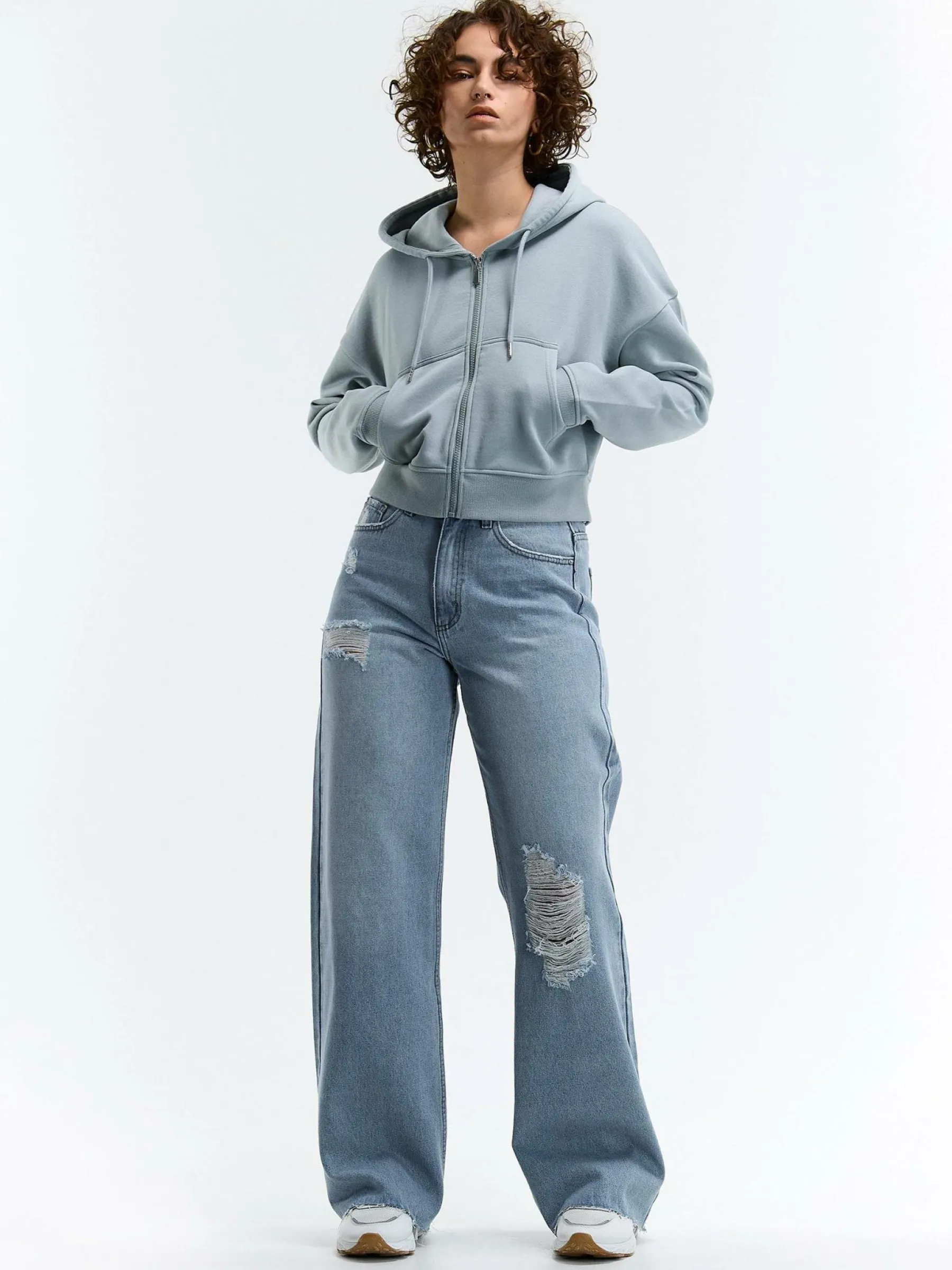 Kolor: niebieskiKrój: podstawowyTyp: bluzaRekaw: długi rękawDługość: krótkiPattern style: pojedynczy kolorDetal: …