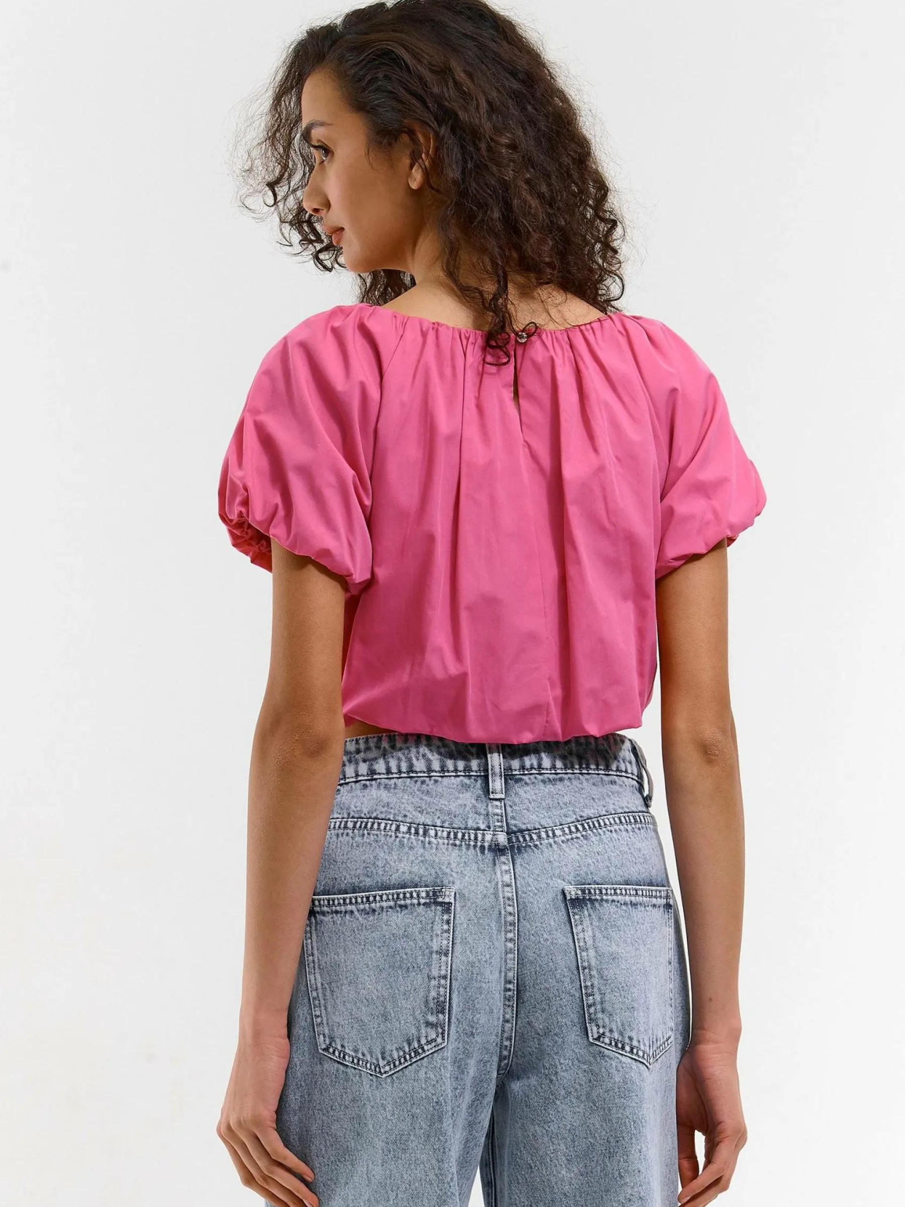 Zdjęcia z modelką mogą nie odpowiadać rzeczywistemu kolorowi produktu.Kolor: różowyKrój: z marszczeniemTyp: bluzk…