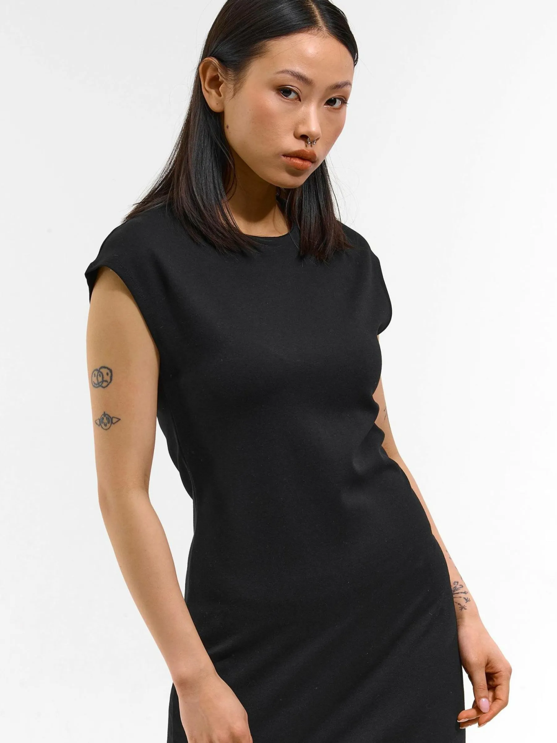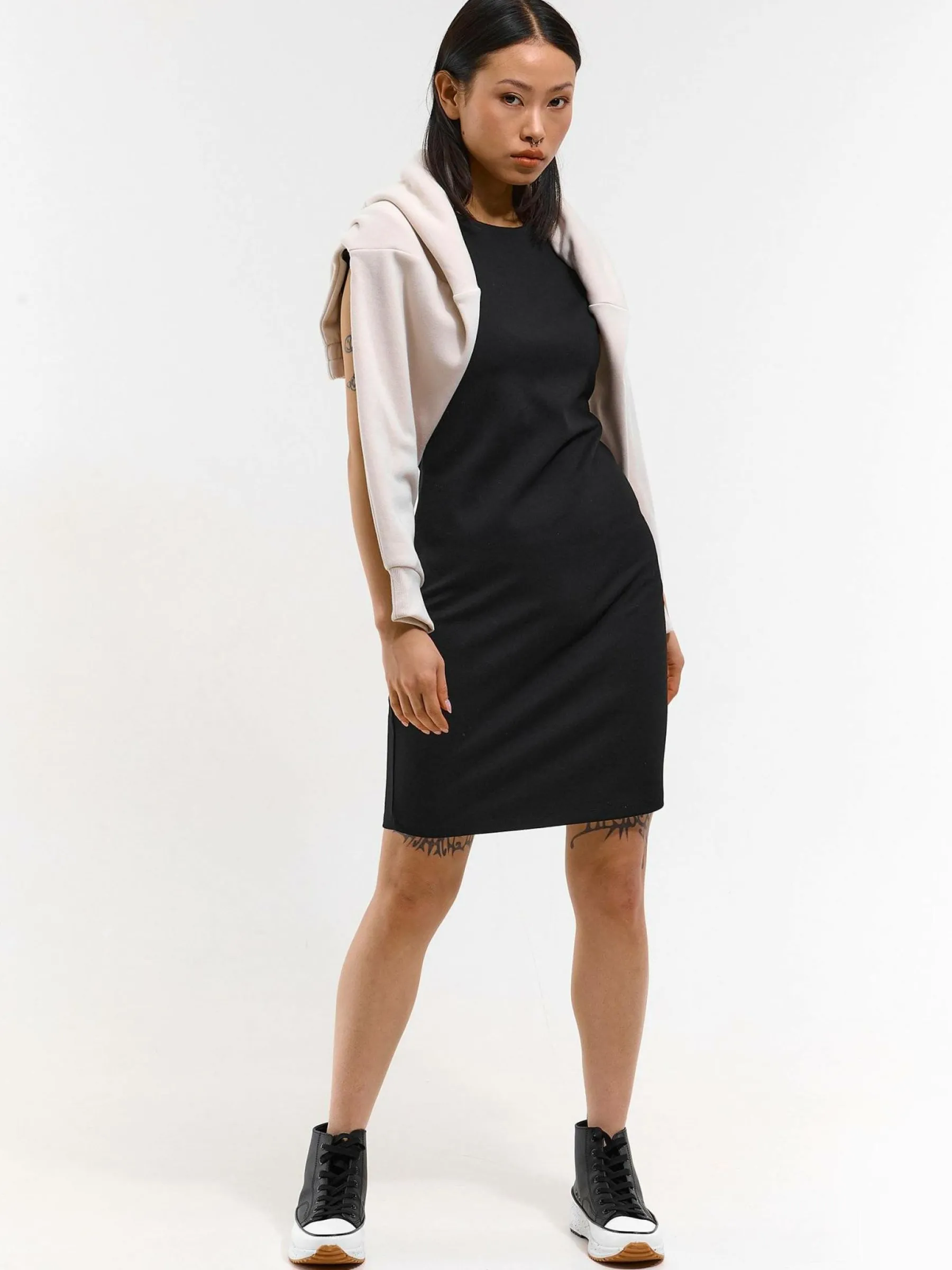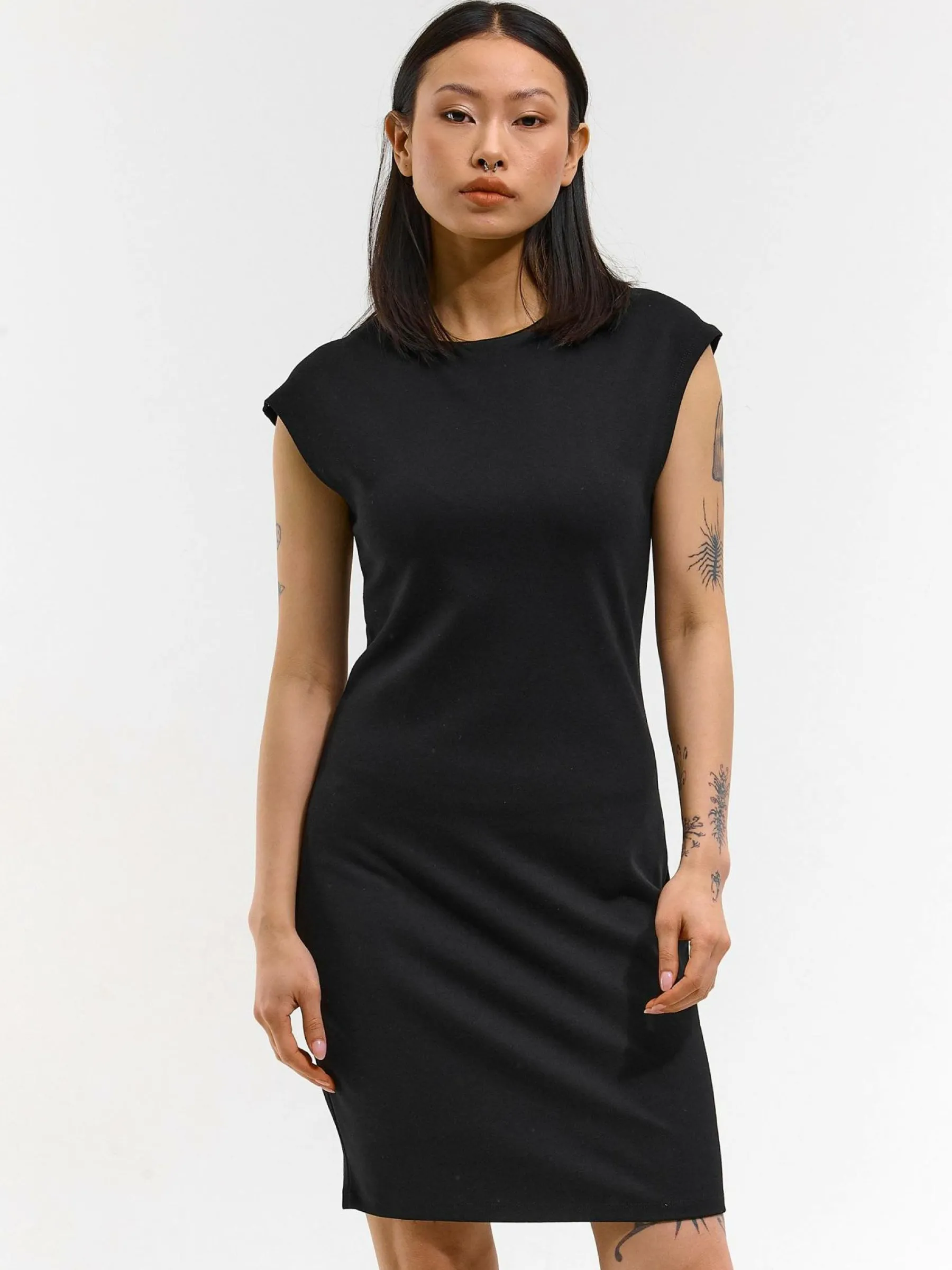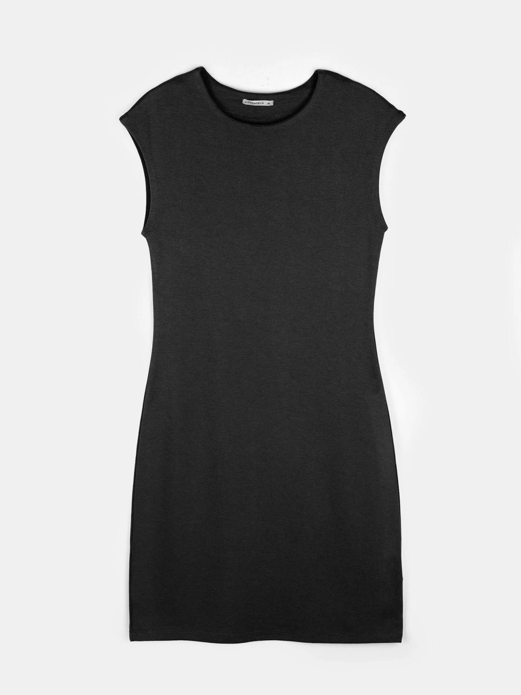 Kolor: czarnyKrój: ołówkoweTyp: sukienkaRekaw: bez rękawówDługość: miniPattern style: pojedynczy kolorDetal: nad…