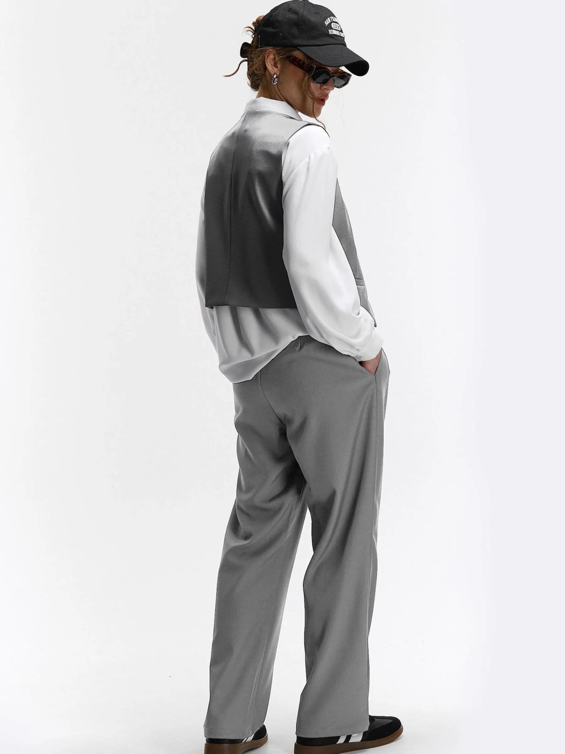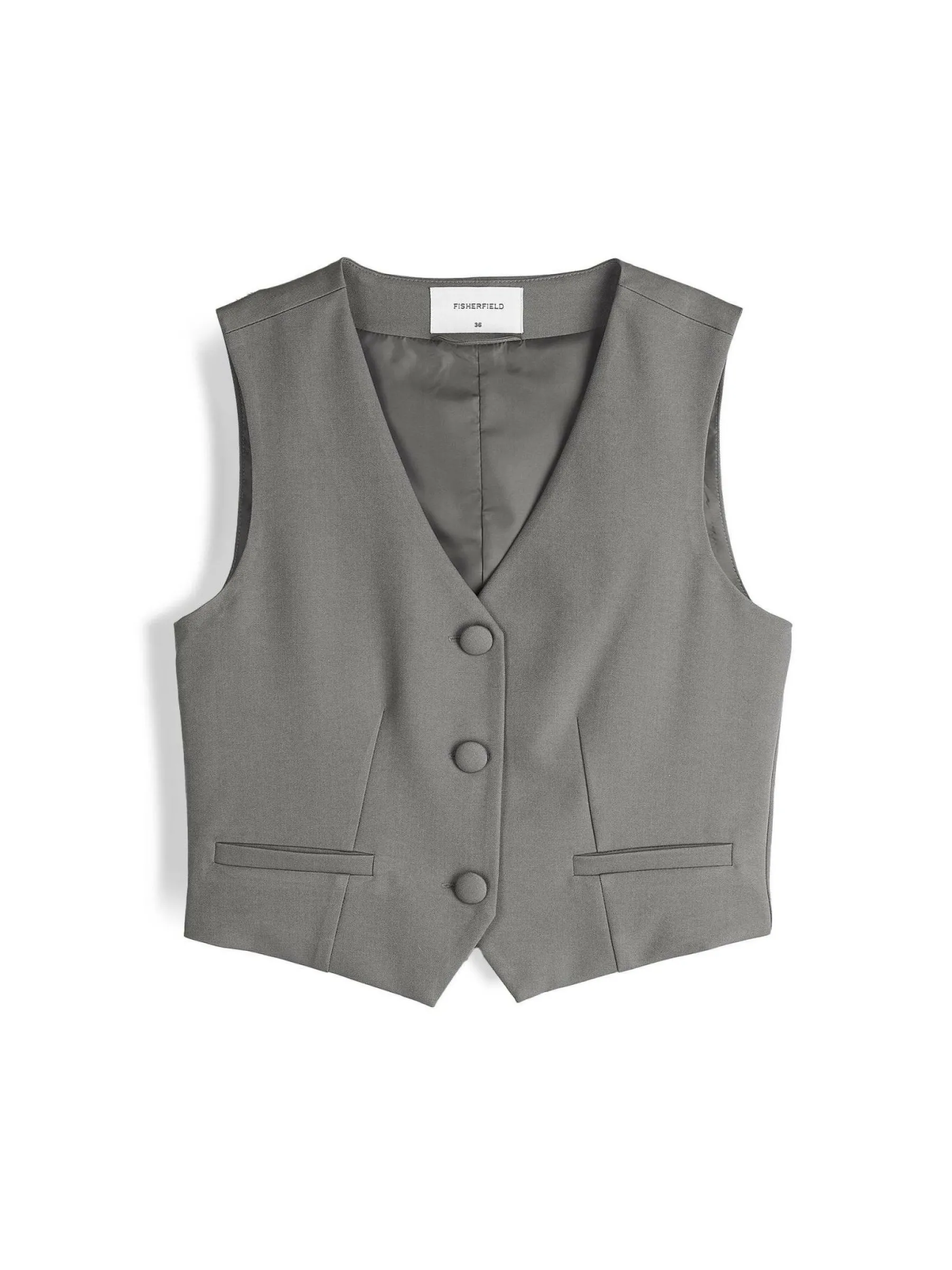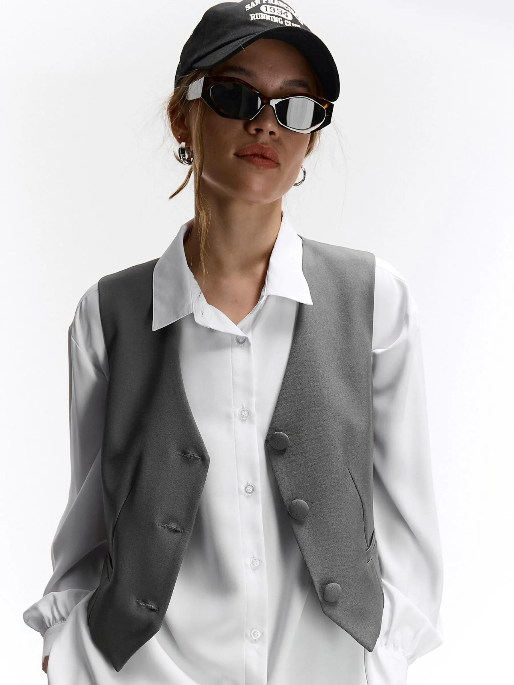 Kolor: szaryKrój: podstawowyTyp: kamizelkaRekaw: bez rękawówDługość: krótkiPattern style: pojedynczy kolorDetal: …