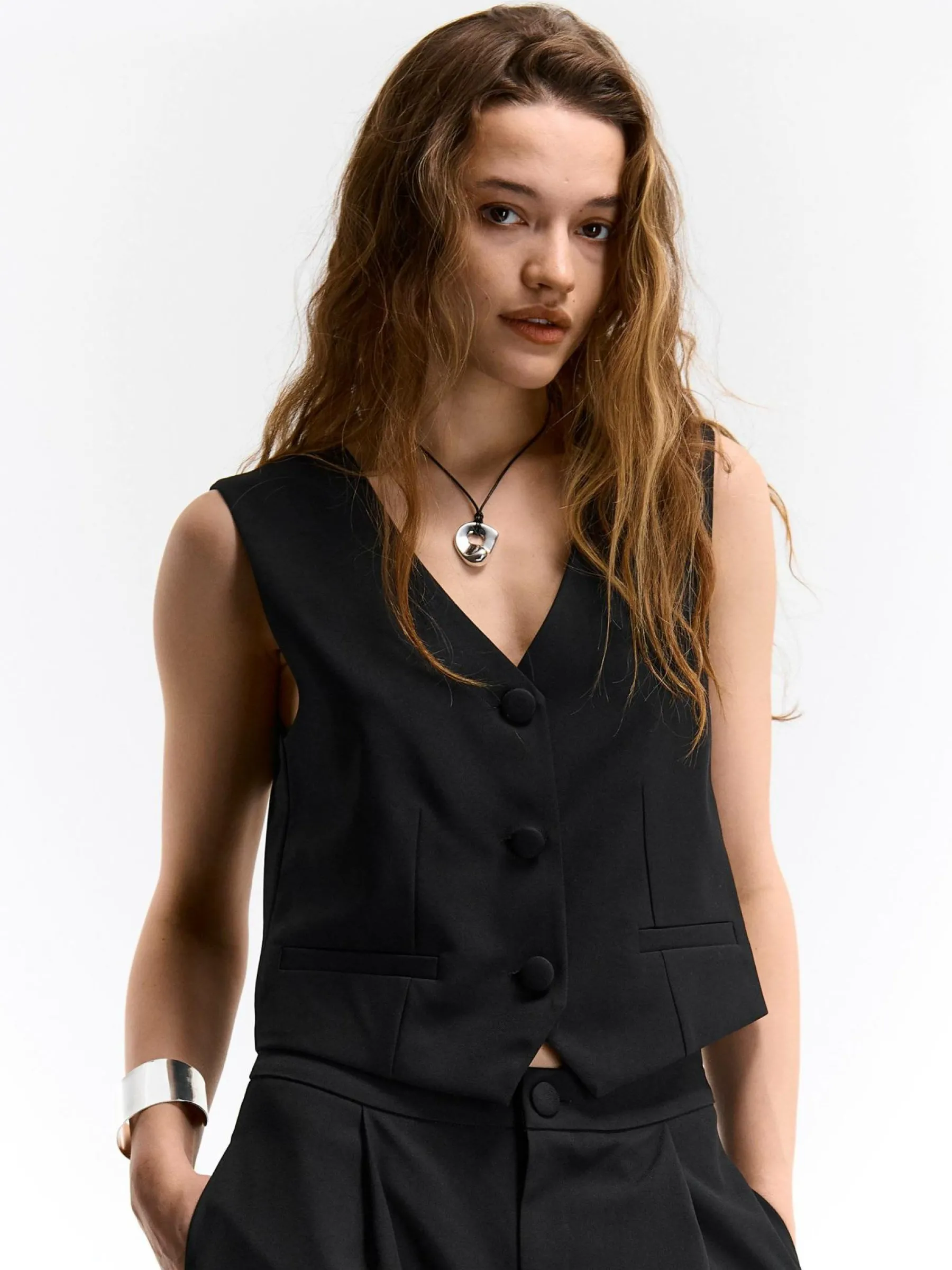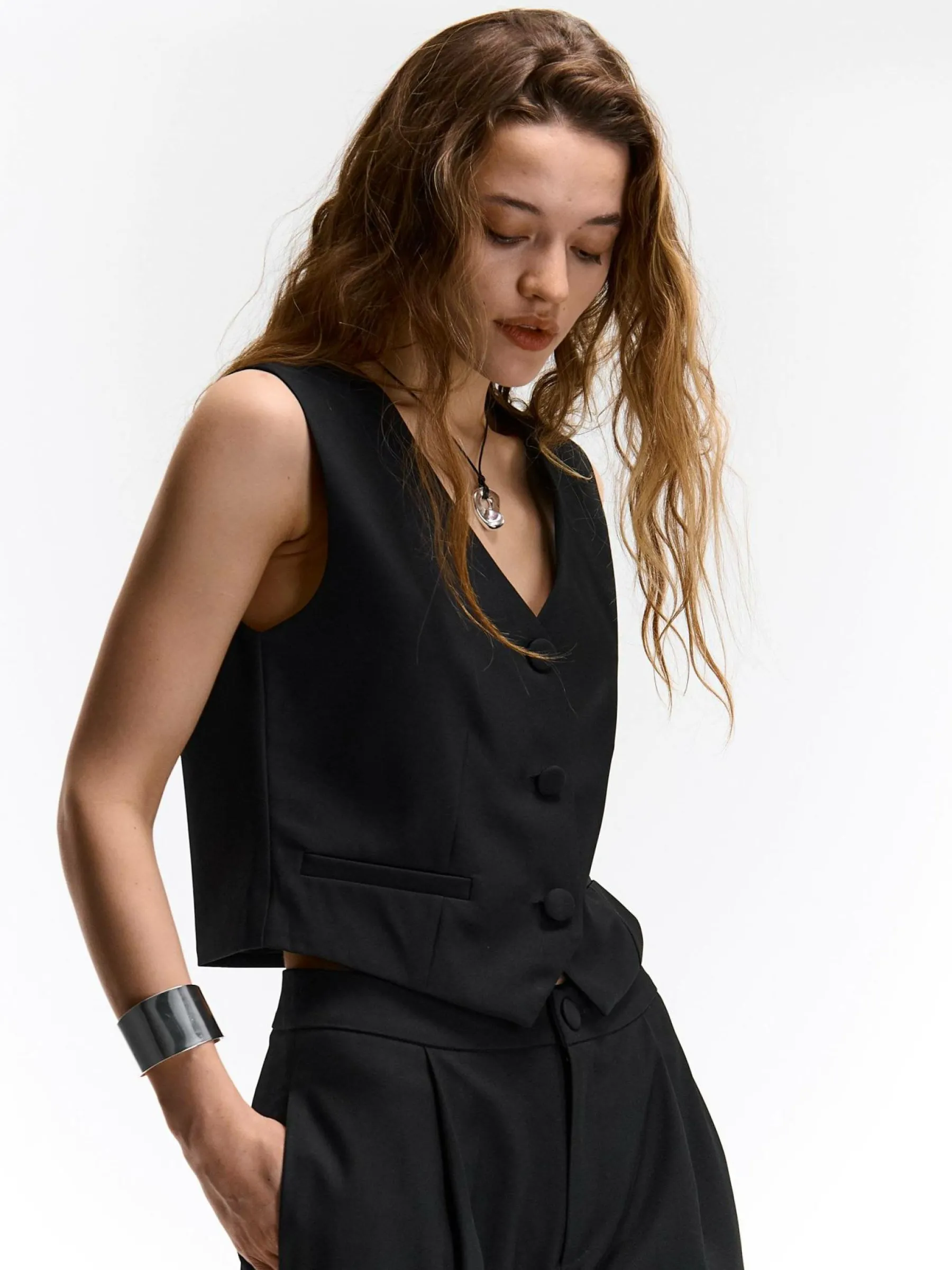 Kolor: czarnyKrój: podstawowyTyp: kamizelkaRekaw: bez rękawówDługość: krótki topPattern style: pojedynczy kolorDe…