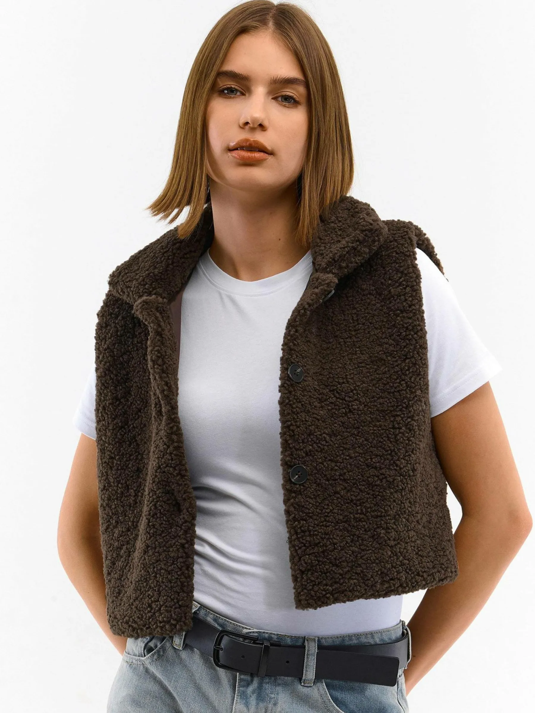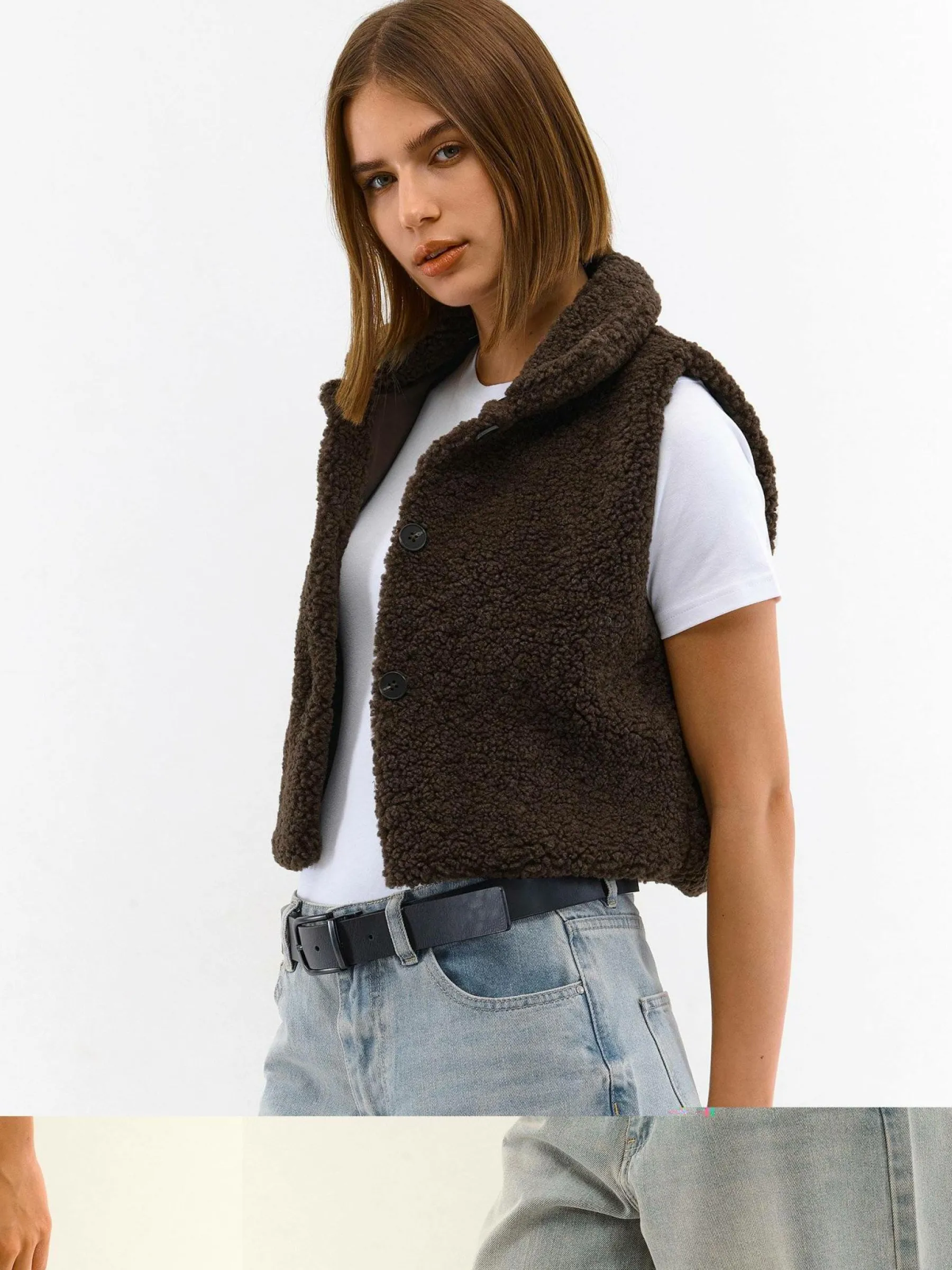 Kolor: brązowyKrój: regularTyp: zimowa/przejściowa kamizelkaRekaw: bez rękawówDługość: krótki topPattern style:…