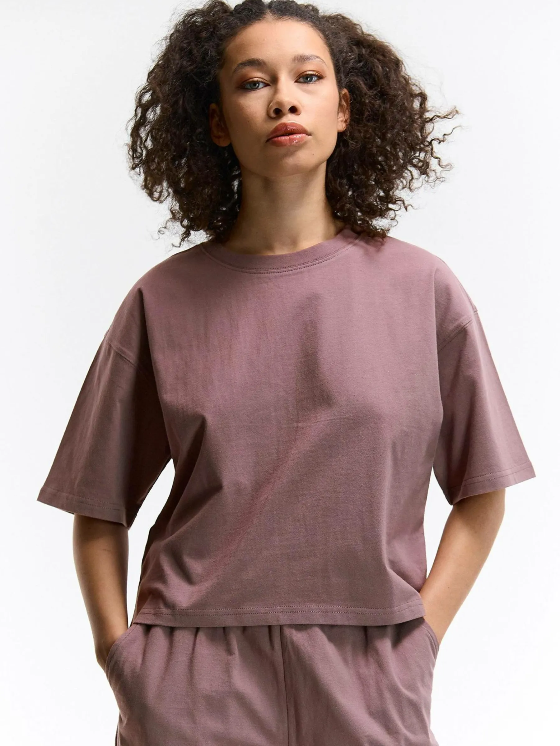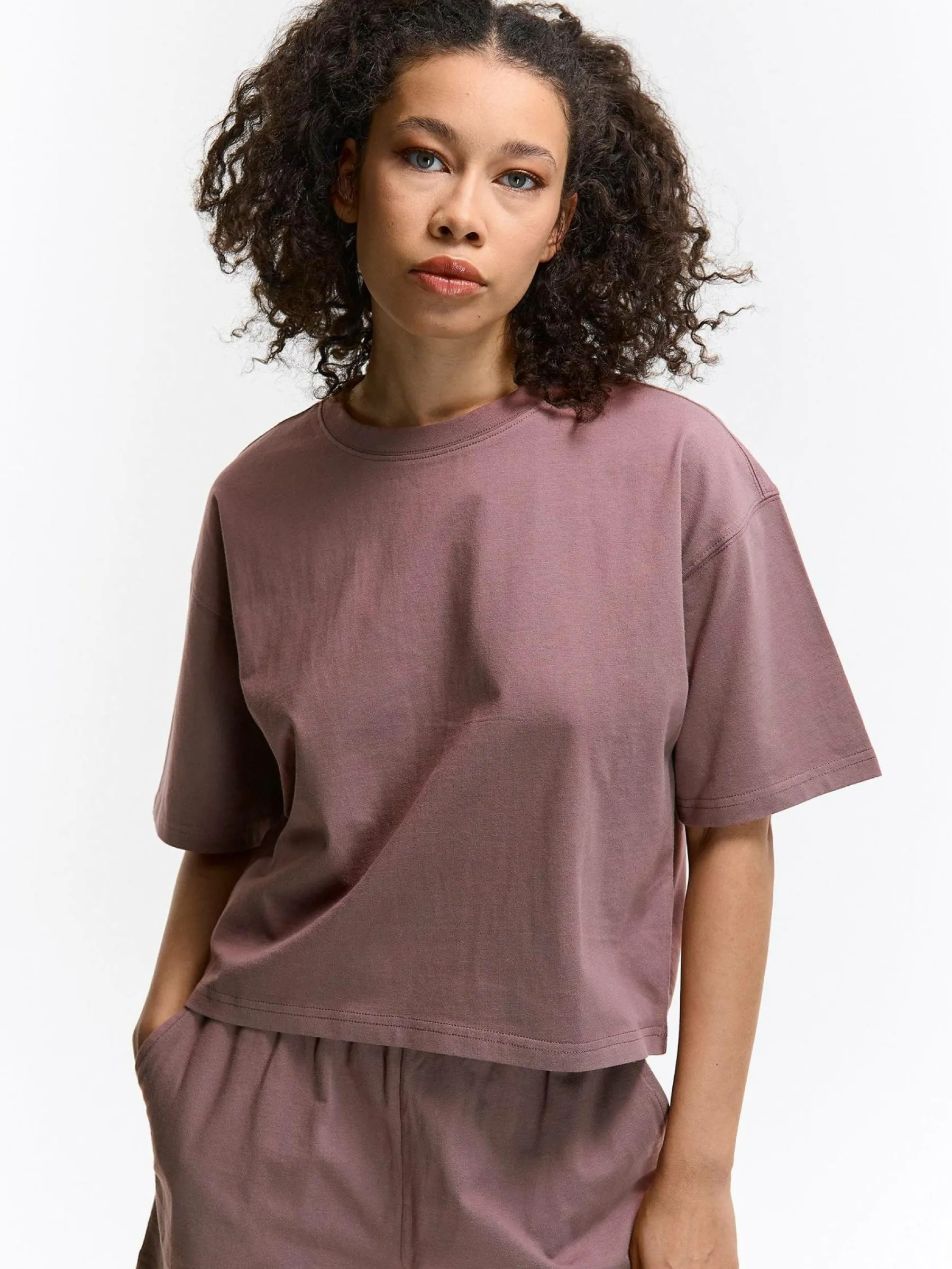 Kolor: różowyKrój: regularTyp: koszulkaRekaw: krótki rękawDługość: krótkiPattern style: pojedynczy kolorDetal: …