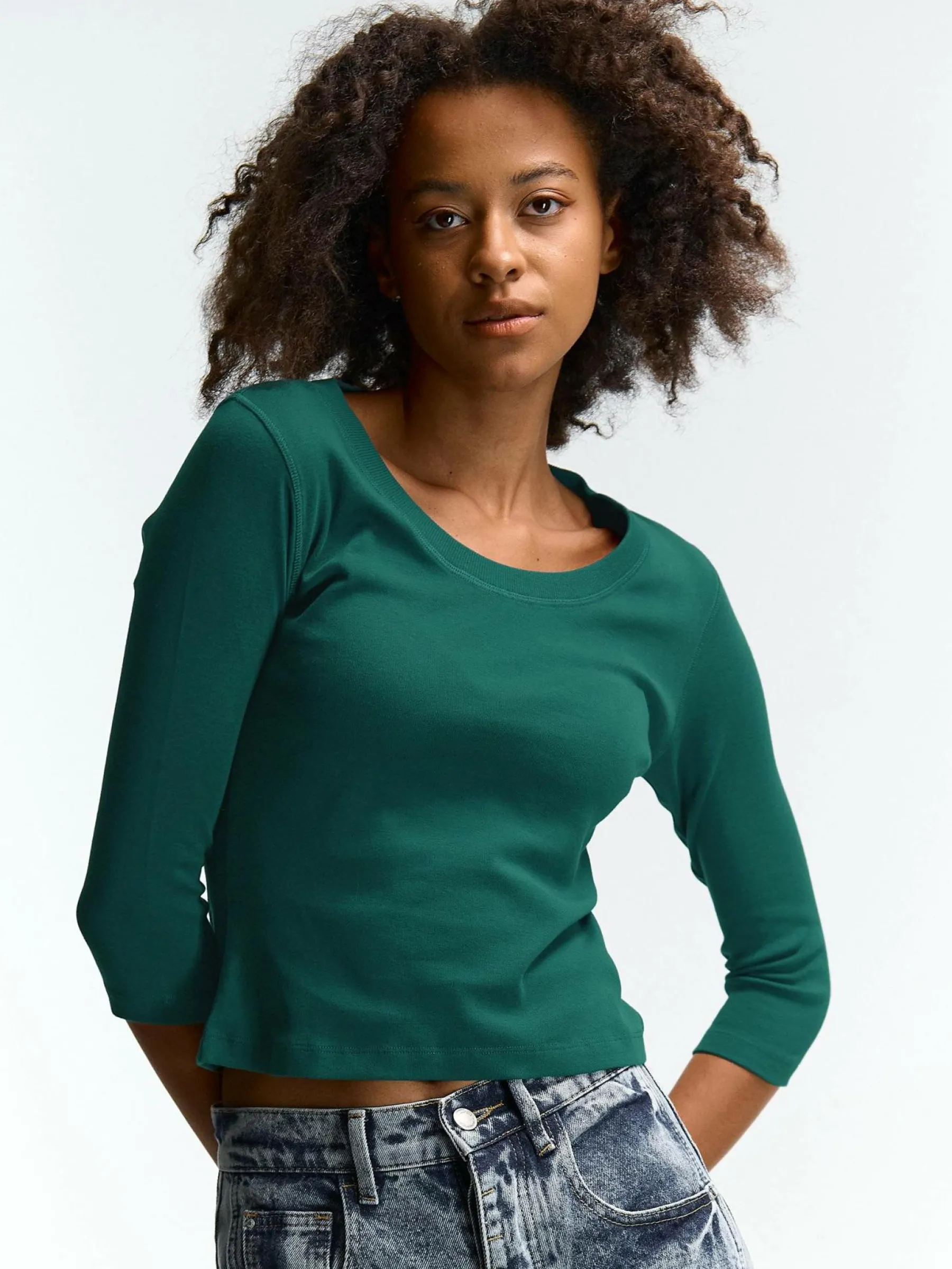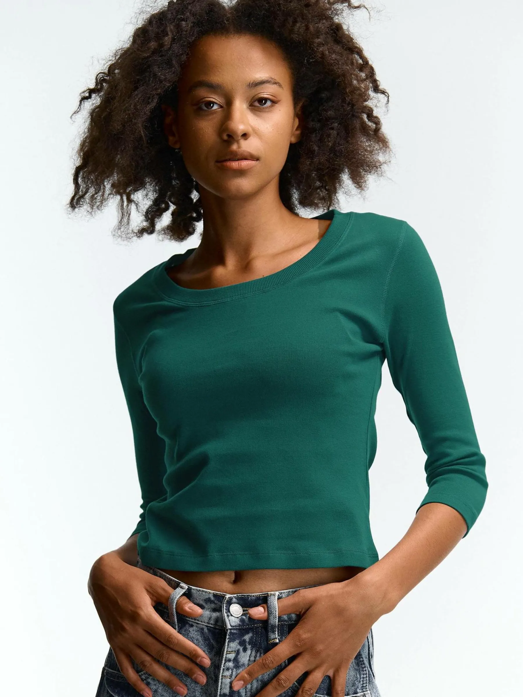 Kolor: zielonyKrój: podstawowyTyp: koszulkaRekaw: rękaw 3/4Długość: krótki topPattern style: pojedynczy kolorDetal…