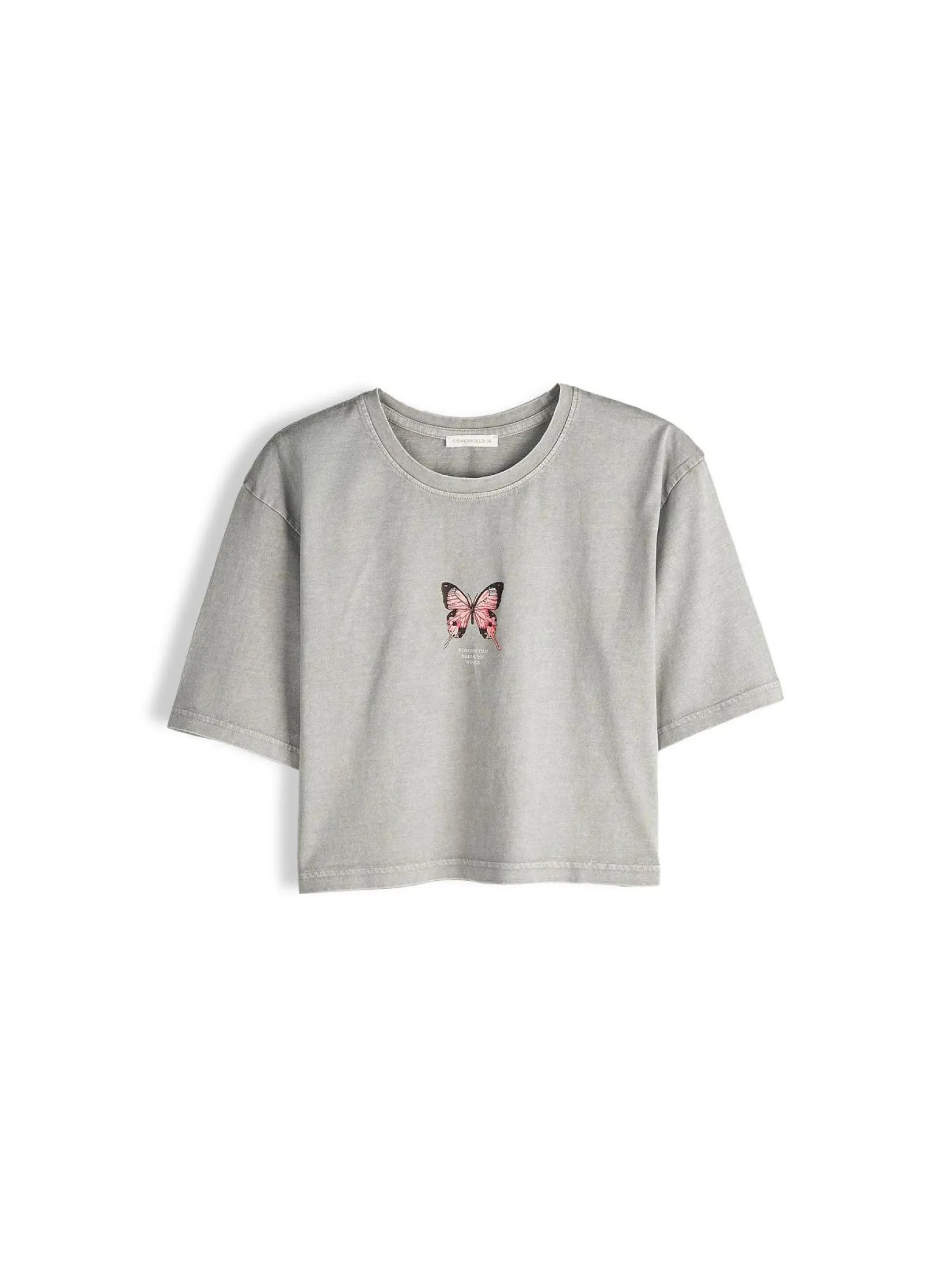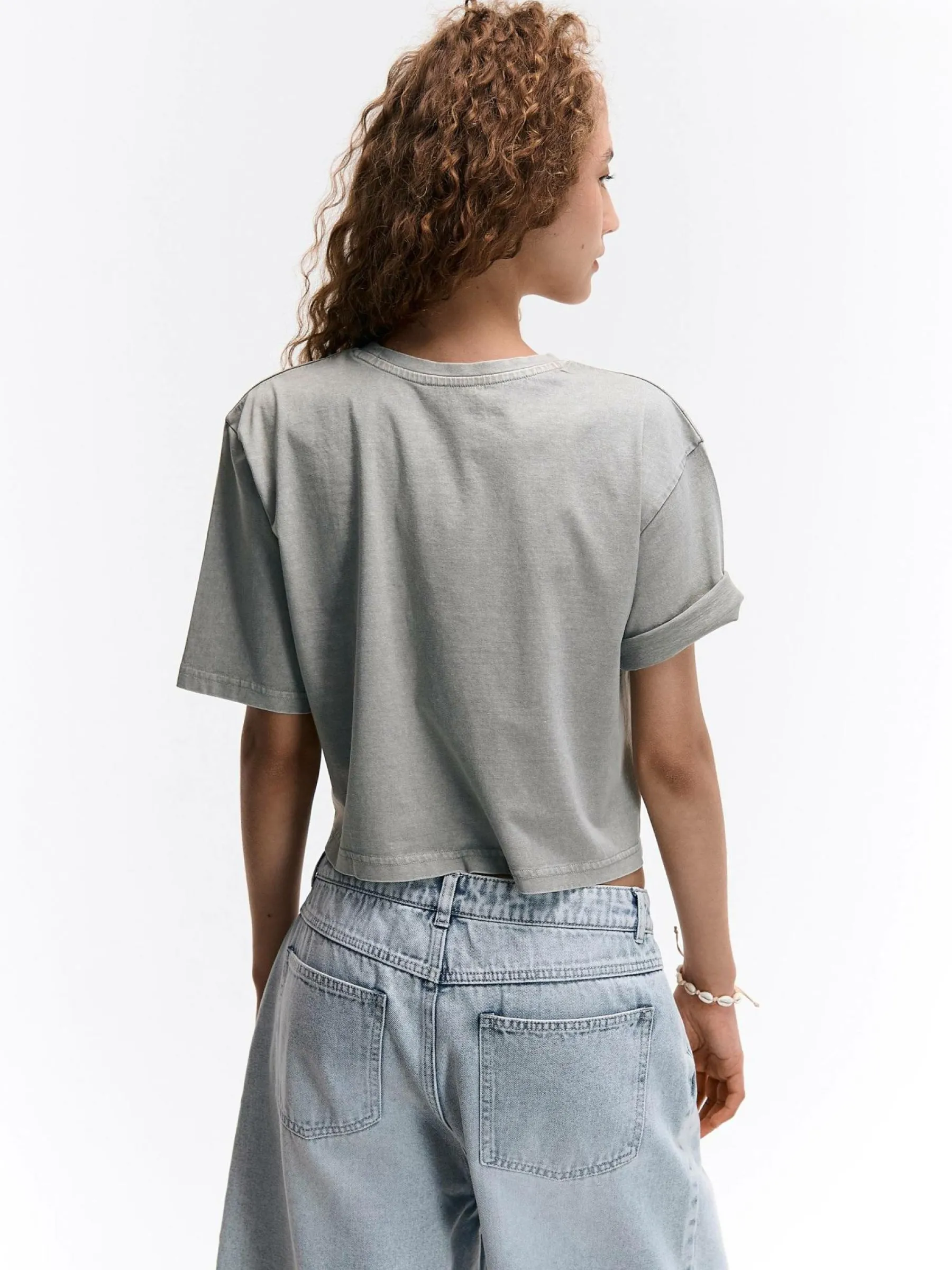 Kolor: szaryTyp: koszulkaRekaw: krótki rękawDługość: krótki topPattern style: z nadrukiemDetal: nad głowąMateria…