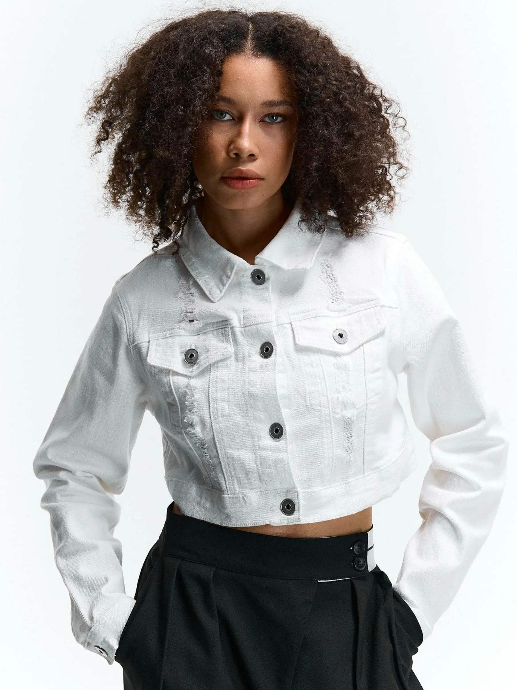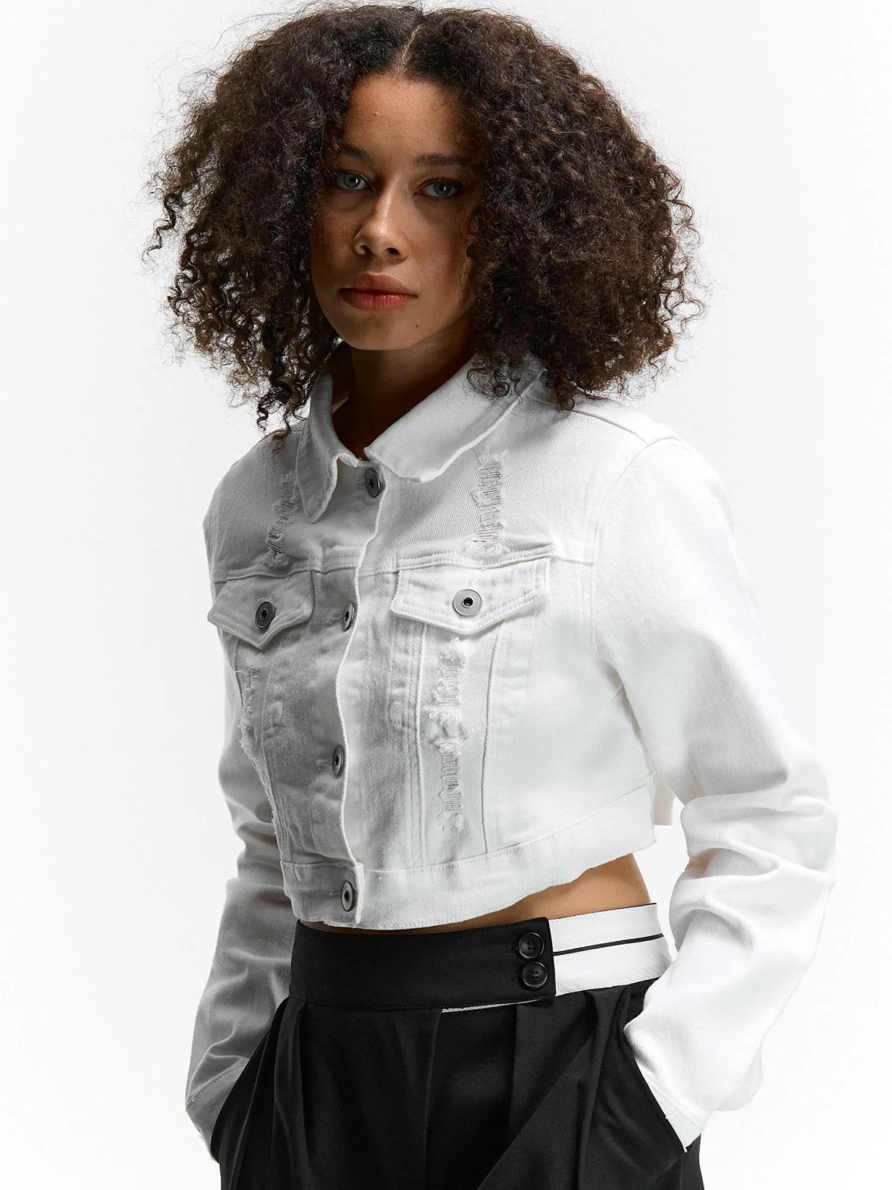 Kolor: białyKrój: podstawowyTyp: kurtka przejściowaRekaw: długi rękawDługość: krótki topPattern style: pojedync…