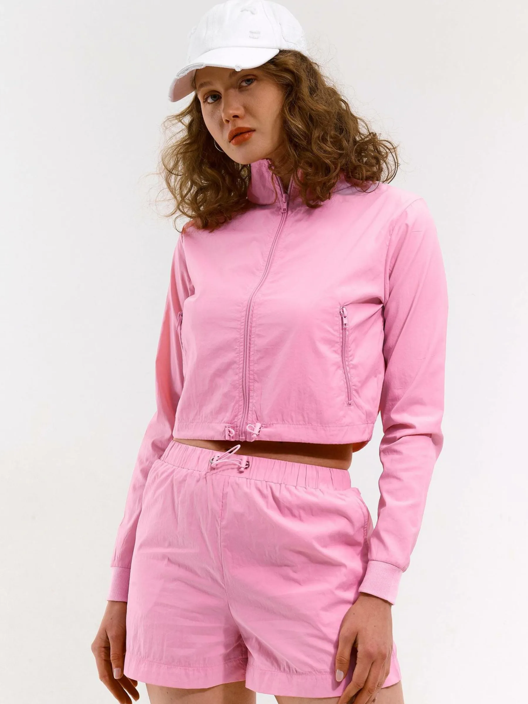 Kolor: różowyKrój: regularTyp: kurtka przejściowaRekaw: długi rękawDługość: krótkiPattern style: pojedynczy ko…