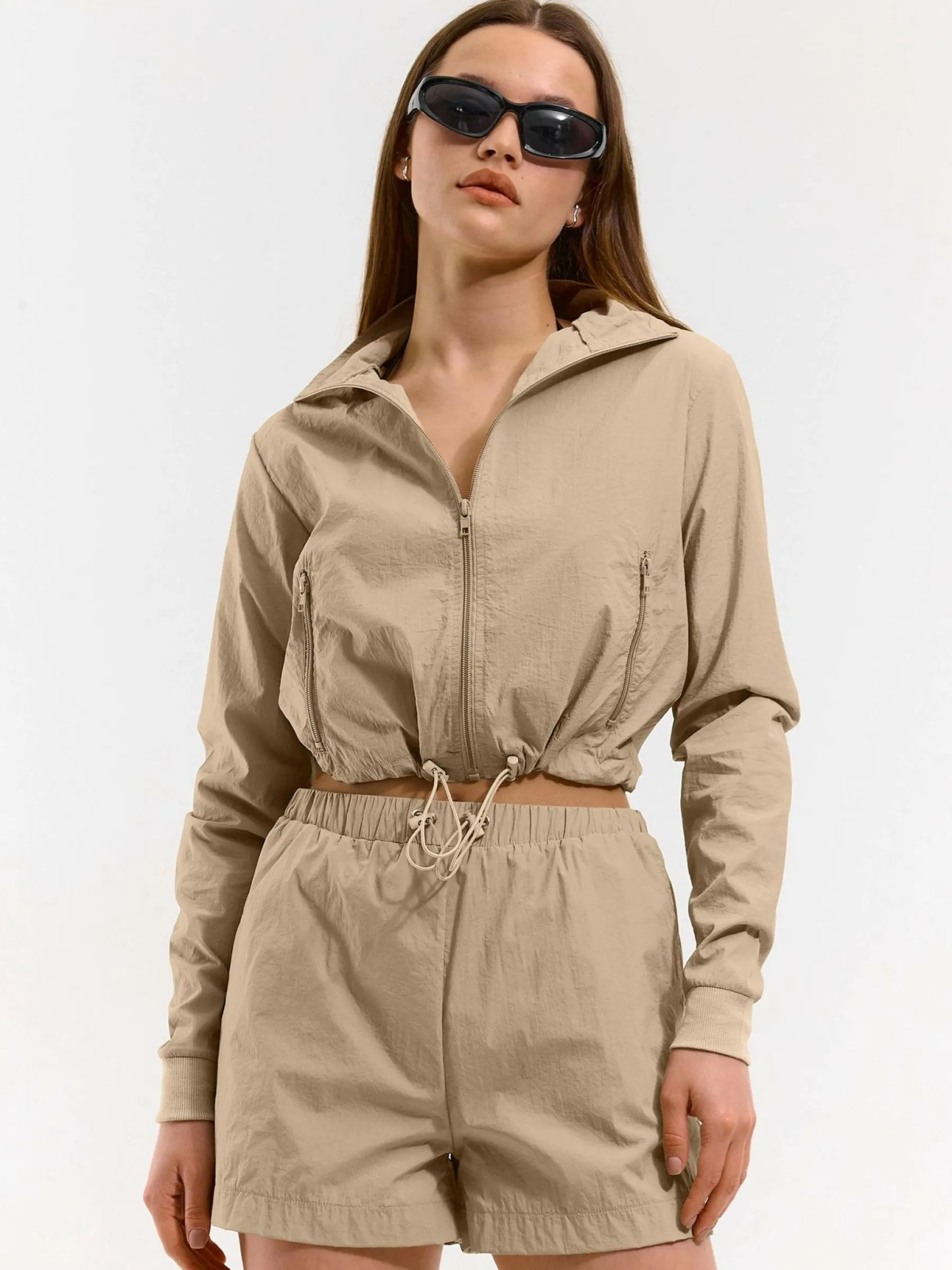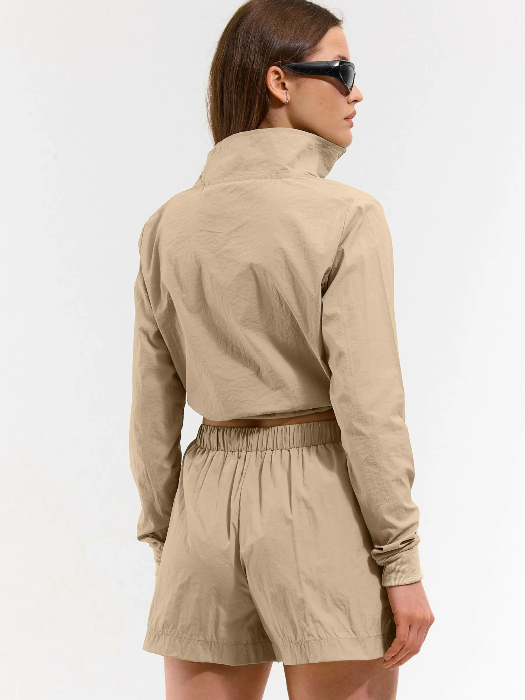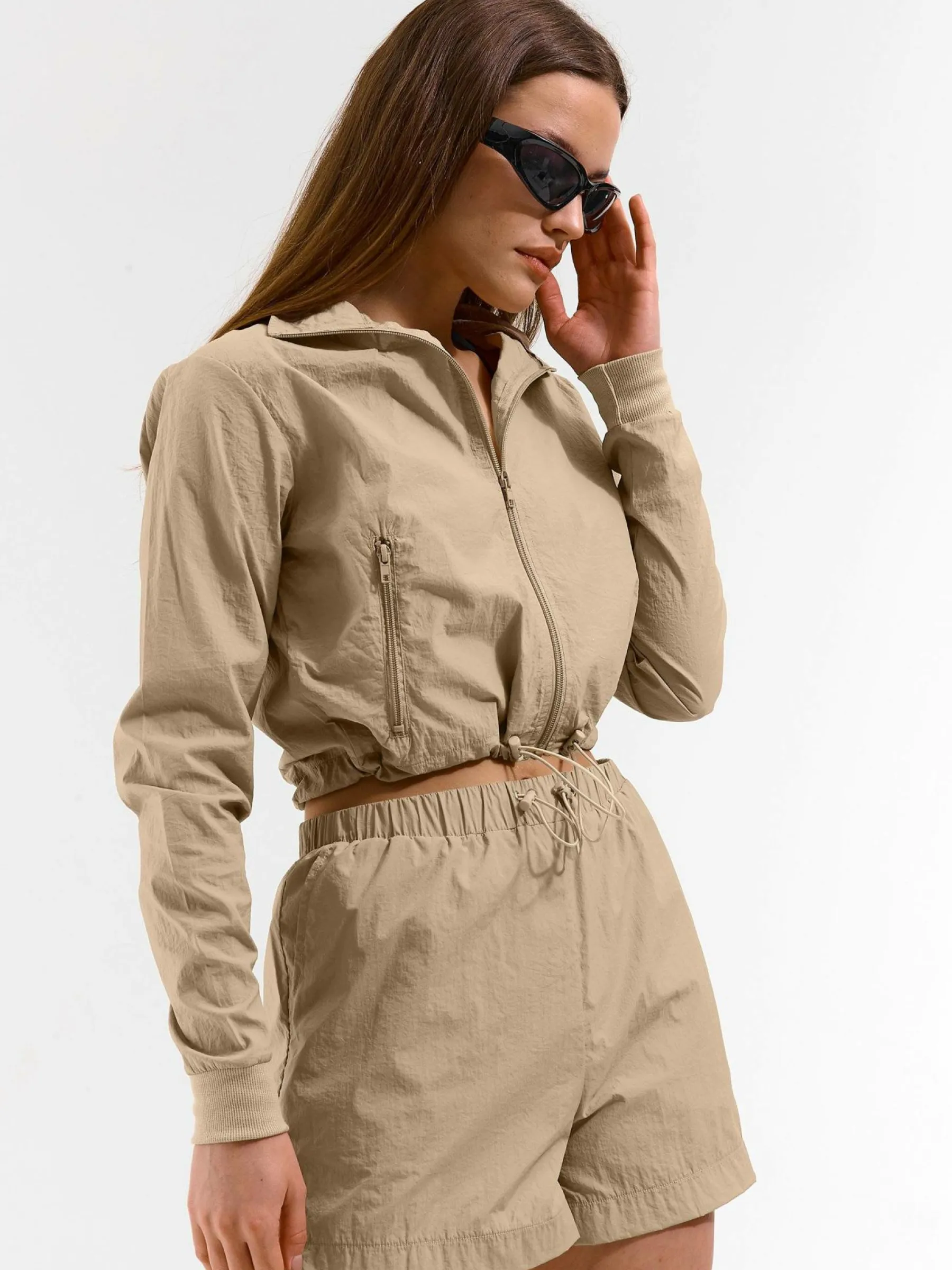 Kolor: beżowyKrój: regularTyp: kurtka przejściowaRekaw: długi rękawDługość: krótkiPattern style: pojedynczy kol…