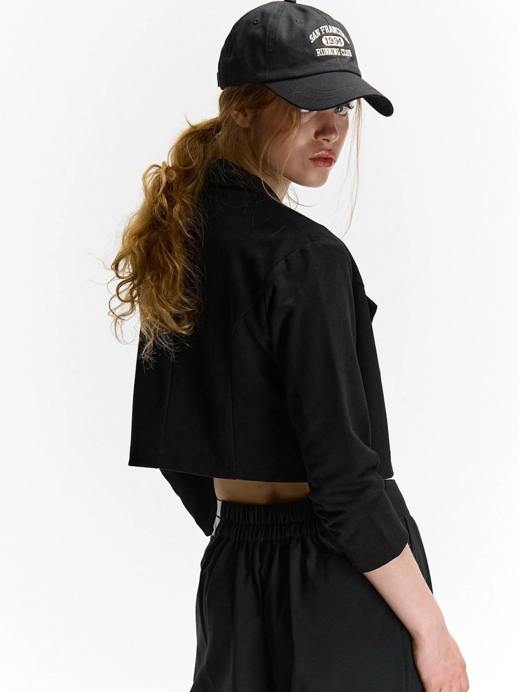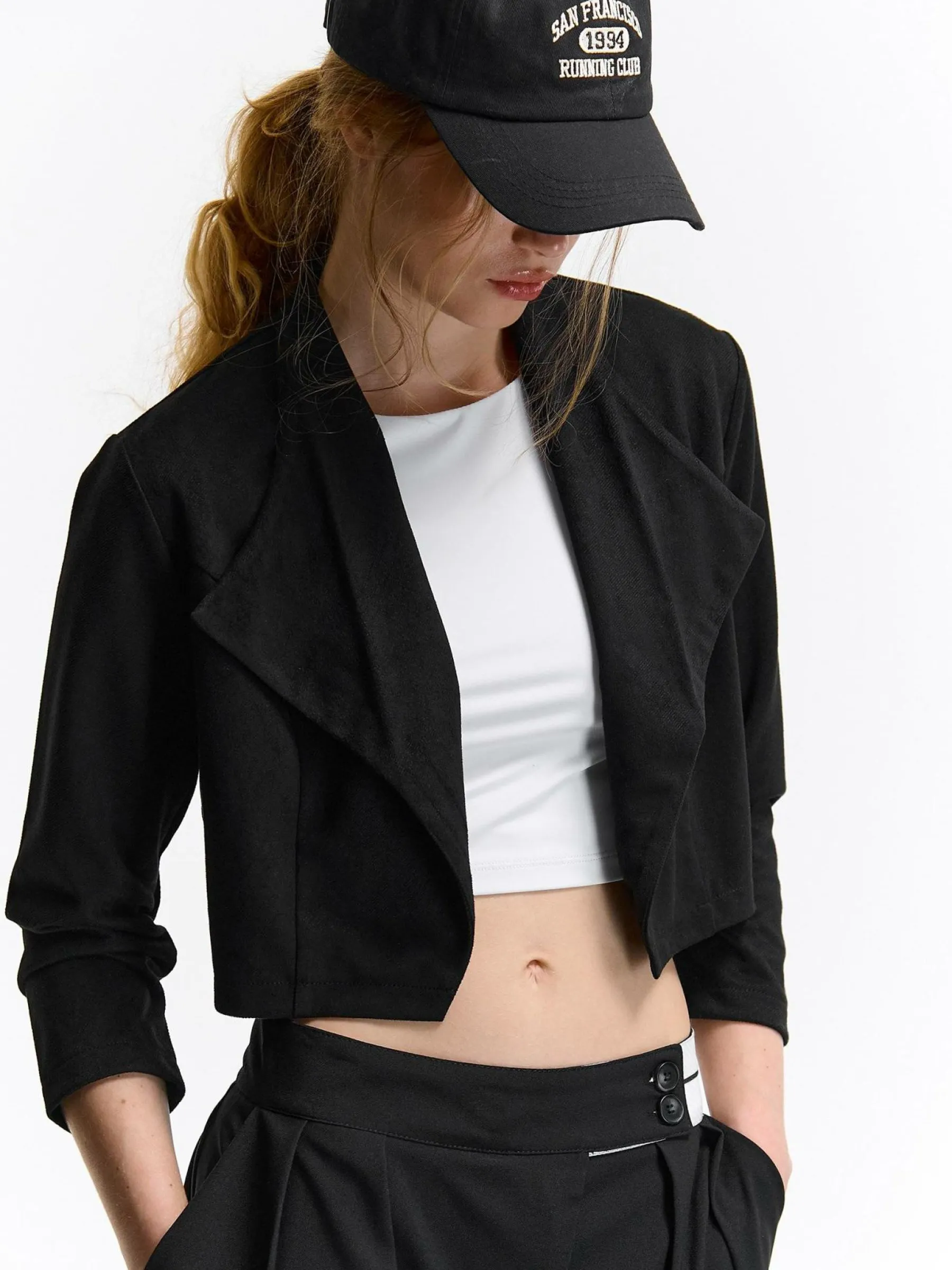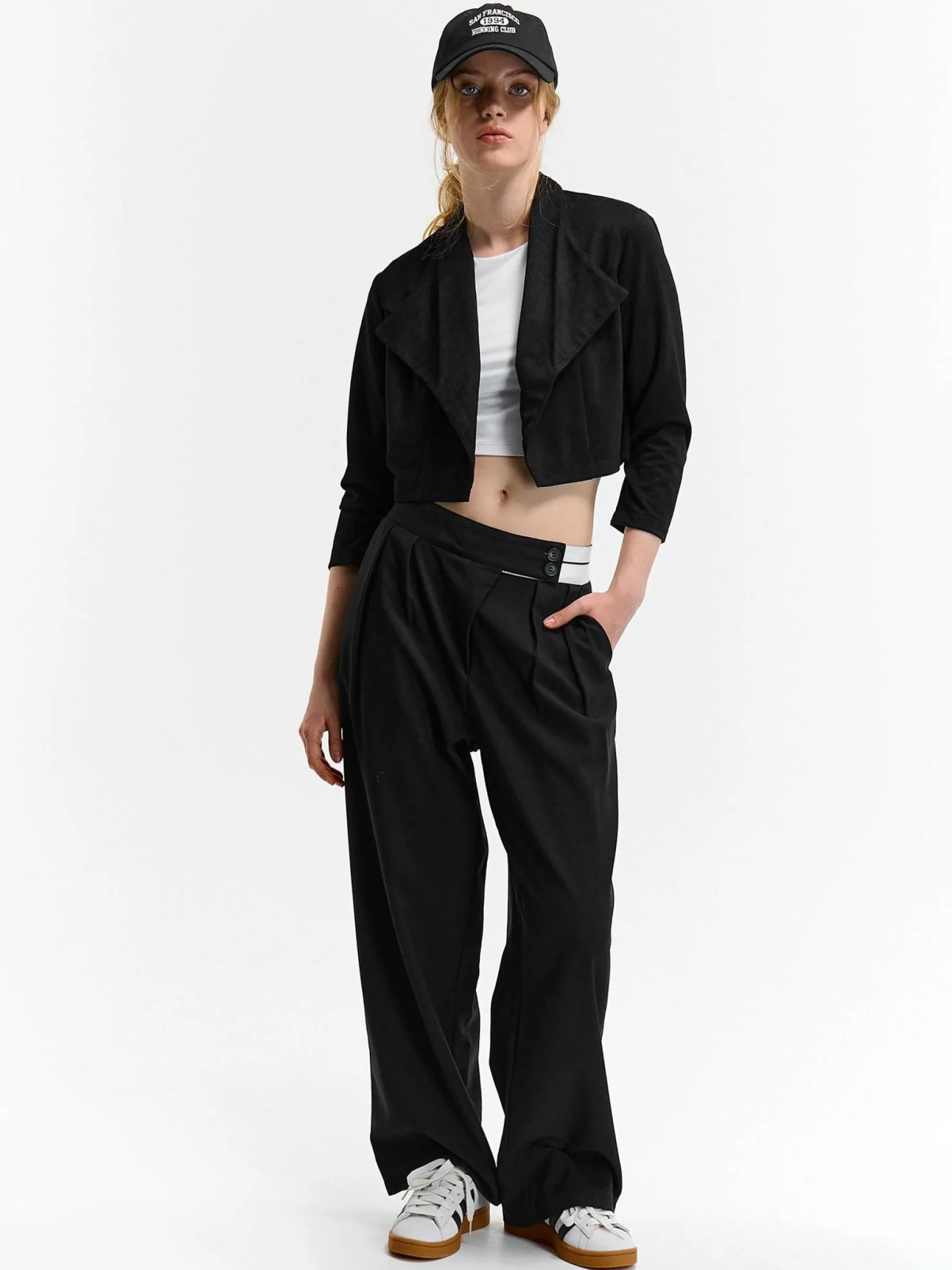 Kolor: czarnyKrój: regularTyp: blezerRekaw: długi rękawDługość: krótki topPattern style: pojedynczy kolorDetal: b…