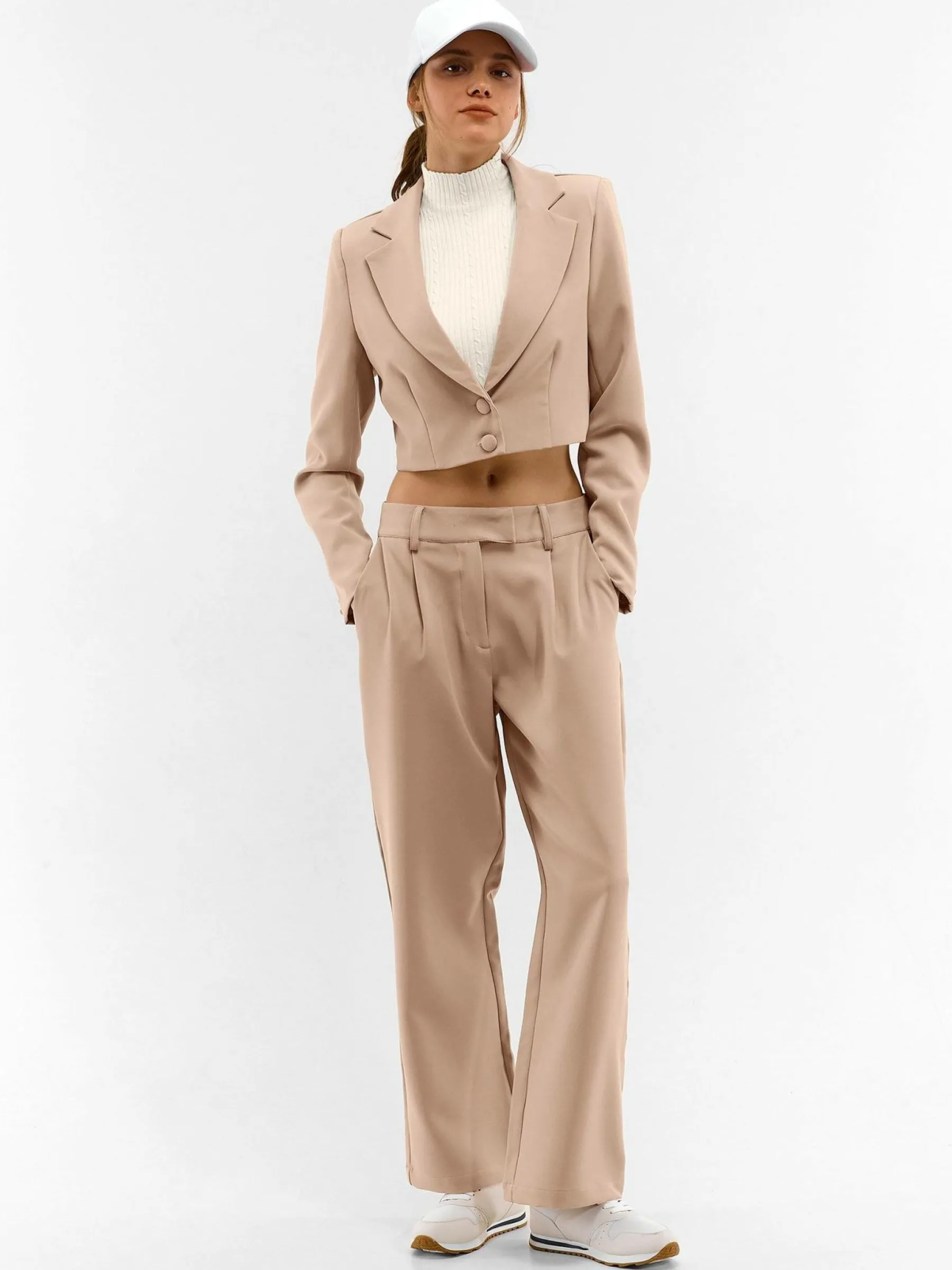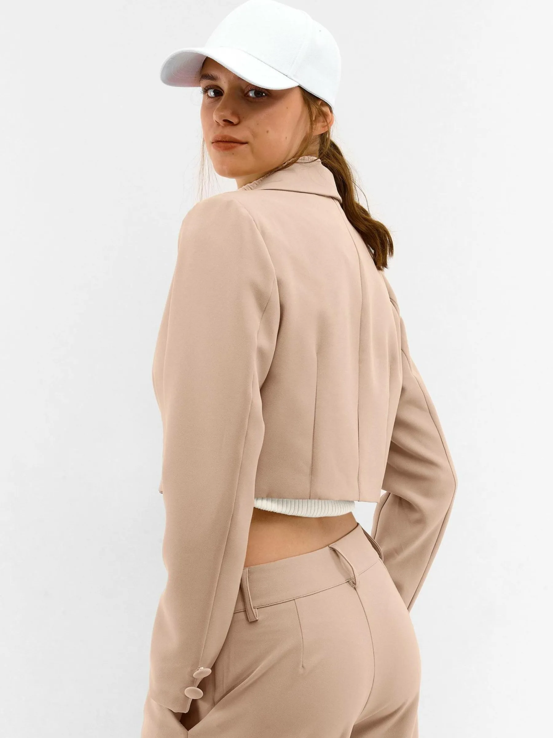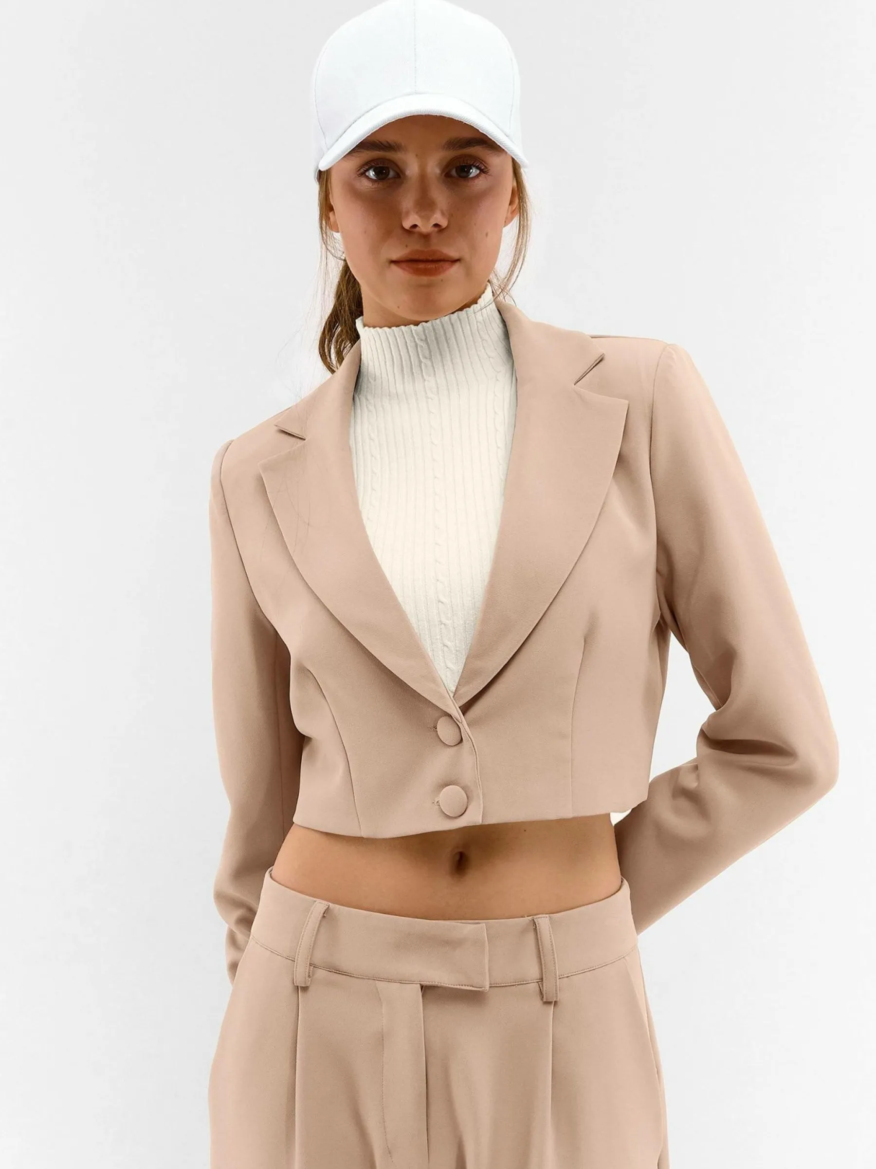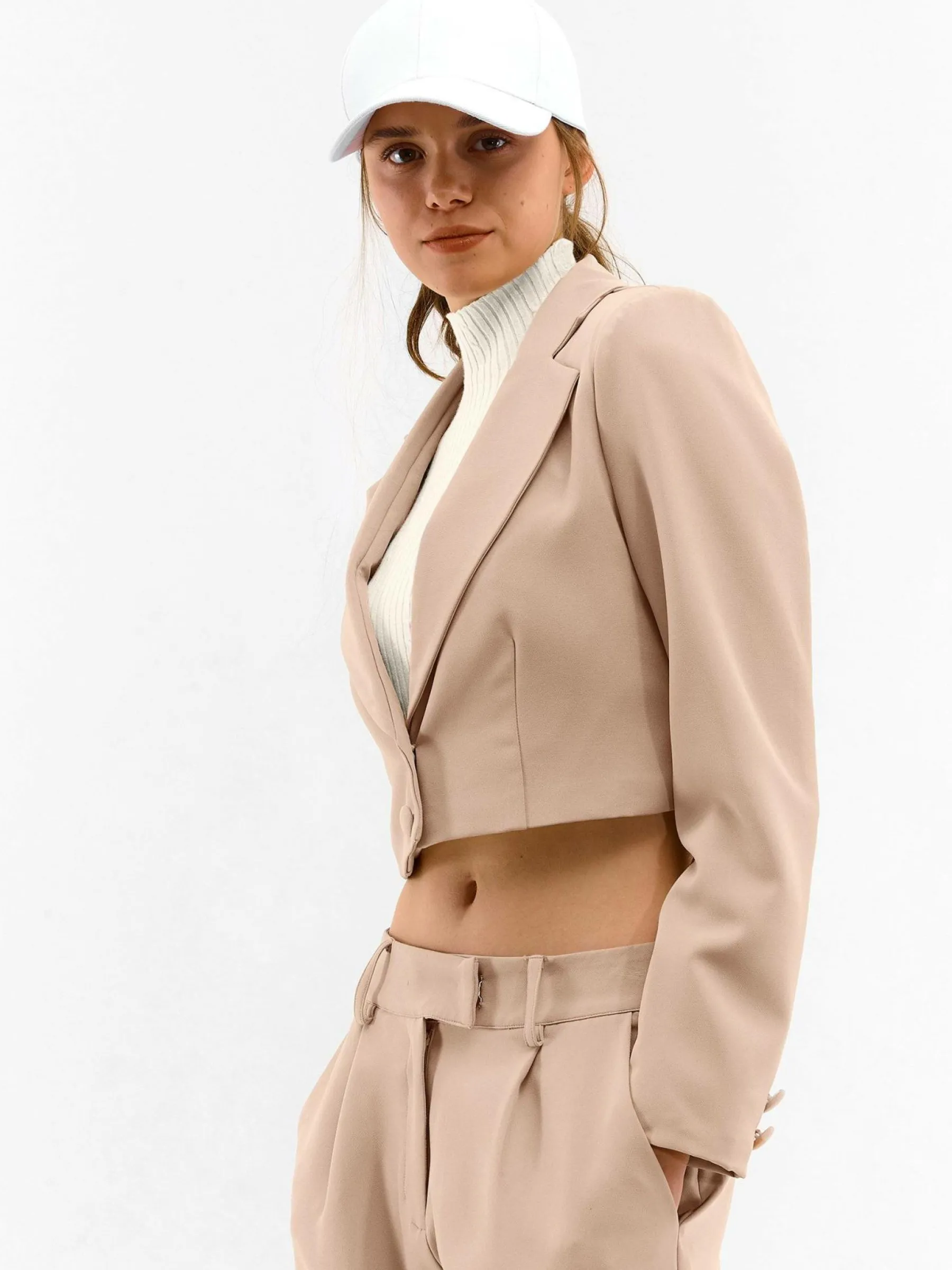 Kolor: beżowyKrój: podstawowyTyp: marynarkaRekaw: długi rękawDługość: krótki topPattern style: pojedynczy kolorD…
