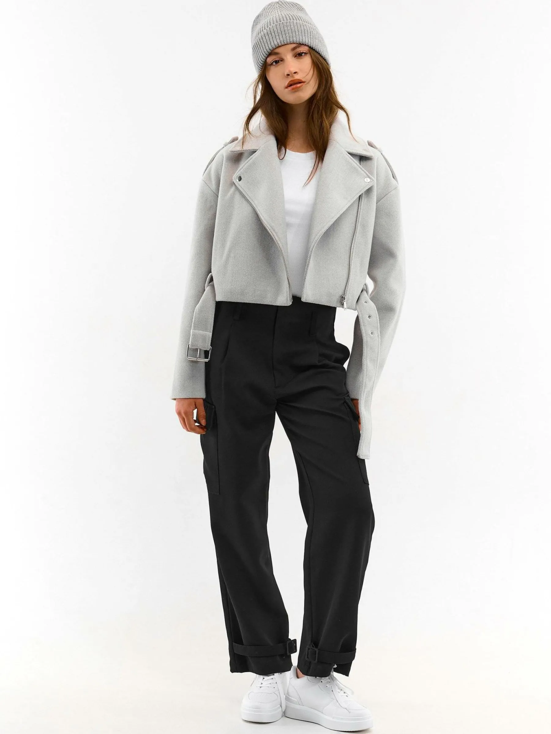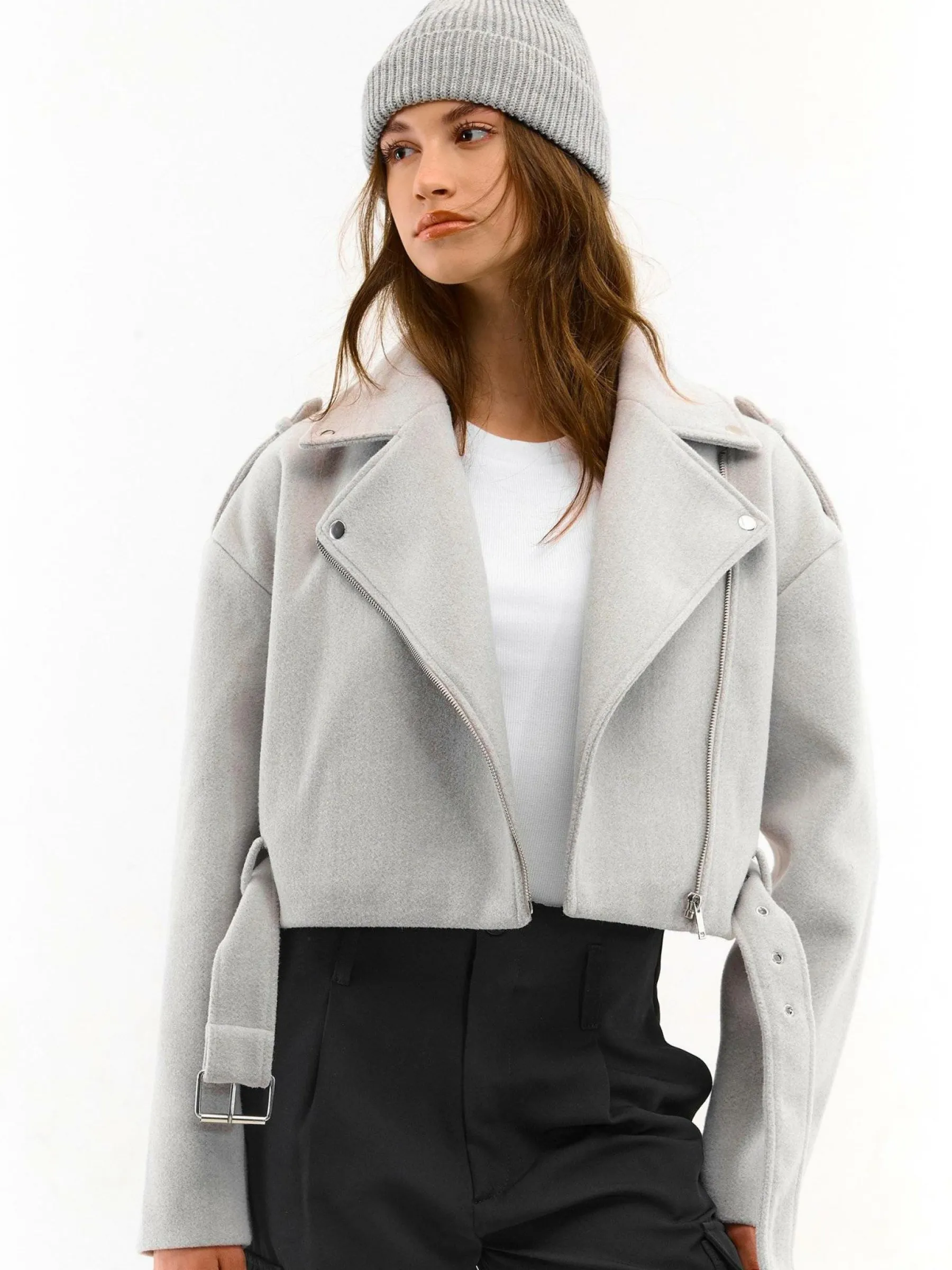 Kolor: beżowyKrój: motocykloweTyp: kurtka przejściowaRekaw: długi rękawDługość: krótki topPattern style: pojedy…