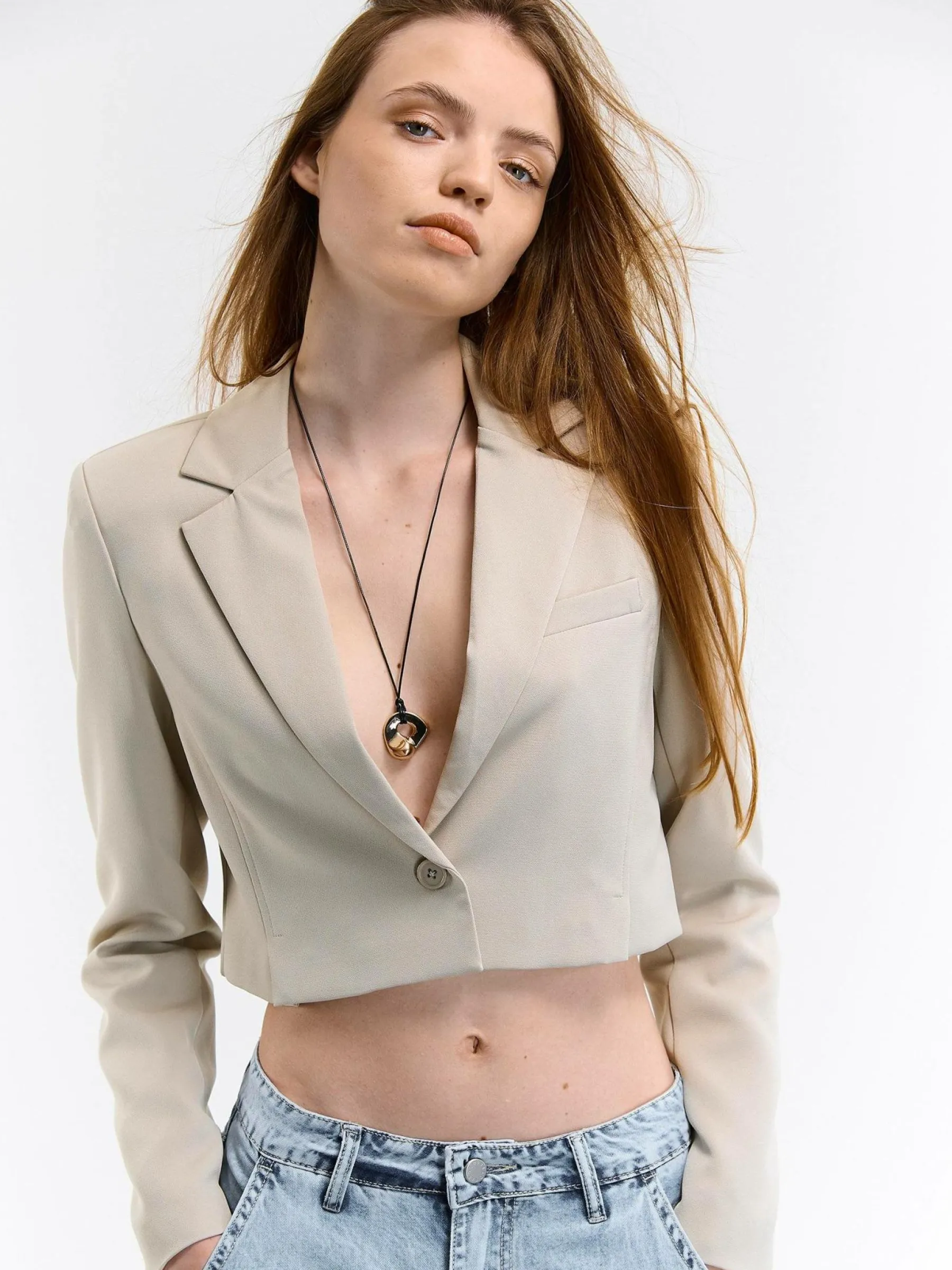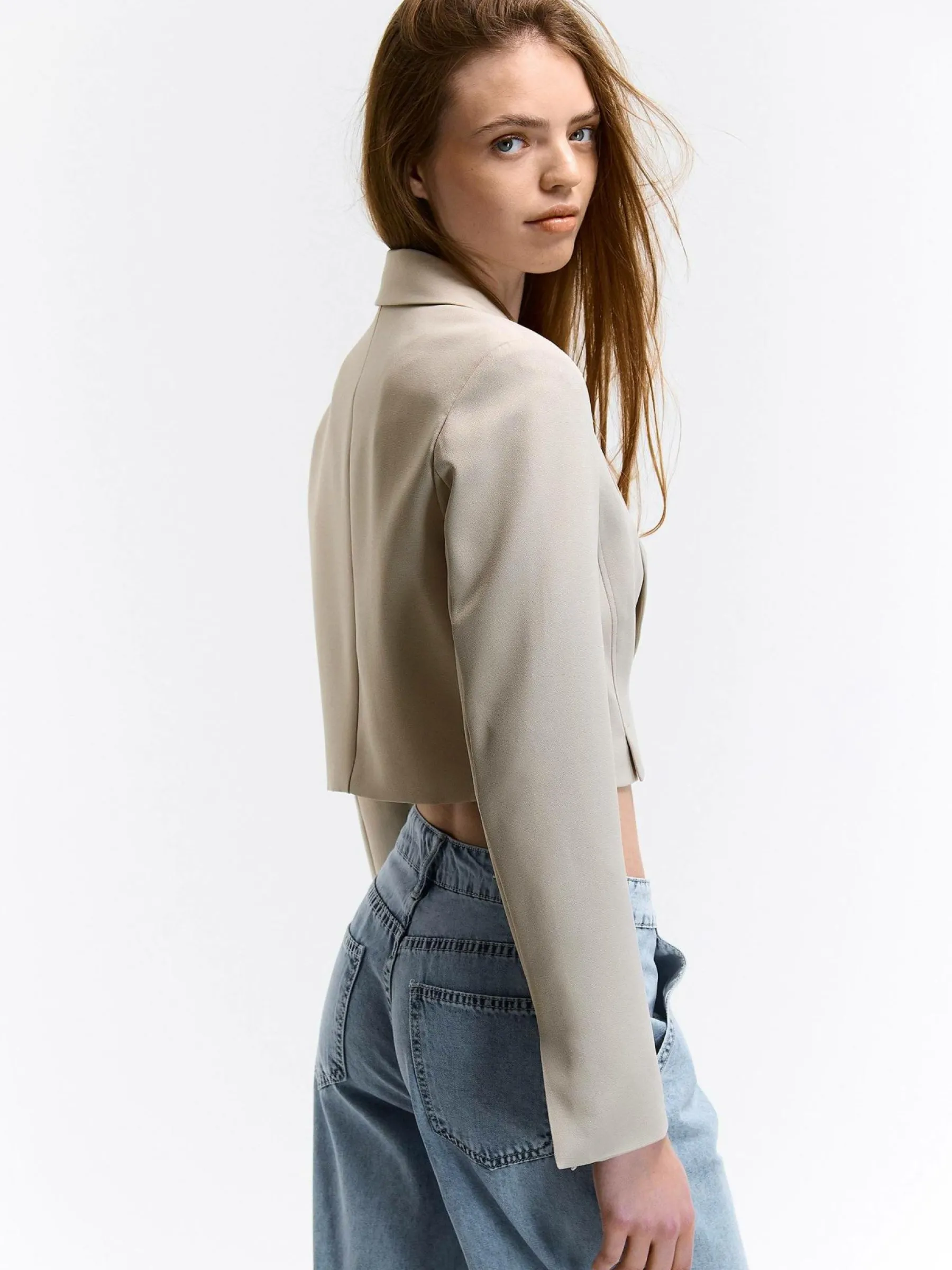 Kolor: beżowyKrój: podstawowyTyp: marynarkaRekaw: długi rękawDługość: krótki topPattern style: pojedynczy kolorD…