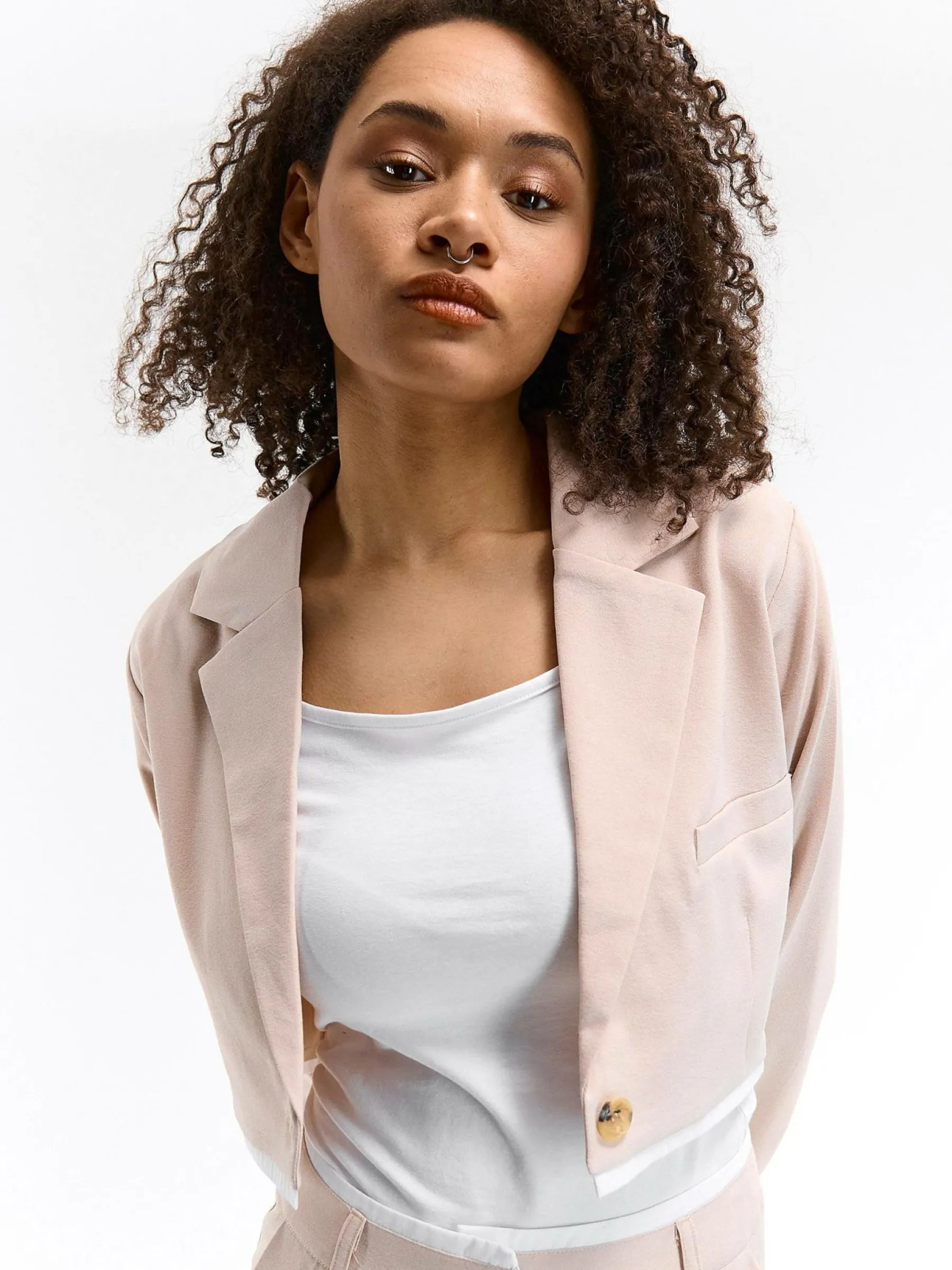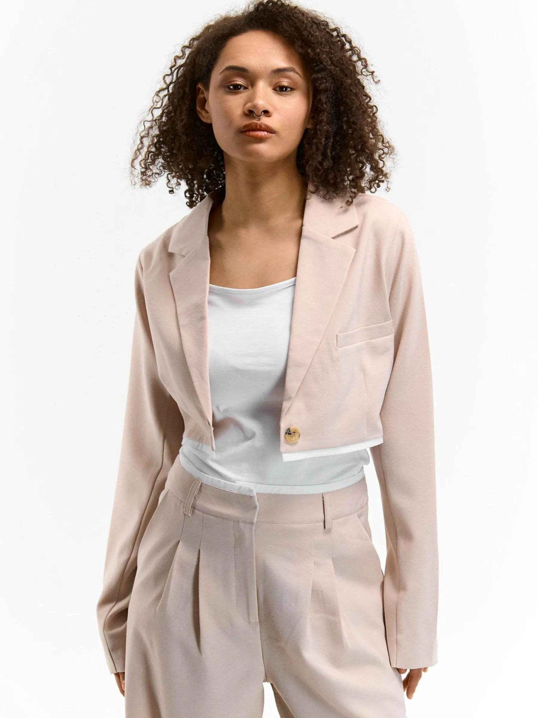 Kolor: beżowyKrój: podstawowyTyp: marynarkaRekaw: długi rękawDługość: krótki topPattern style: pojedynczy kolorD…
