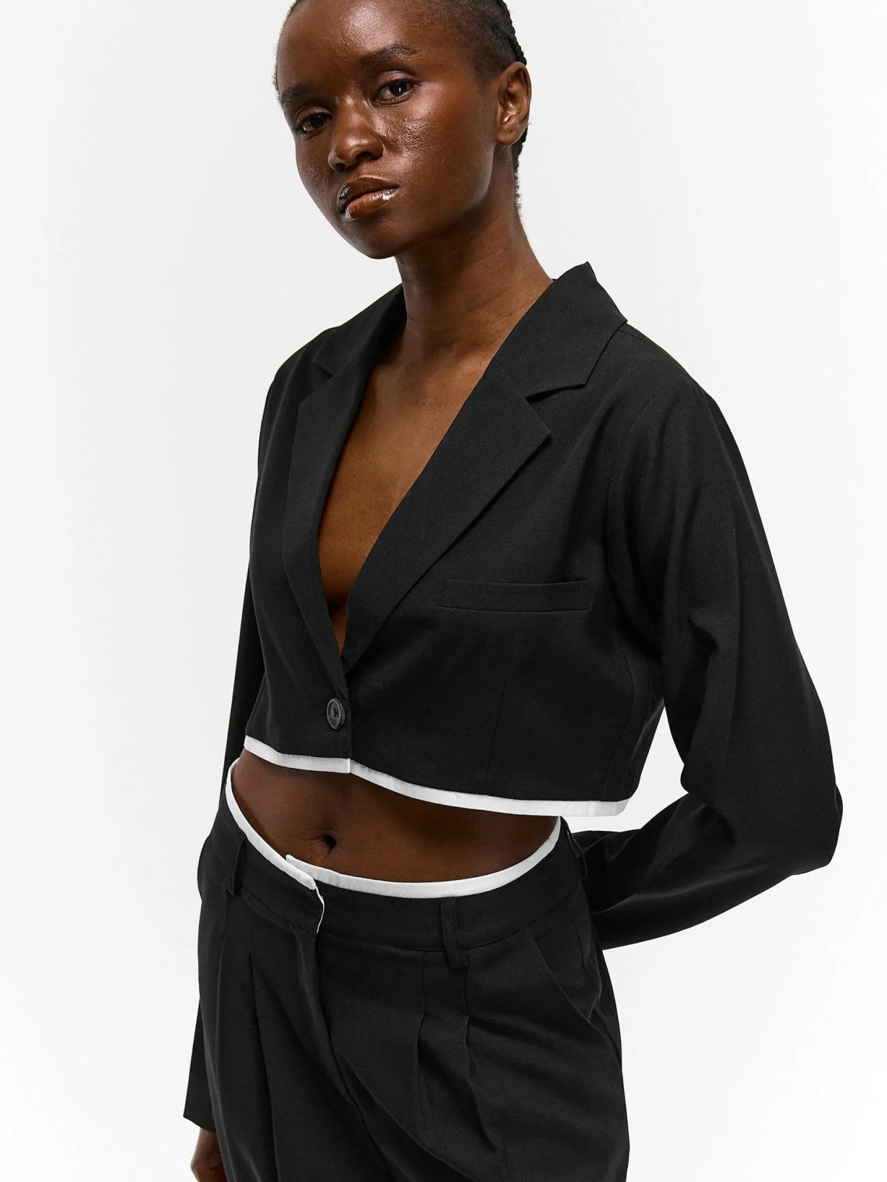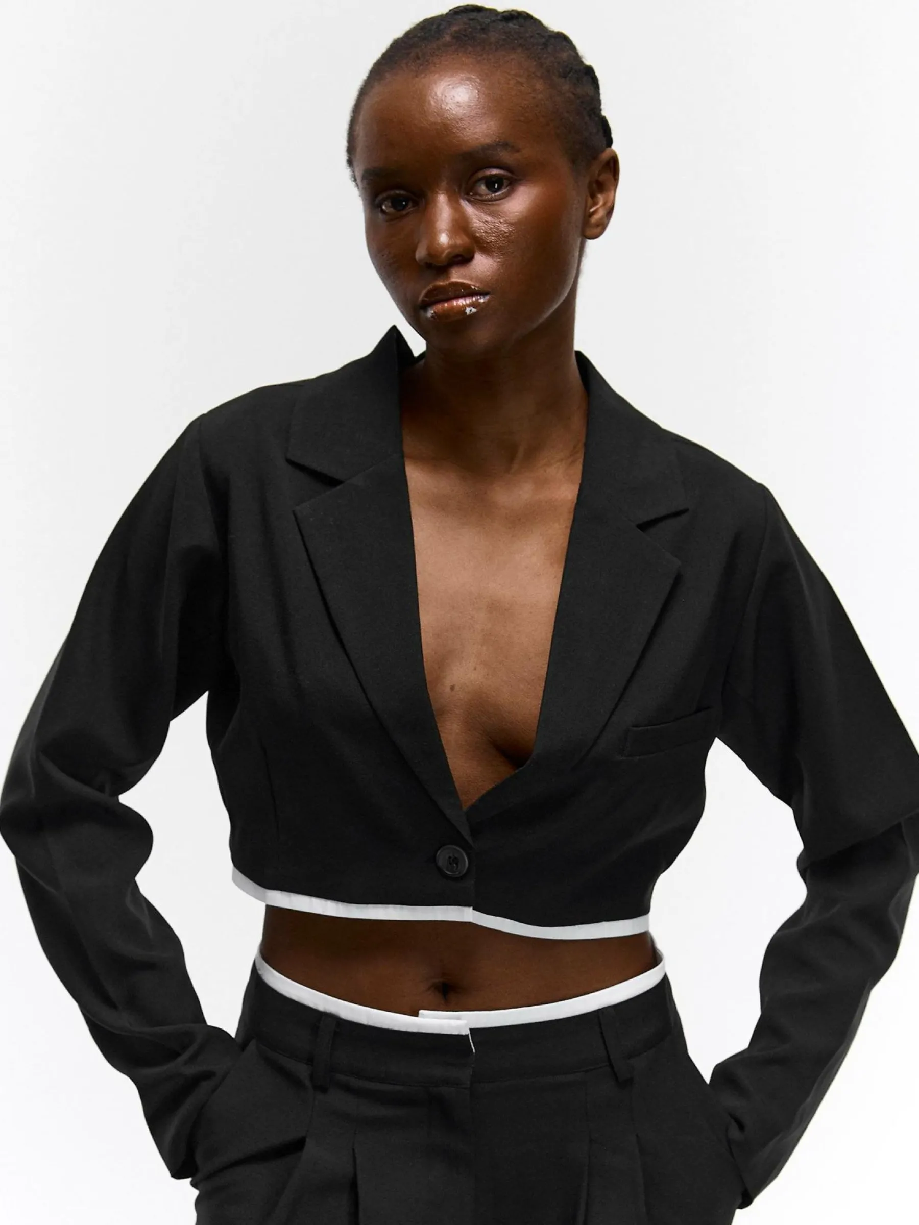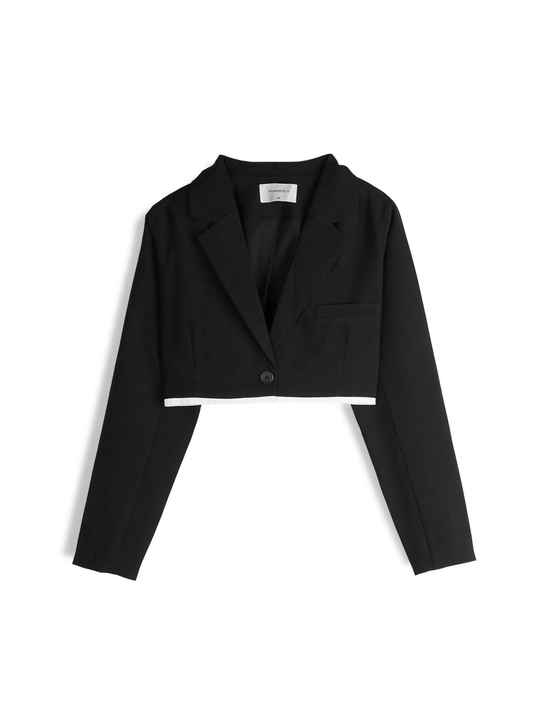 Kolor: czarnyKrój: podstawowyTyp: marynarkaRekaw: długi rękawDługość: krótki topPattern style: pojedynczy kolorDe…