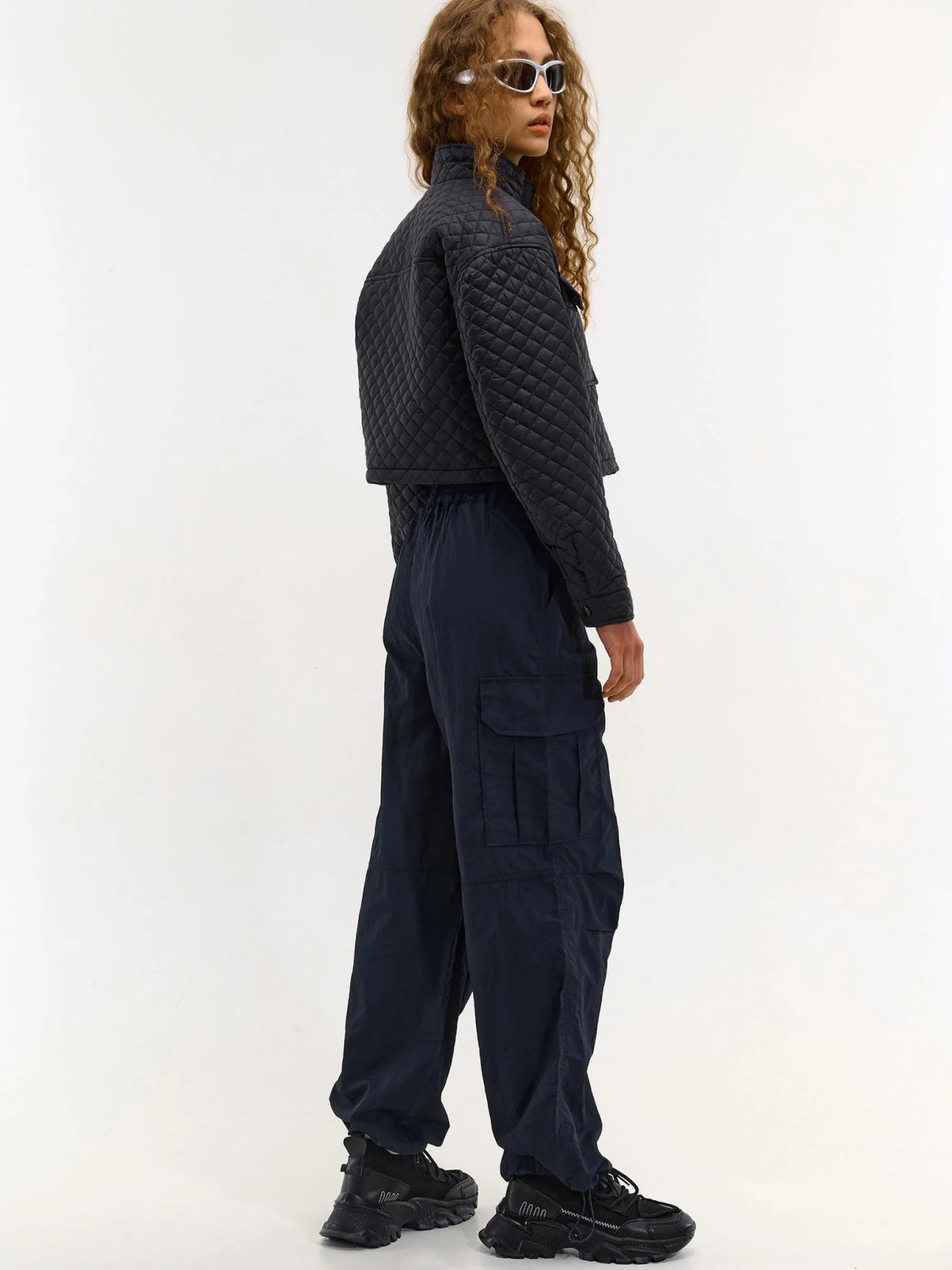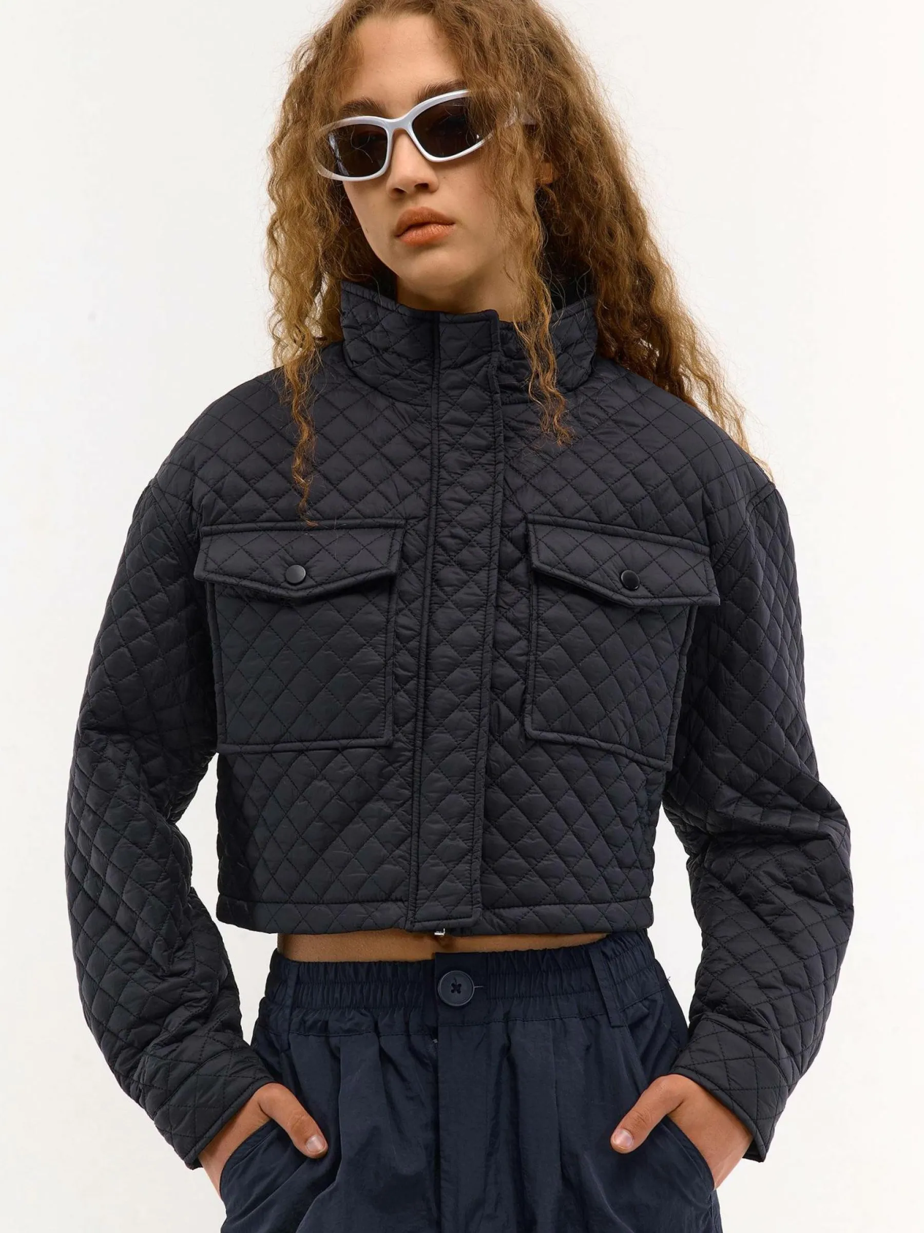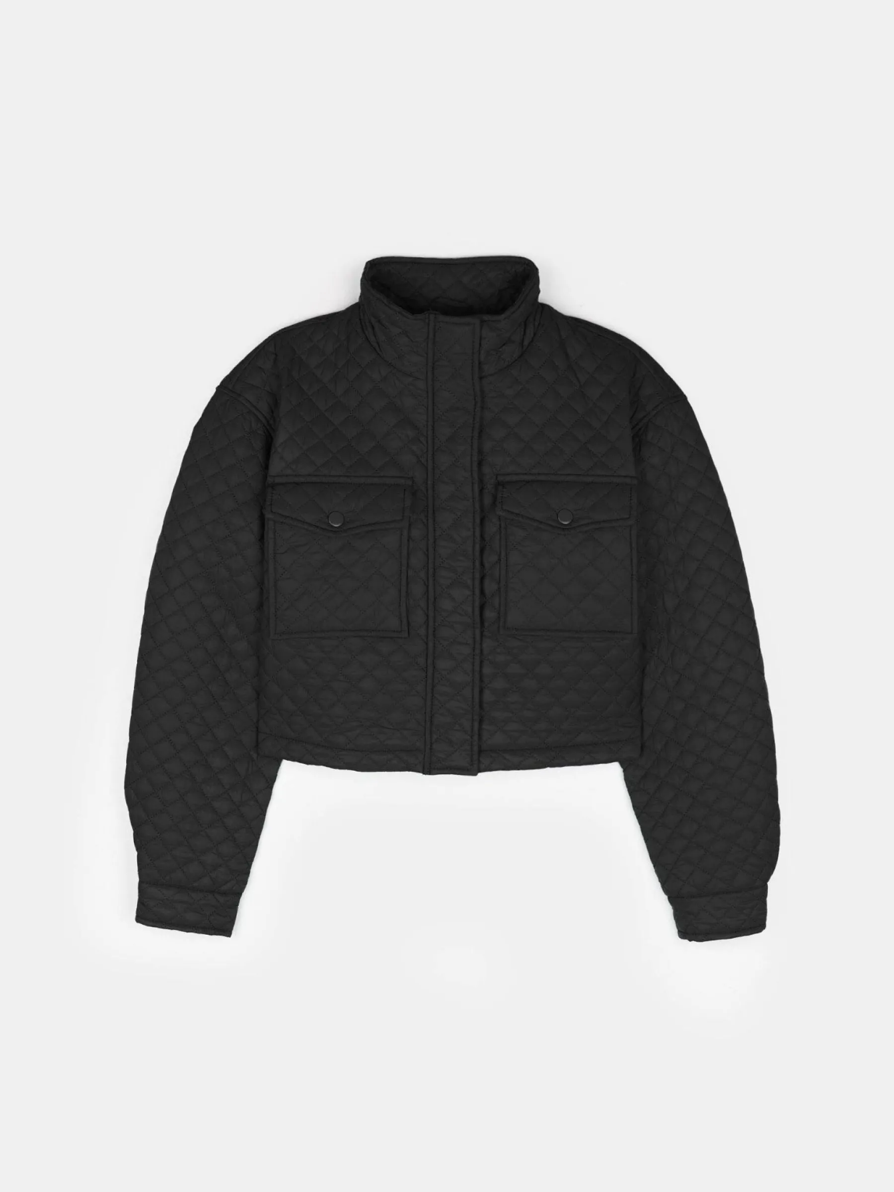 Kolor: czarnyKrój: regular, pikowaneTyp: kurtka przejściowaRekaw: długi rękawDługość: krótki topPattern style: p…