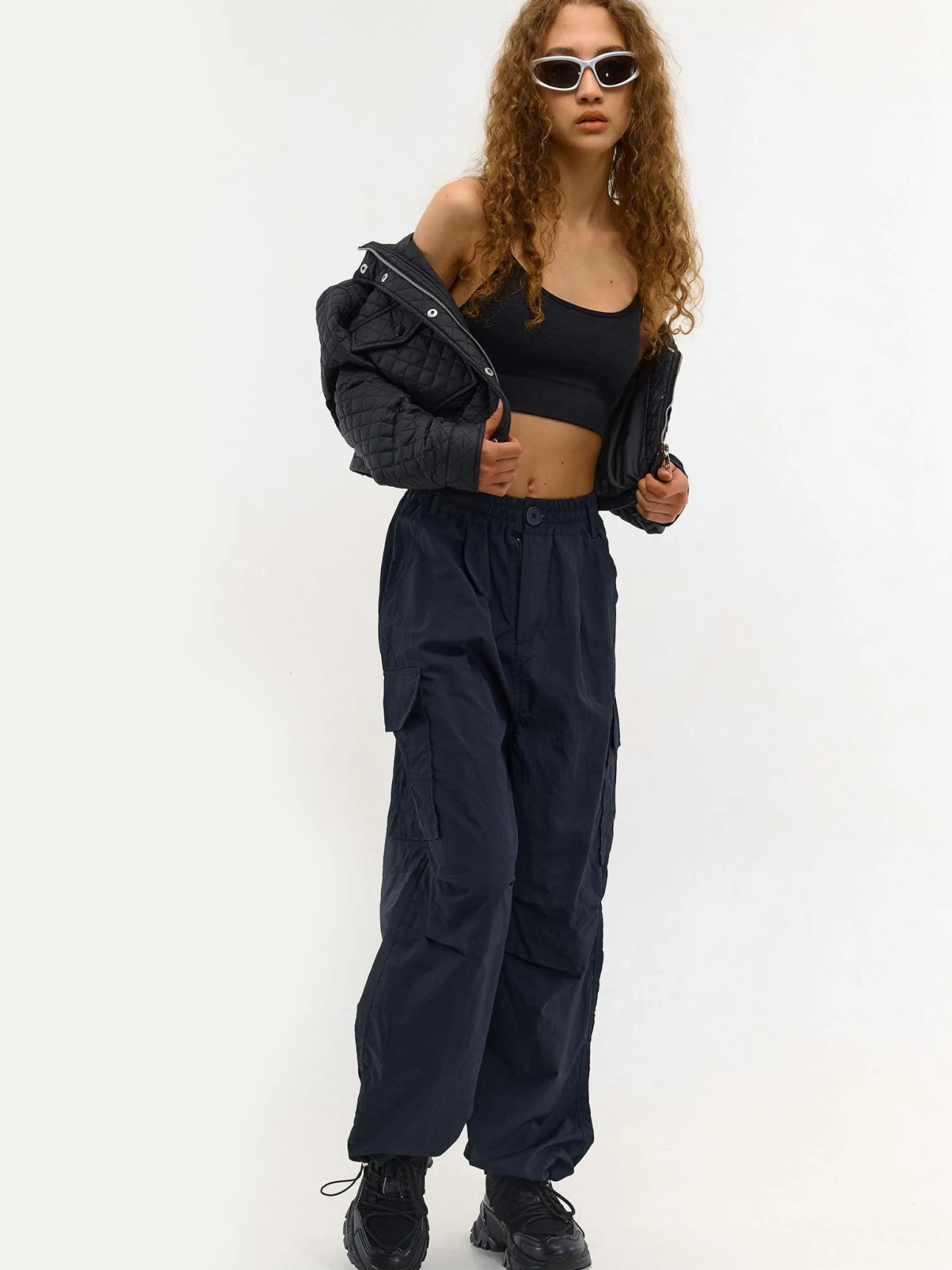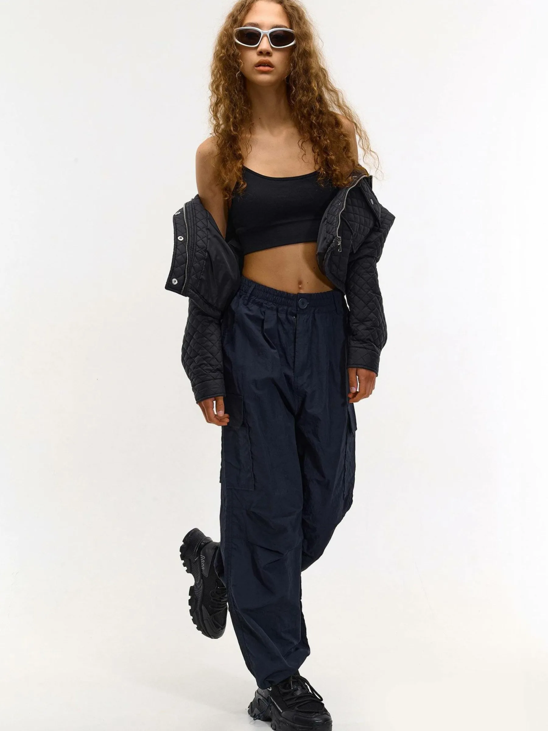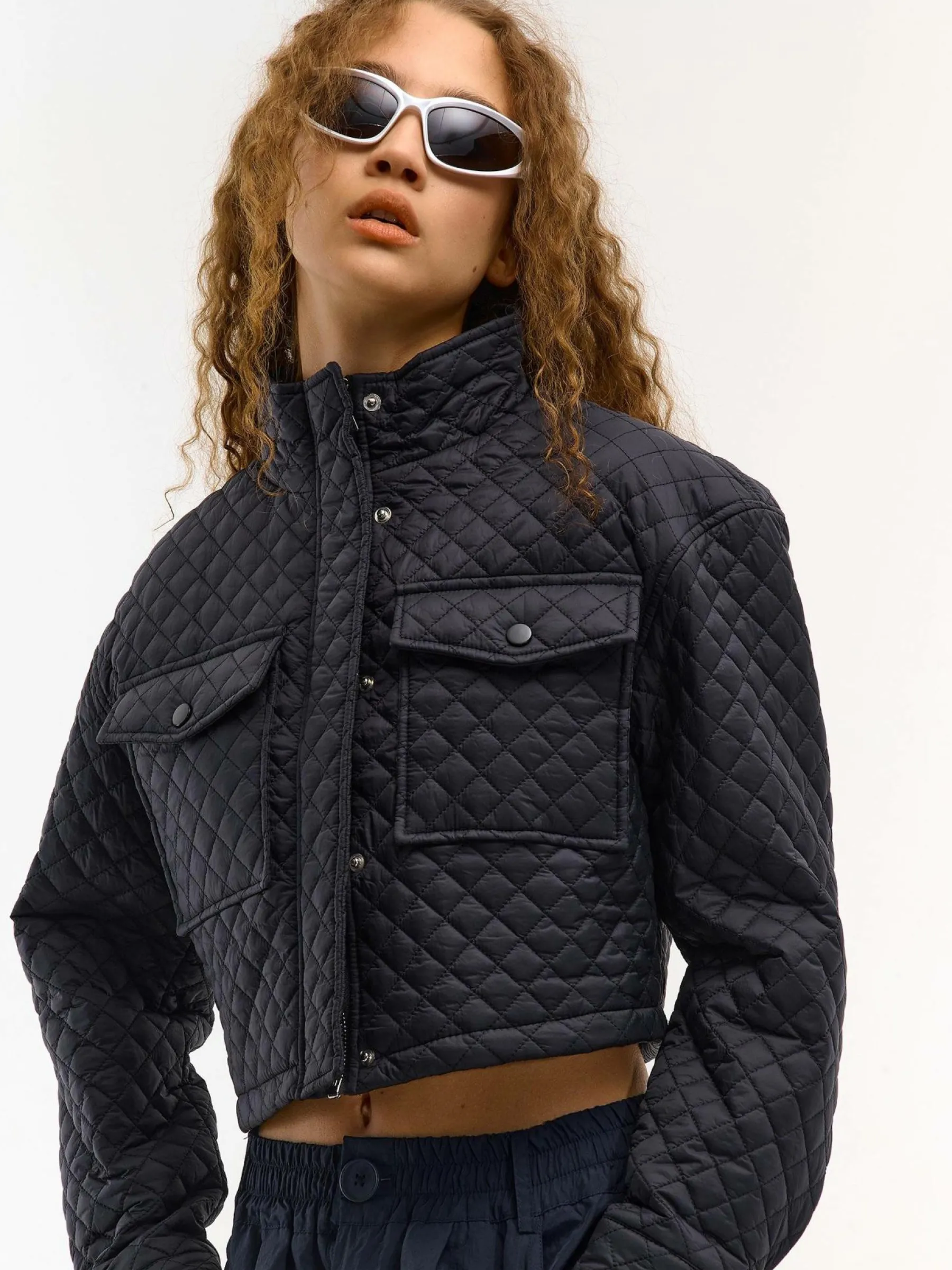 Kolor: czarnyKrój: regular, pikowaneTyp: kurtka przejściowaRekaw: długi rękawDługość: krótki topPattern style: p…