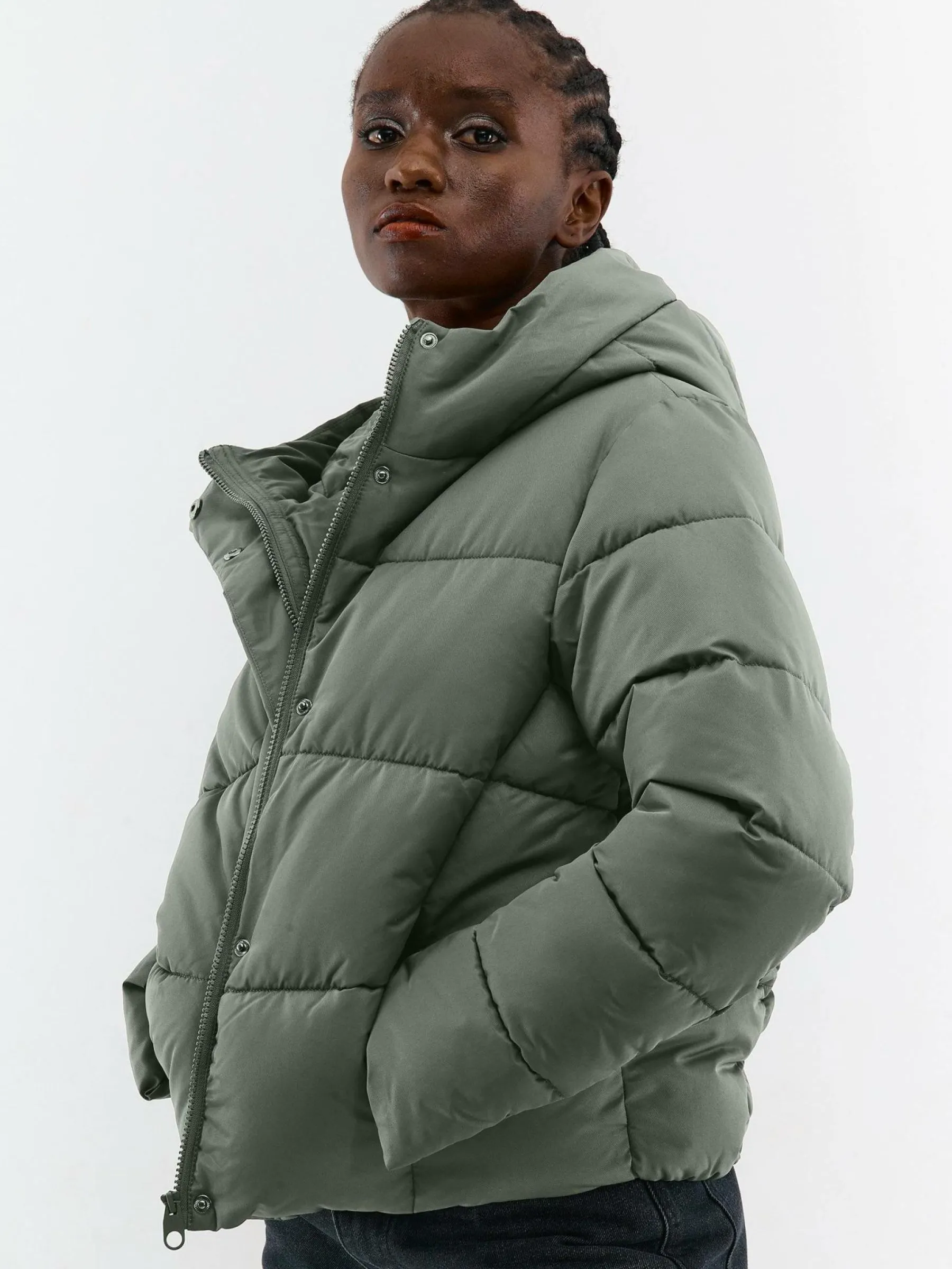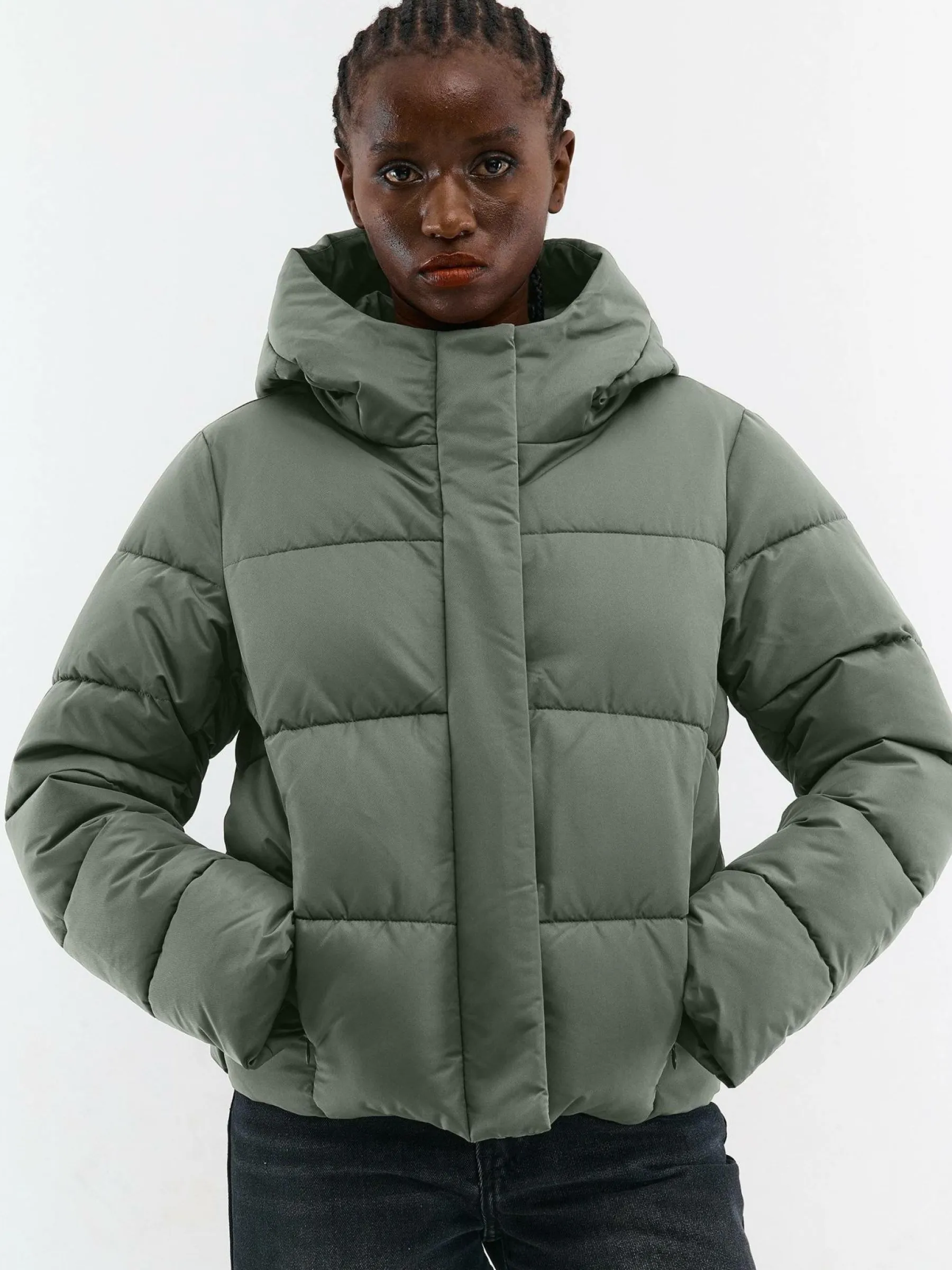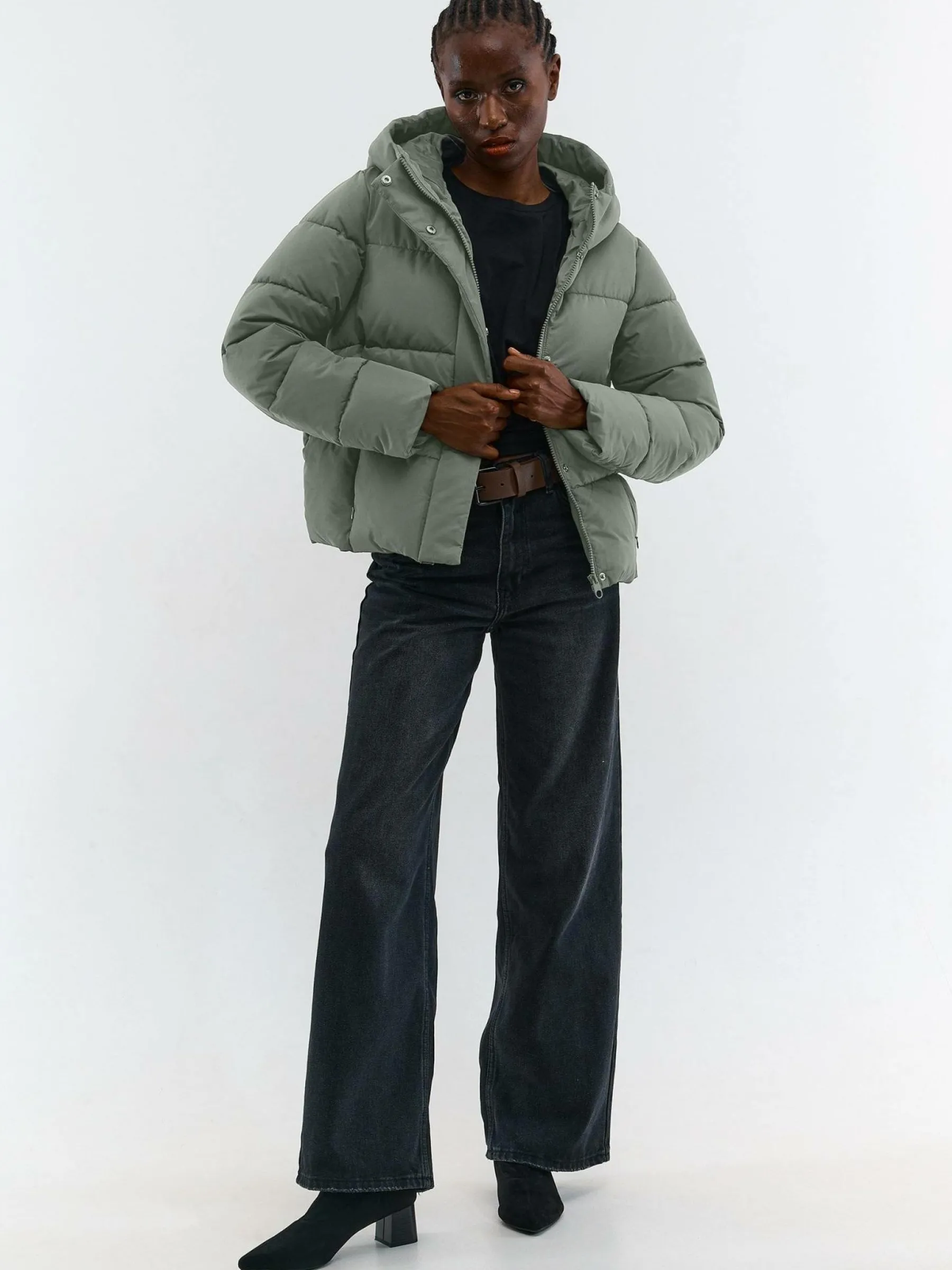 Kolor: khakiKrój: pikowane, bomberTyp: kurtka zimowaRekaw: długi rękawDługość: krótkiPattern style: pojedynczy ko…