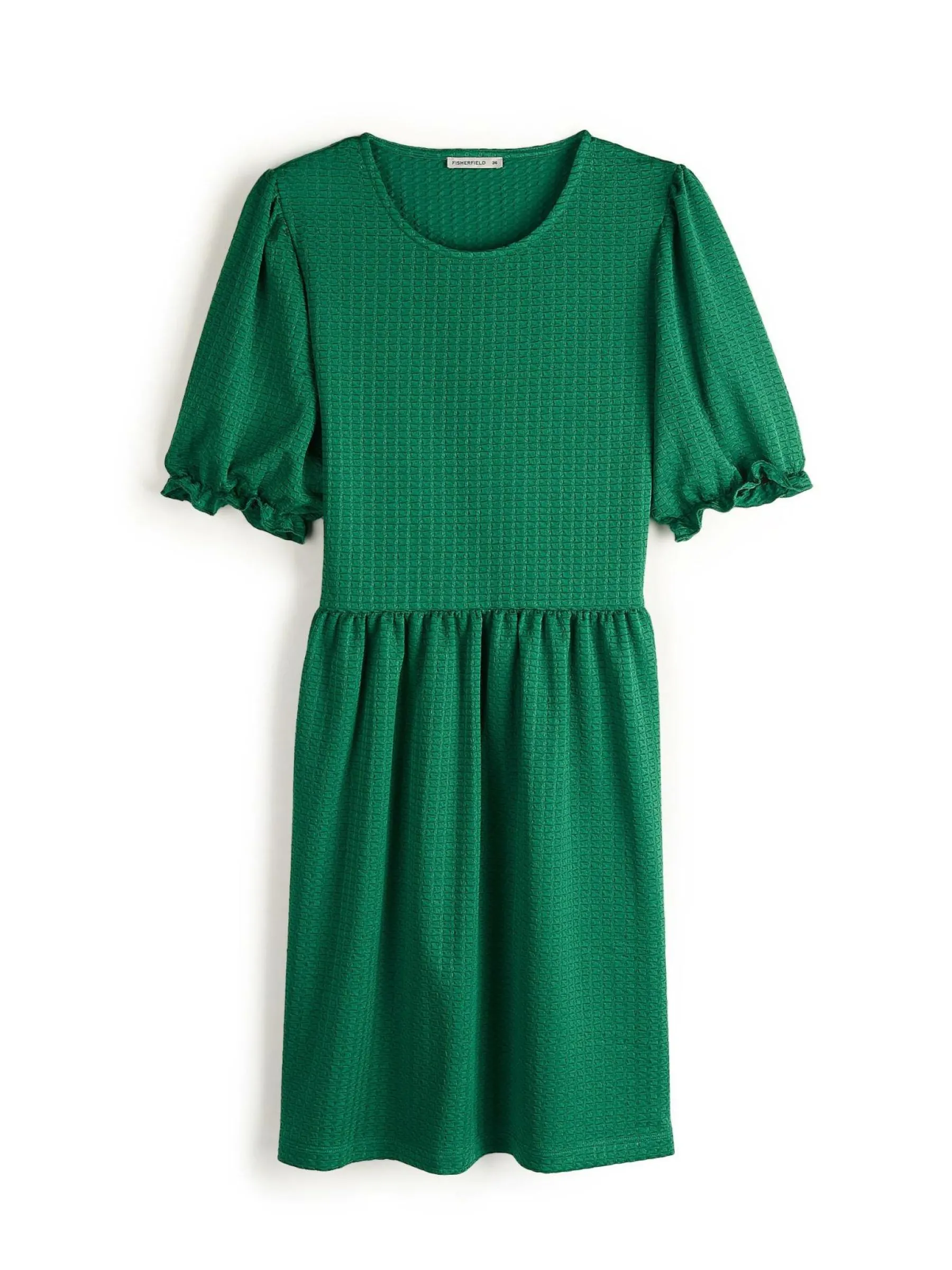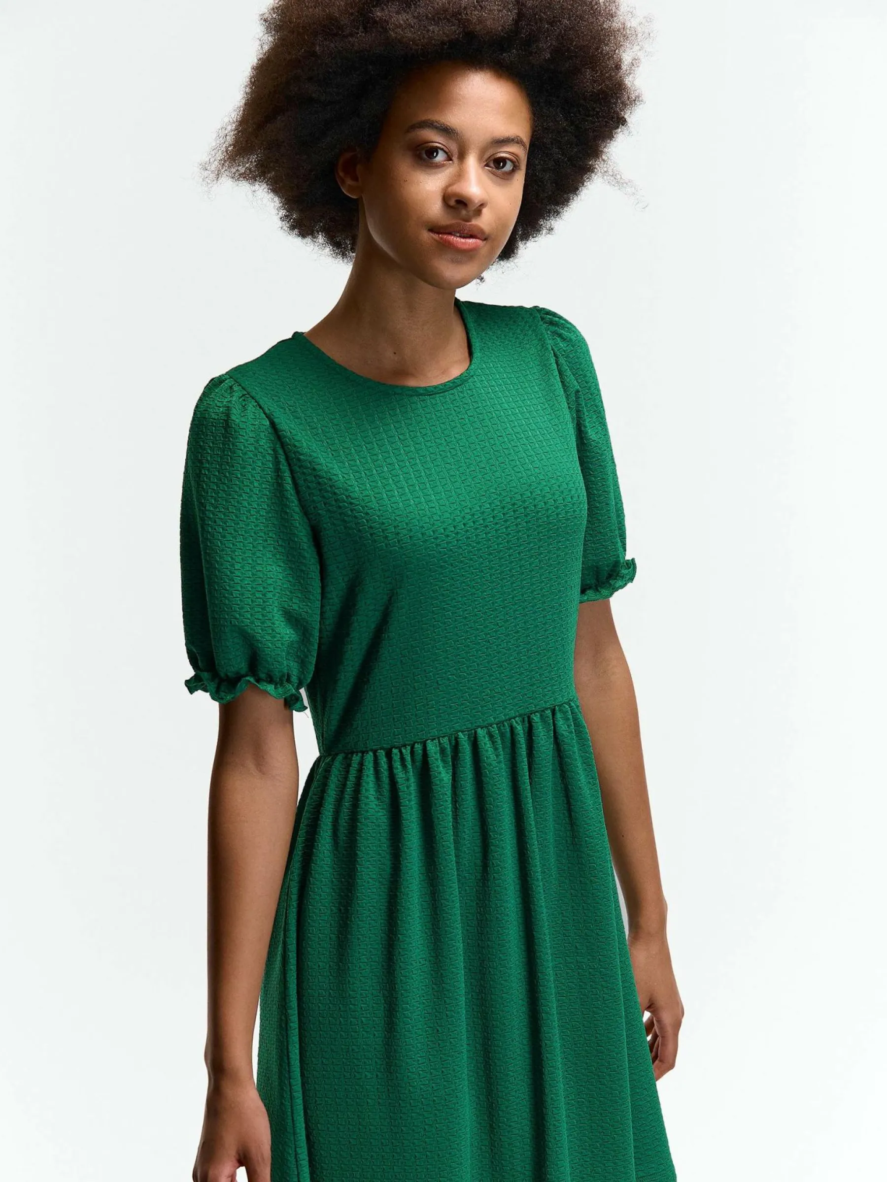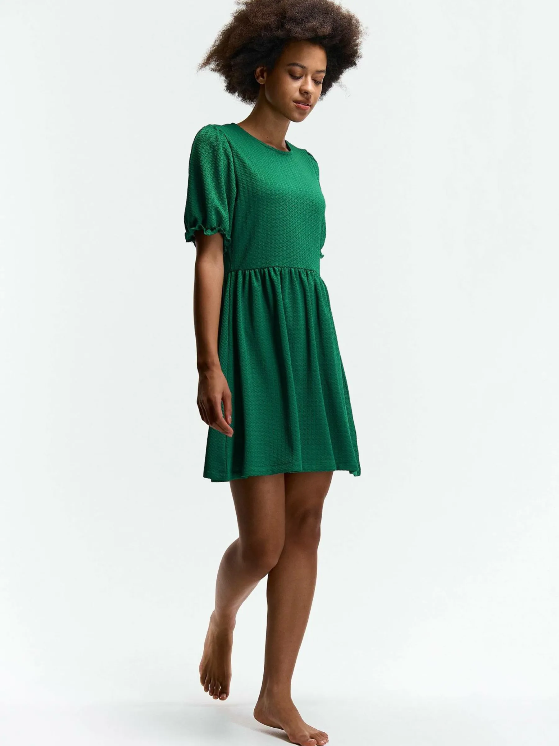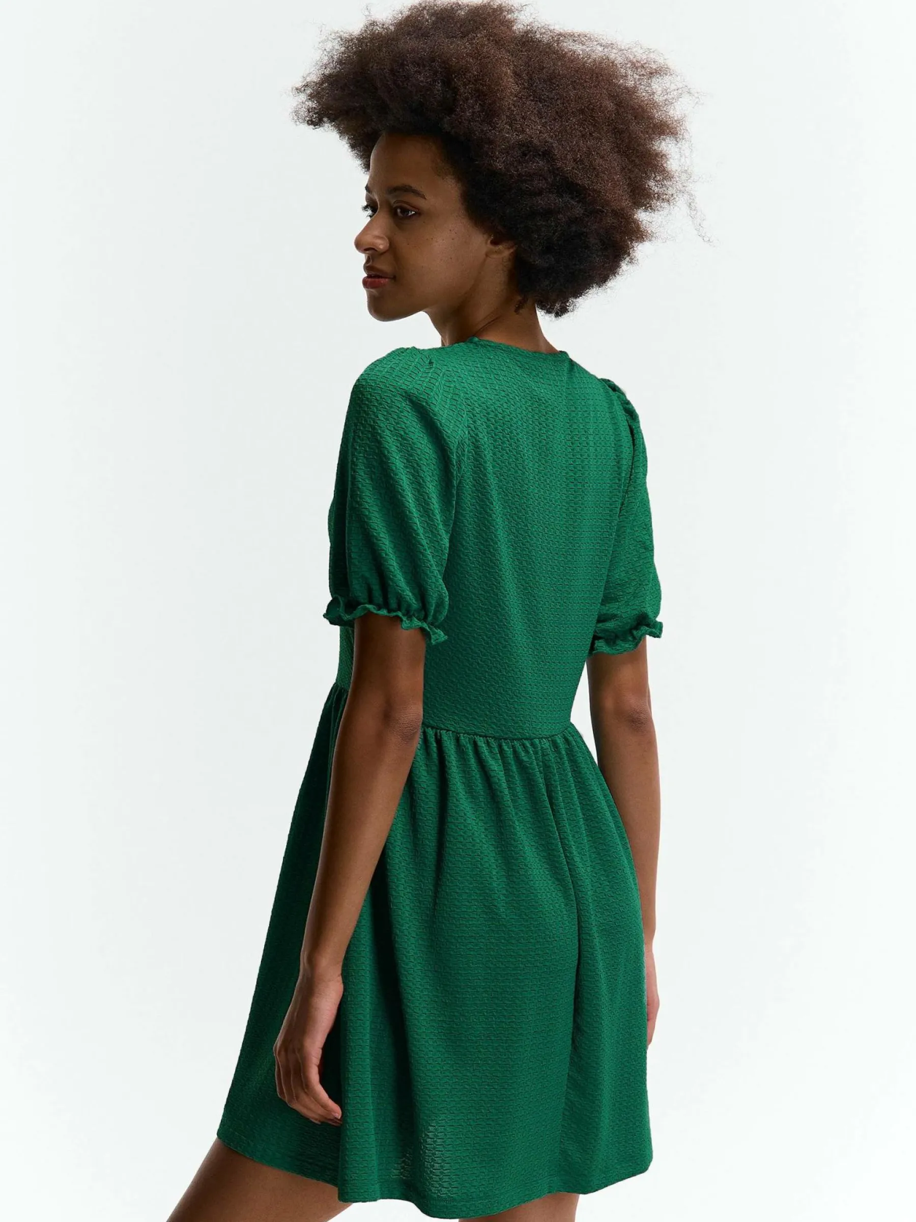 Kolor: zielonyKrój: asyTyp: sukienkaRekaw: krótki rękawDługość: miniPattern style: pojedynczy kolorDetal: nad gło…