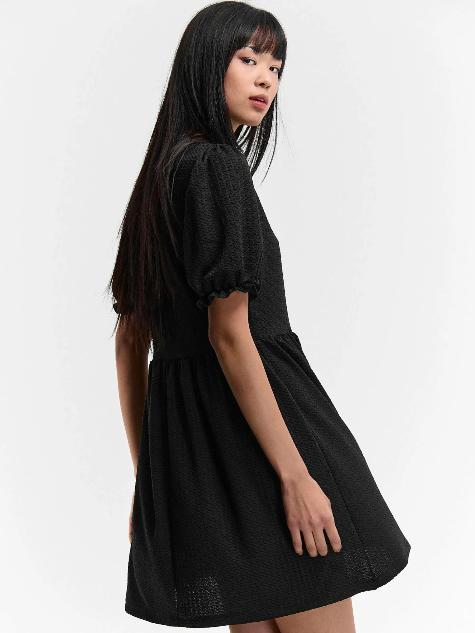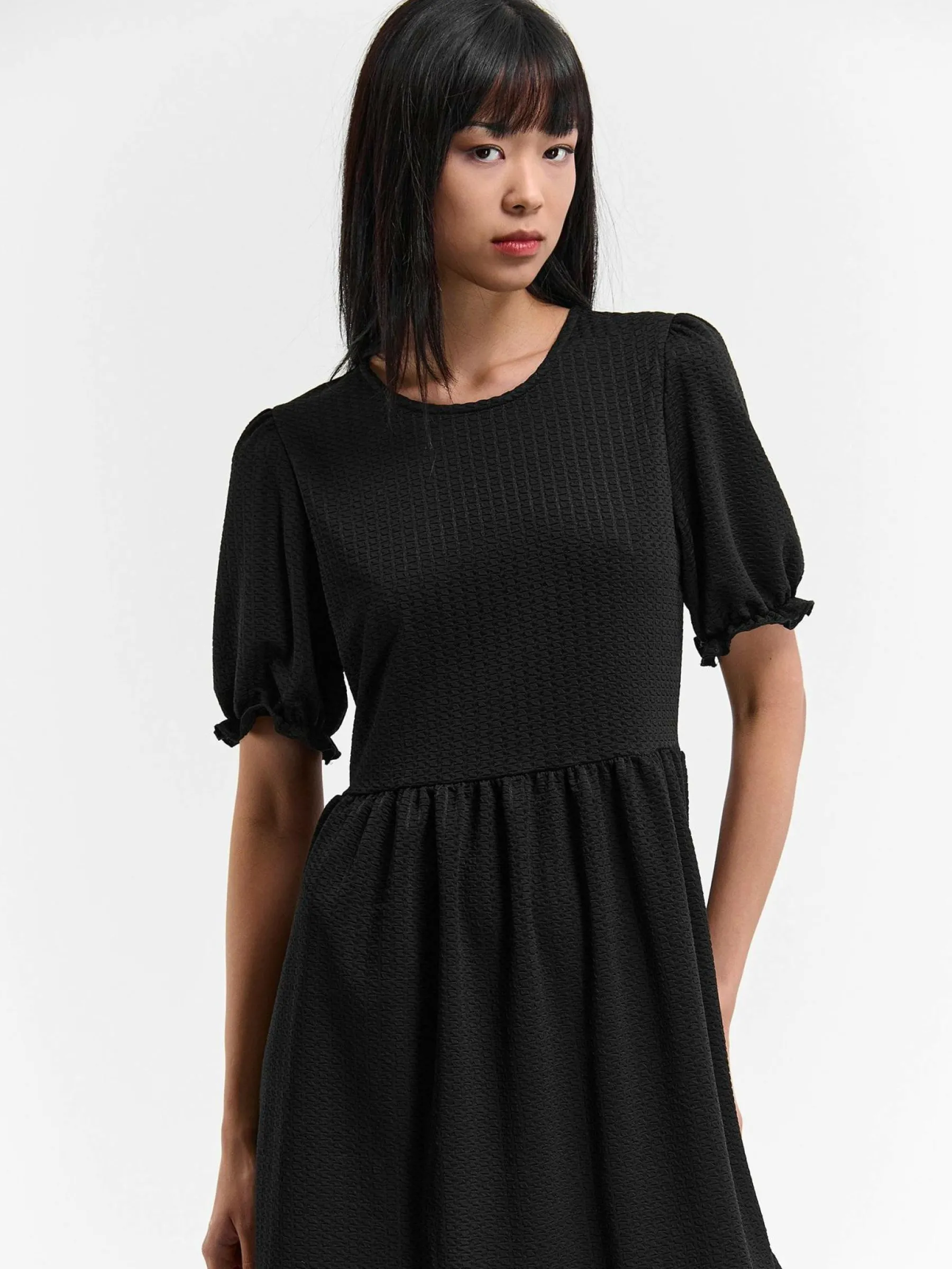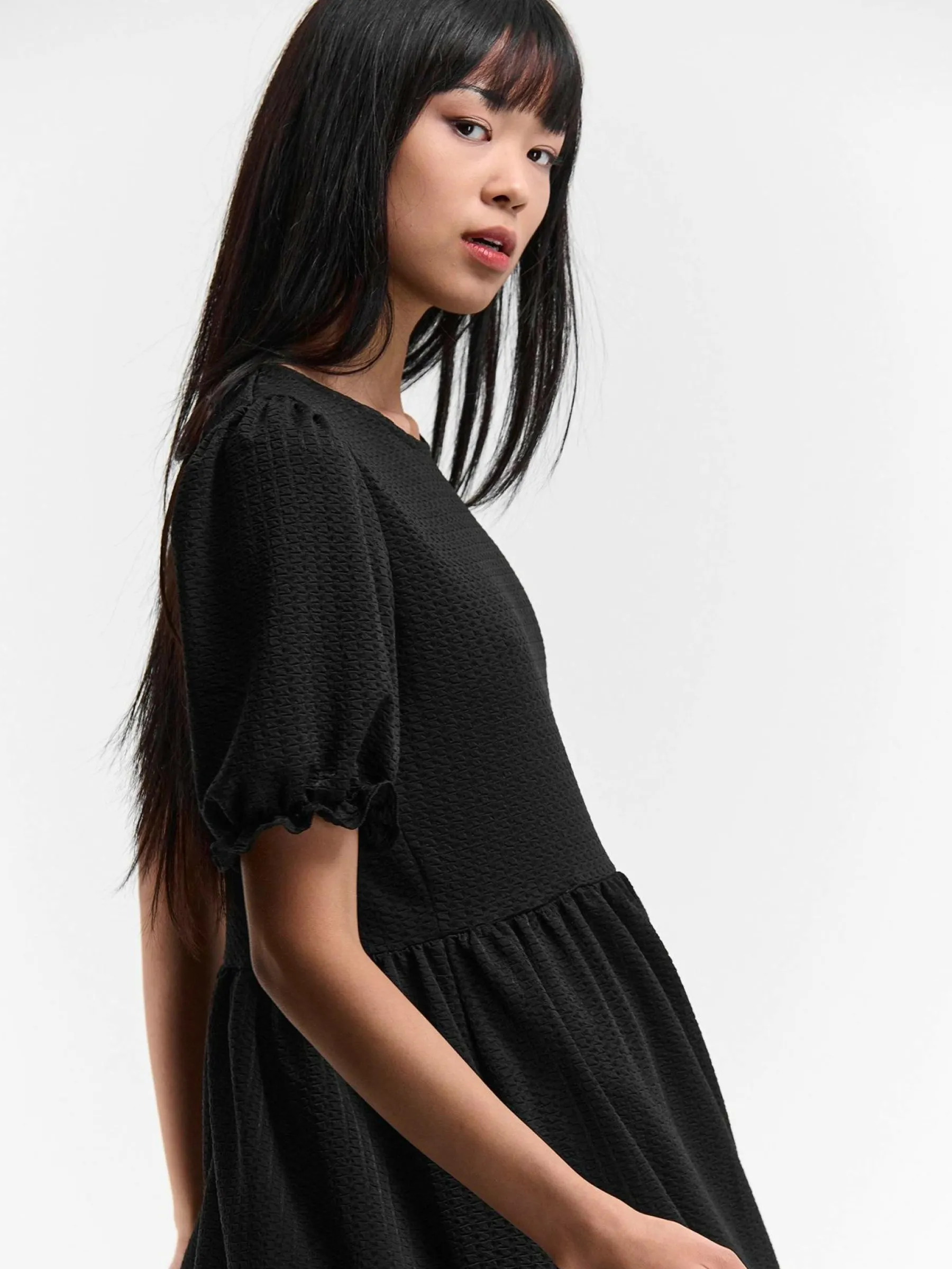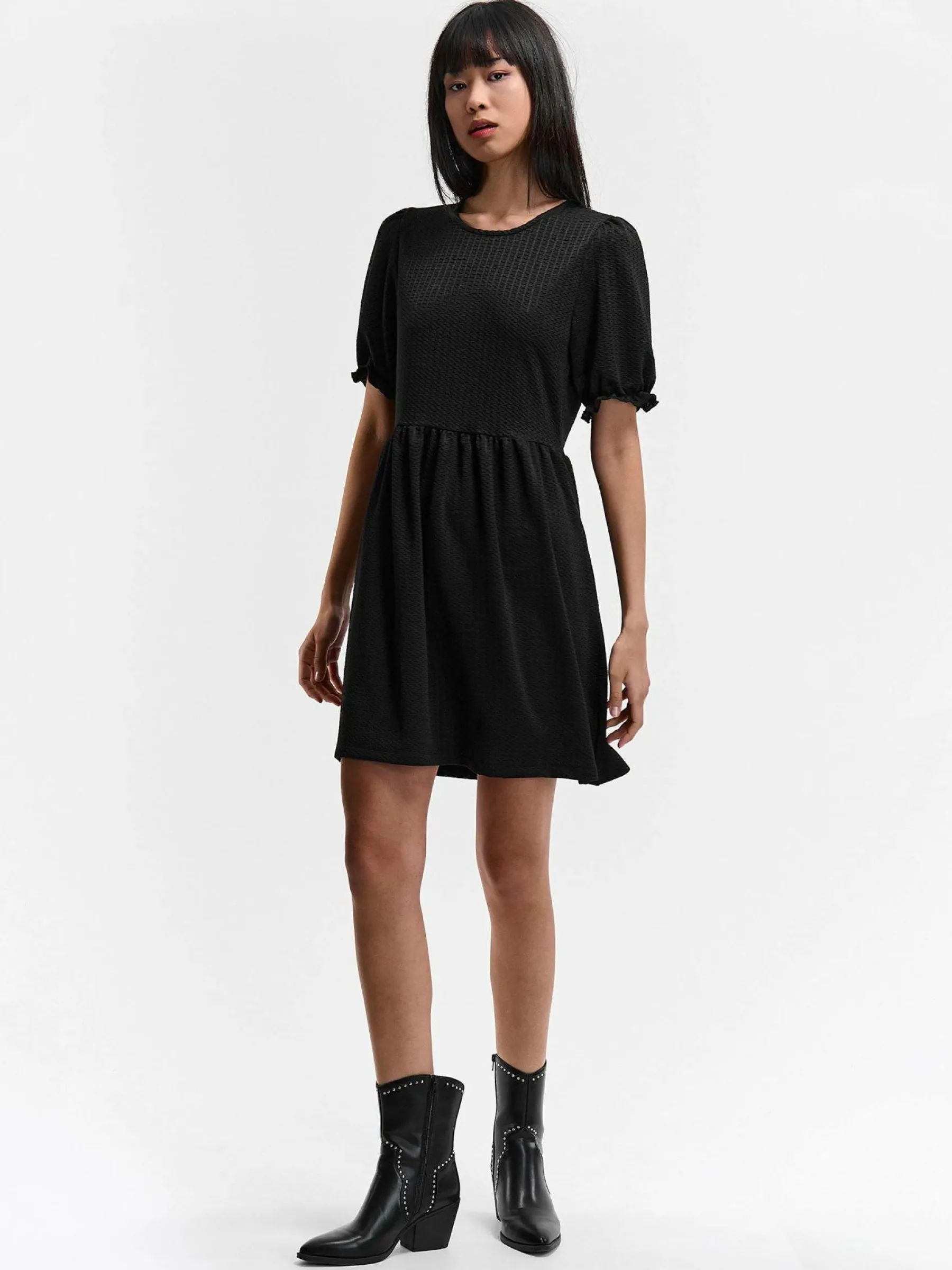 Kolor: czarnyKrój: asyTyp: sukienkaRekaw: krótki rękawDługość: miniPattern style: pojedynczy kolorDetal: nad głow…